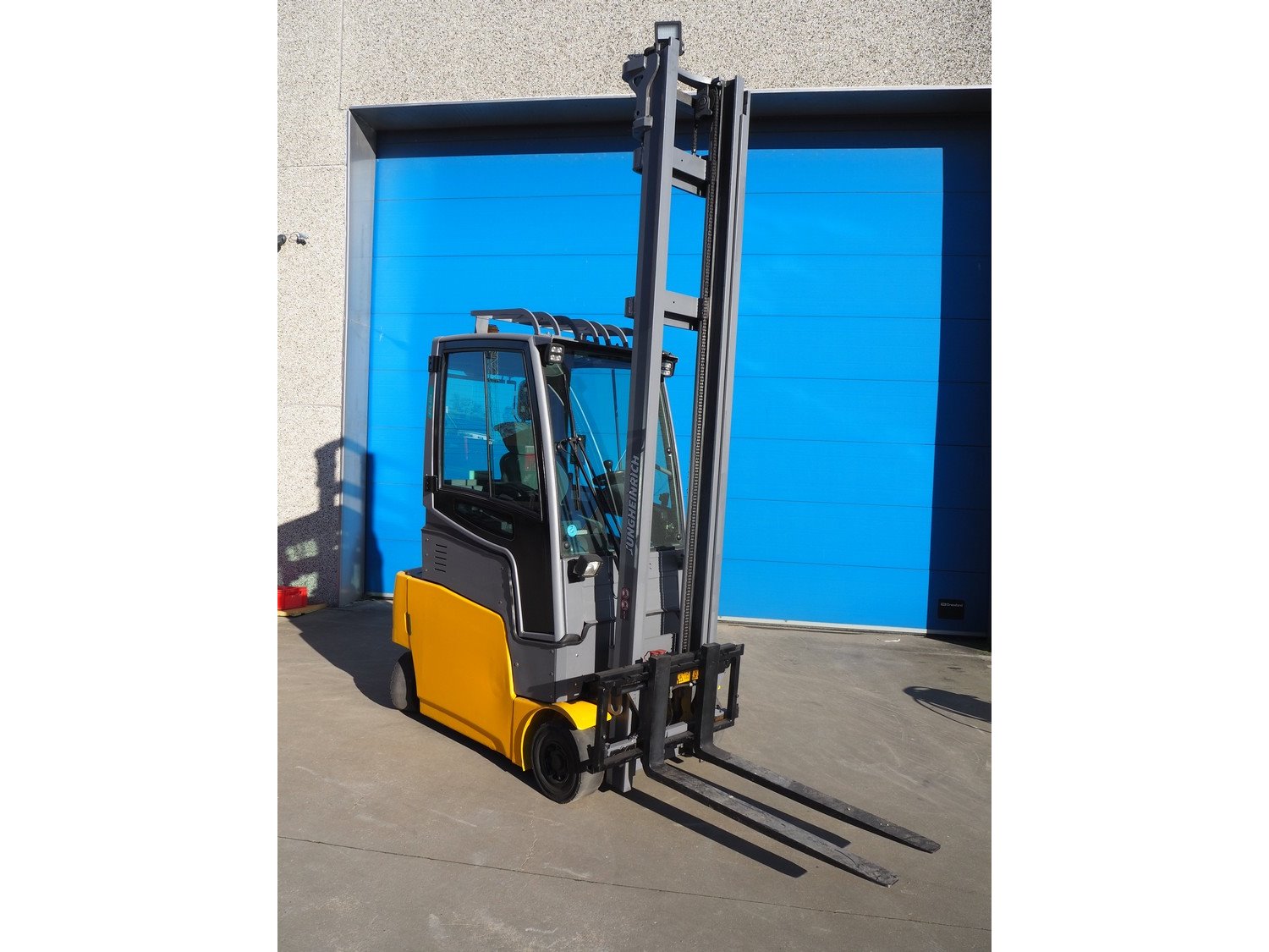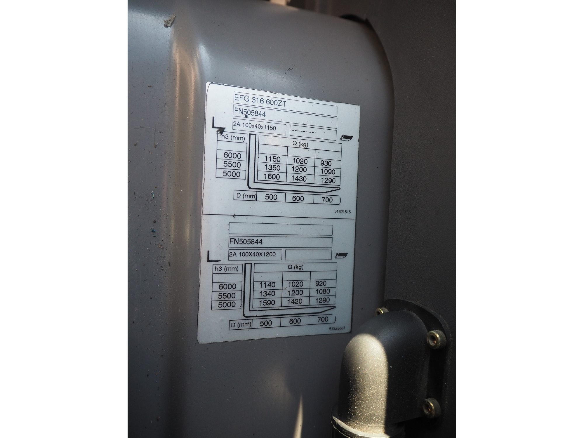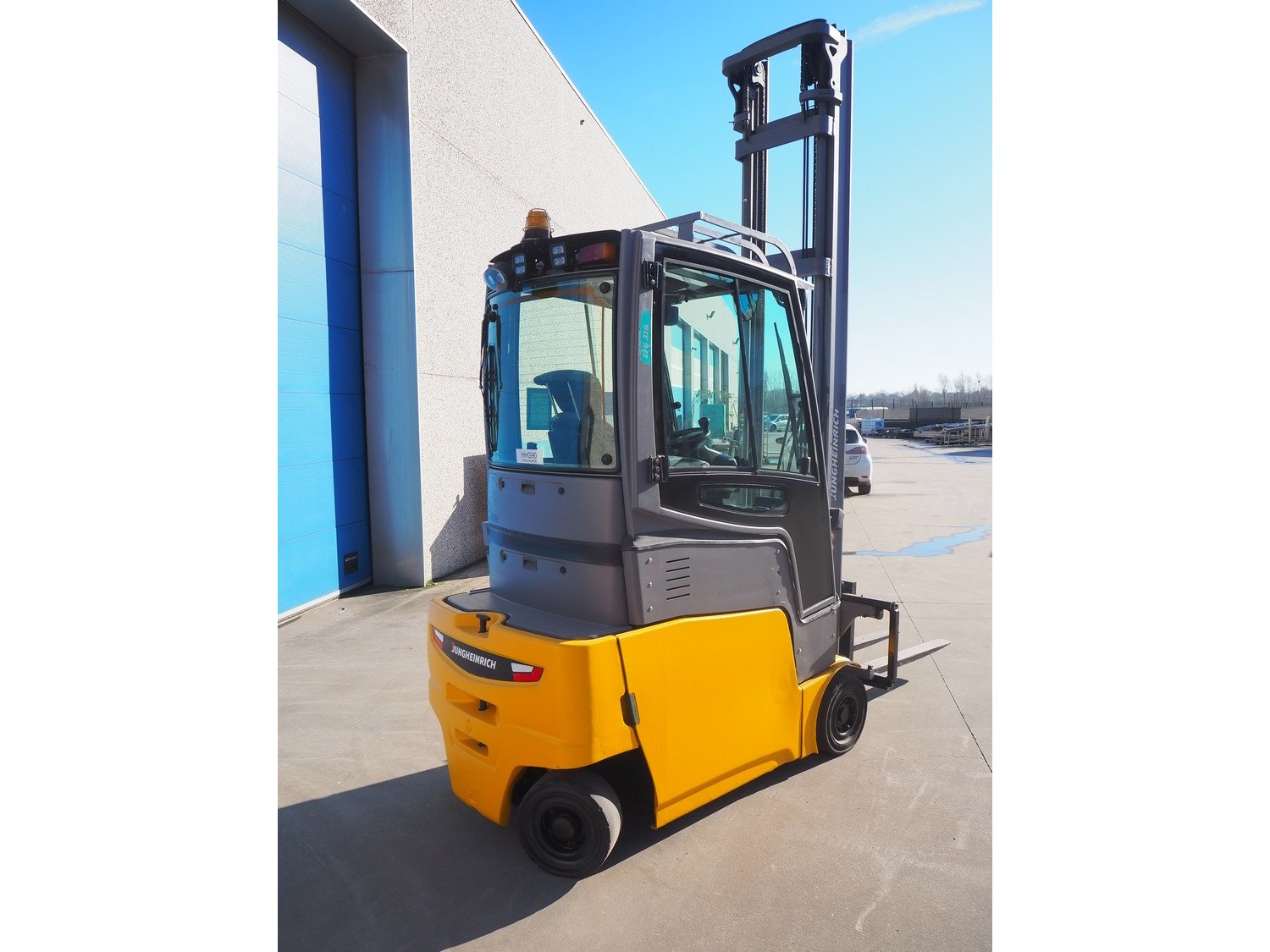 Jungheinrich electric forklift, model: EFG 316, serial number: FN505844, rated capacity: 1600 kg, fork length: 1200 mm, total dimensions: 3400 mm x 1100 mm x 3550 mm. Including battery charger. Battery renewed in 2024. Kavel locatie: Beukenhofstraat 77A, 8570 Anzegem, België