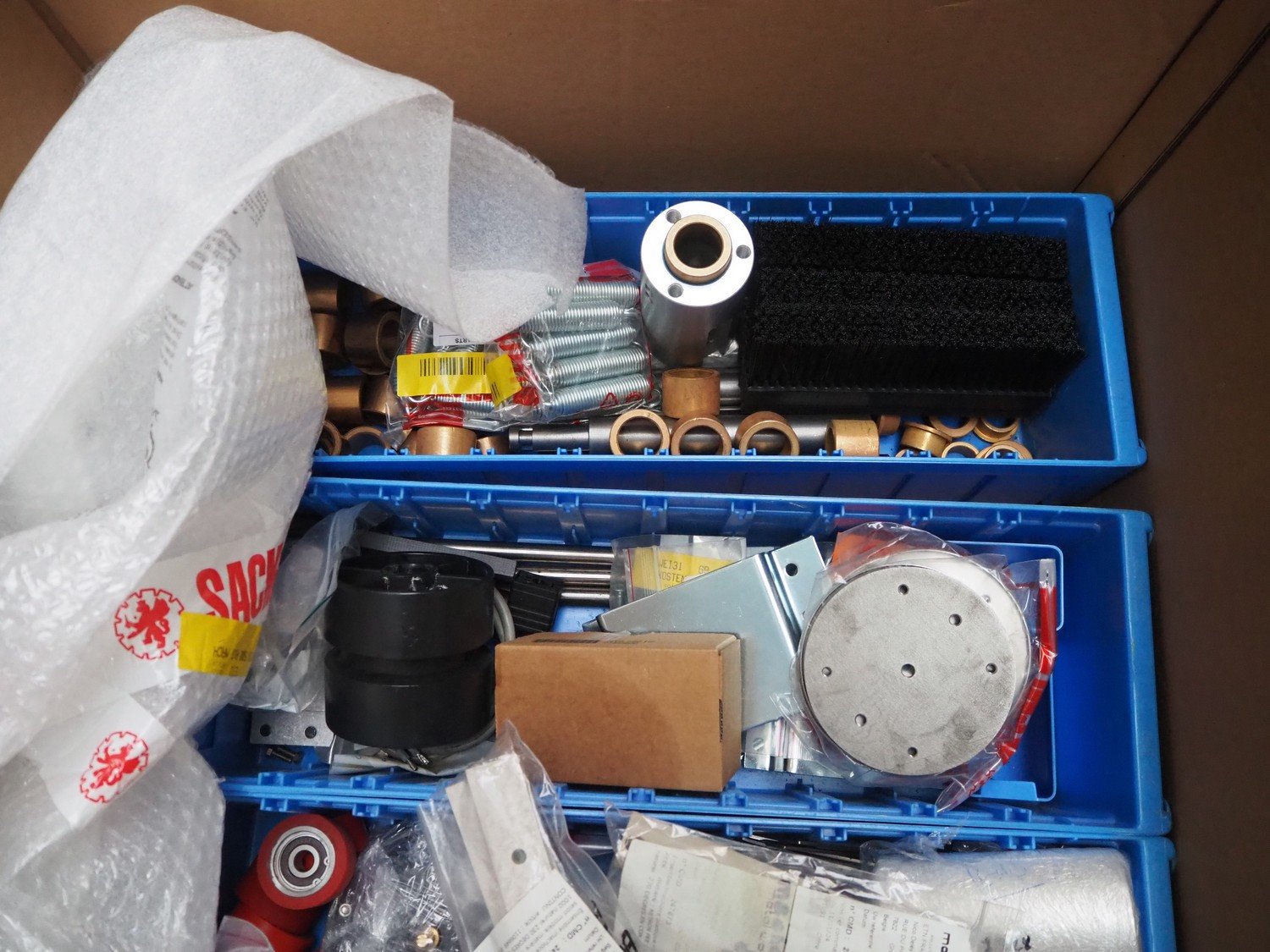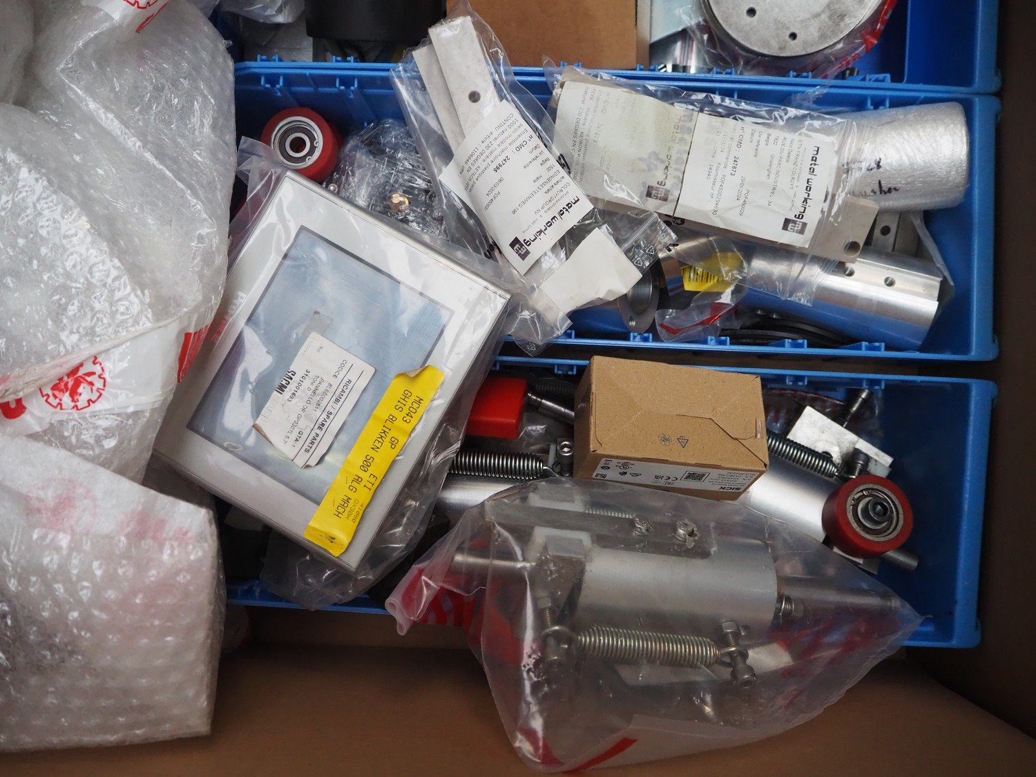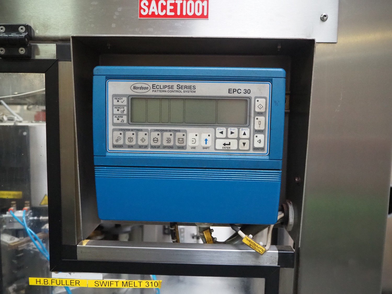 Sacmi Labelling labelling machine for cans, model: RHM5046T, type: SR S1F, serial number: 00421, year of construction: 2006, 380 V, 50 Hz, 16 A, 8 kW, weight: 2500 kg, cans: Ø 100 mm, total dimensions: 2450 mm x 2100 mm x 2180 mm. Including pallet with parts. Missing belt. Rollies not included. Kavel locatie: Beukenhofstraat 77A, 8570 Anzegem, België