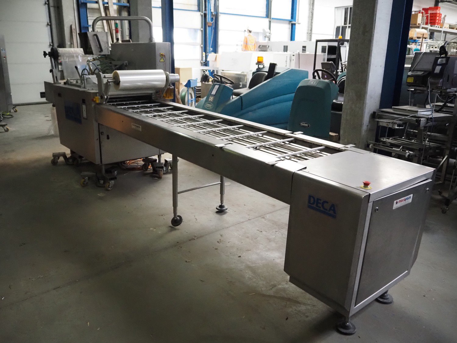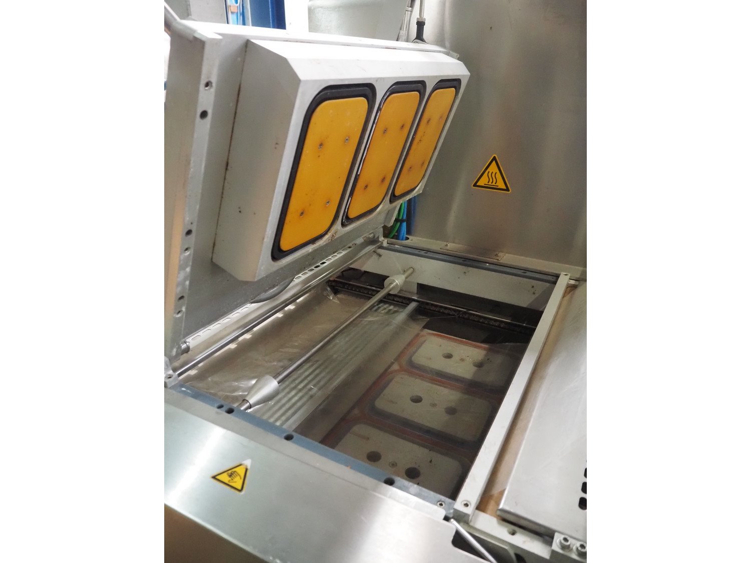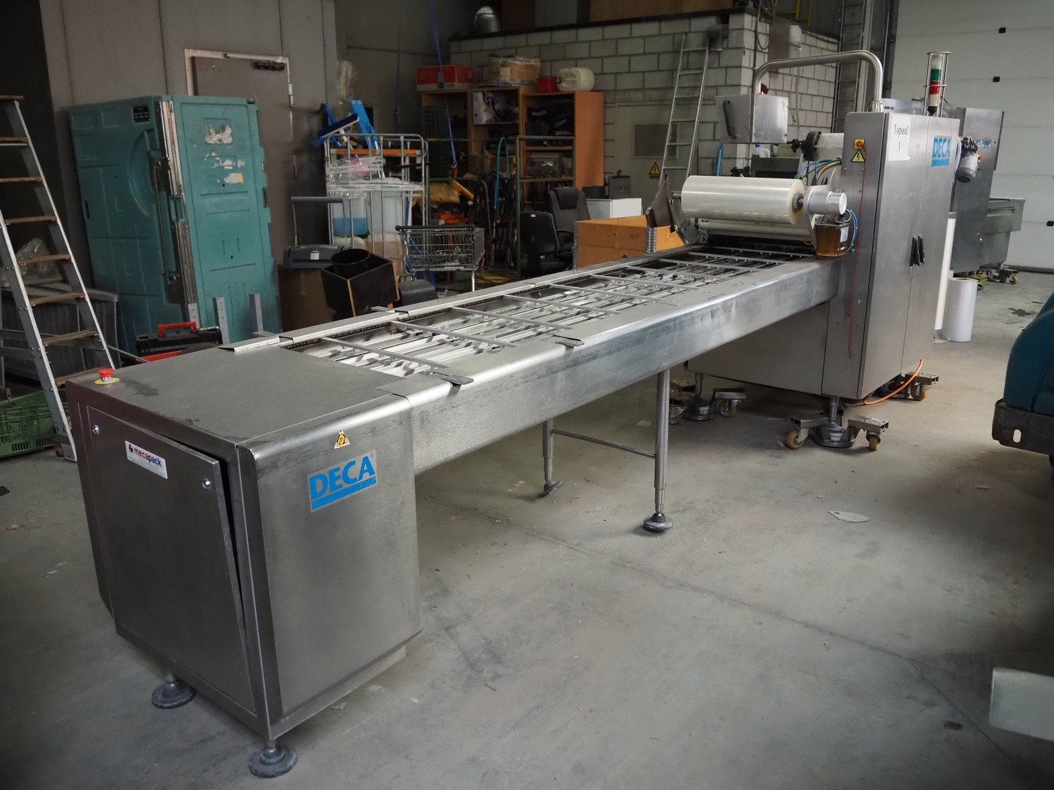 Meca Plastic traysealer, type: 2005, number: 5745, year of construction: 2004, film width: 560 mm, dimensions dye: (3x) 210 mm x 125 mm, total dimensions: 5700 mm x 1100 mm x 2100 mm. Rollies not included. Kavel locatie: Beukenhofstraat 77A, 8570 Anzegem, België