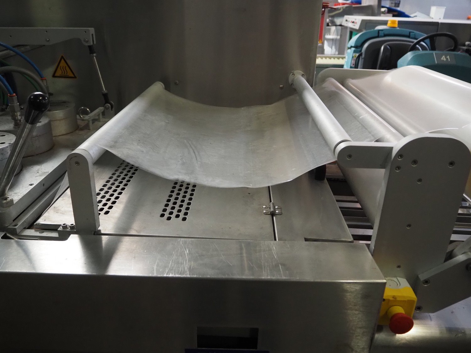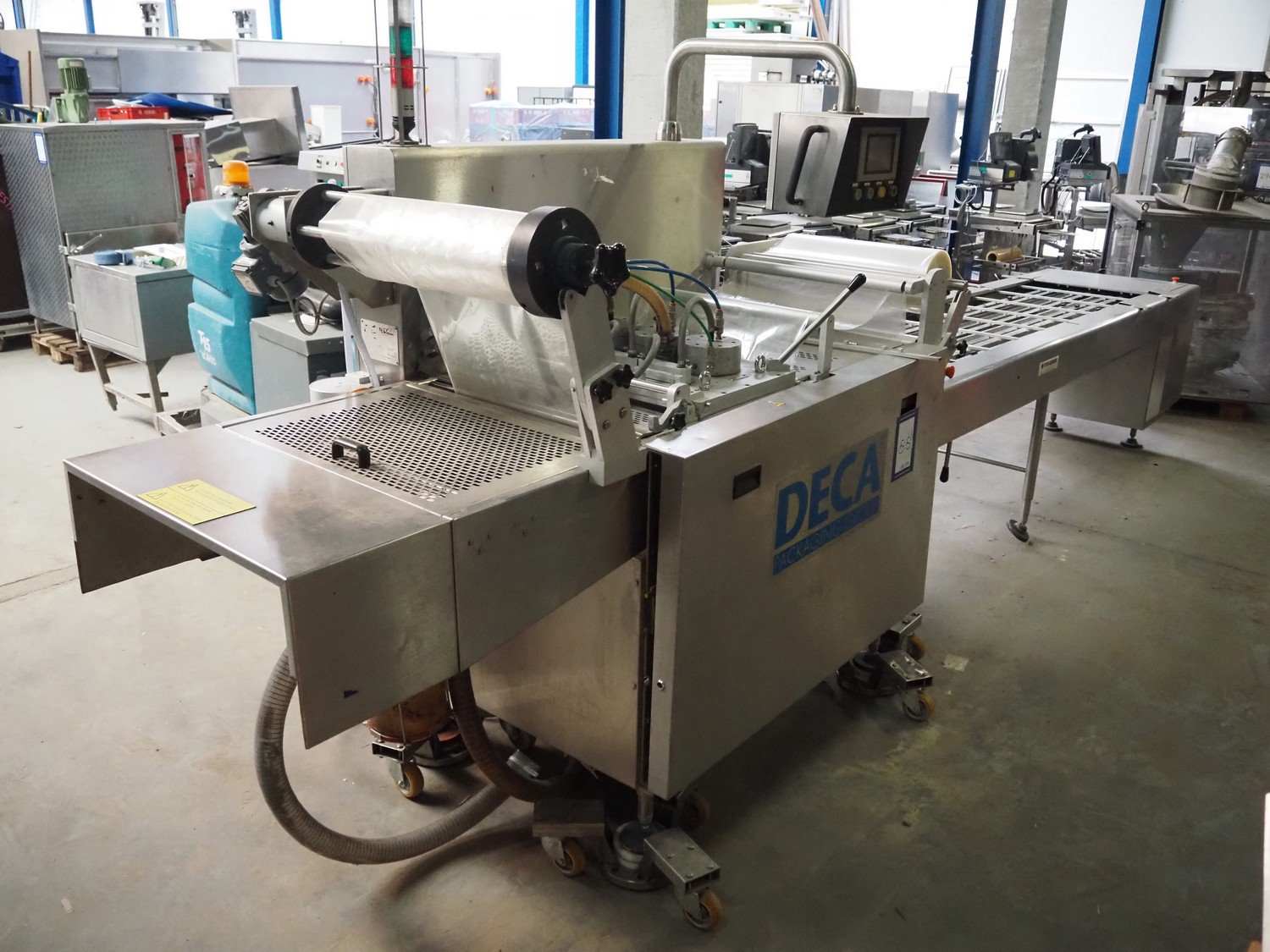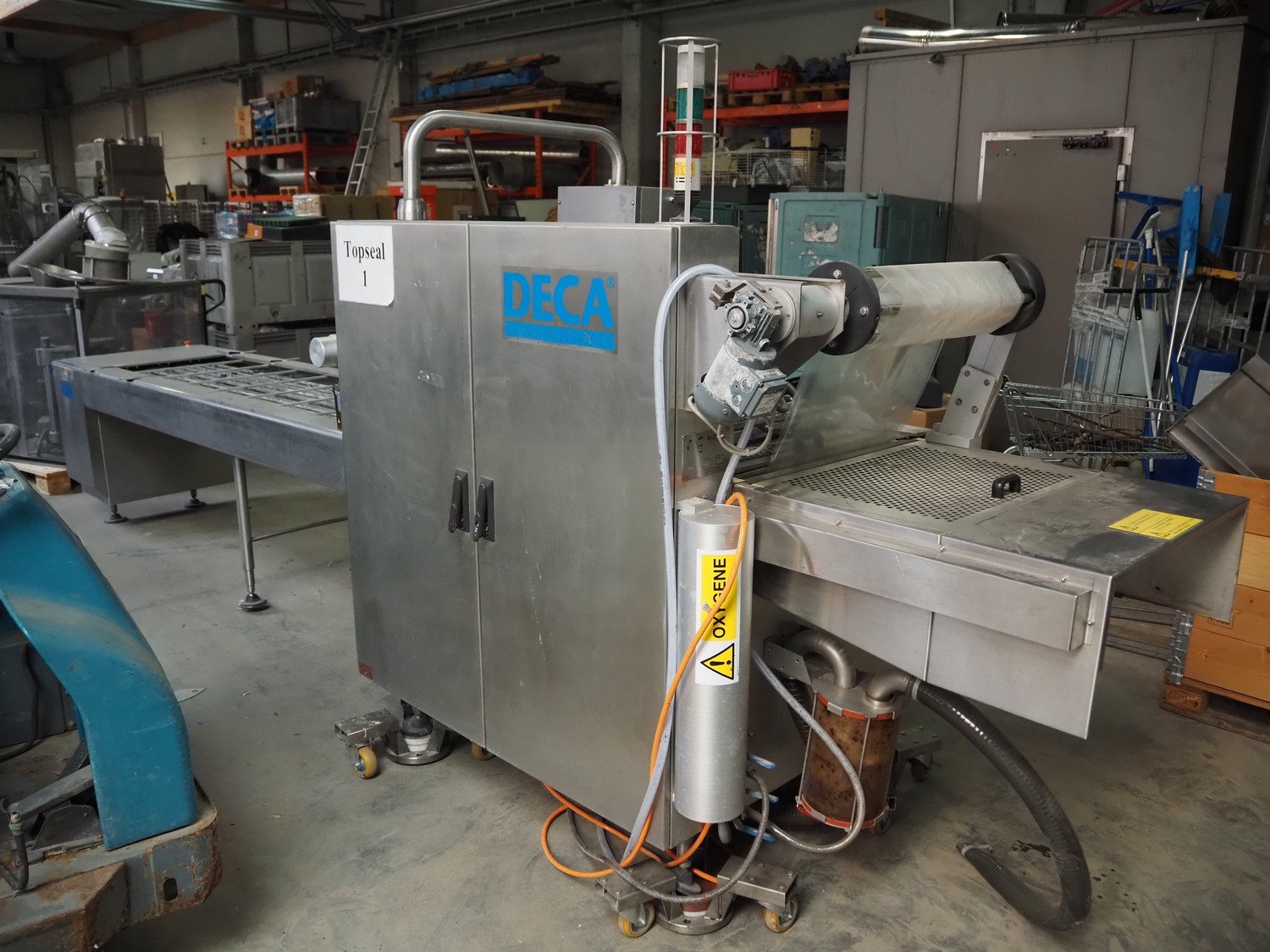 Meca Plastic traysealer, type: 2005, number: 5745, year of construction: 2004, film width: 560 mm, dimensions dye: (3x) 210 mm x 125 mm, total dimensions: 5700 mm x 1100 mm x 2100 mm. Rollies not included. Kavel locatie: Beukenhofstraat 77A, 8570 Anzegem, België
