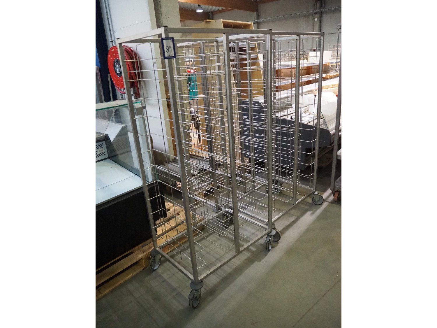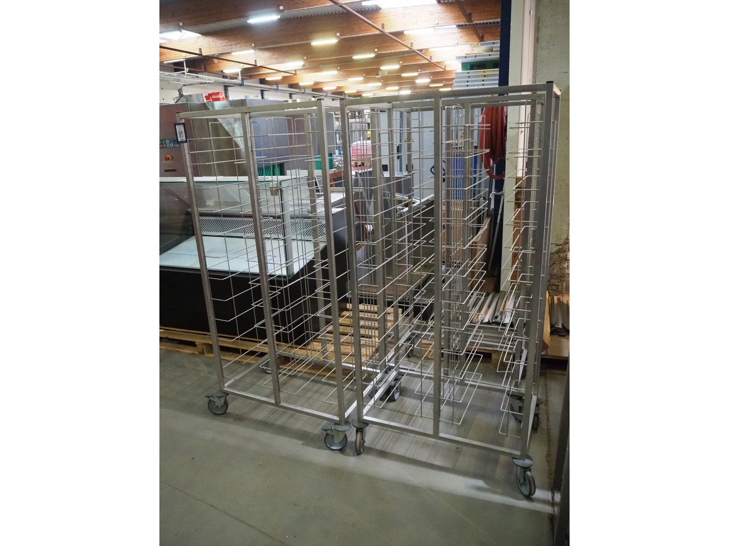 3x s/s trolleys, 24 floors each, floor dimensions: (24x) 520 mm x 370 mm, total dimensions: 920 mm x 630 mm x 1770 mm. Kavel locatie: Beukenhofstraat 77A, 8570 Anzegem, België