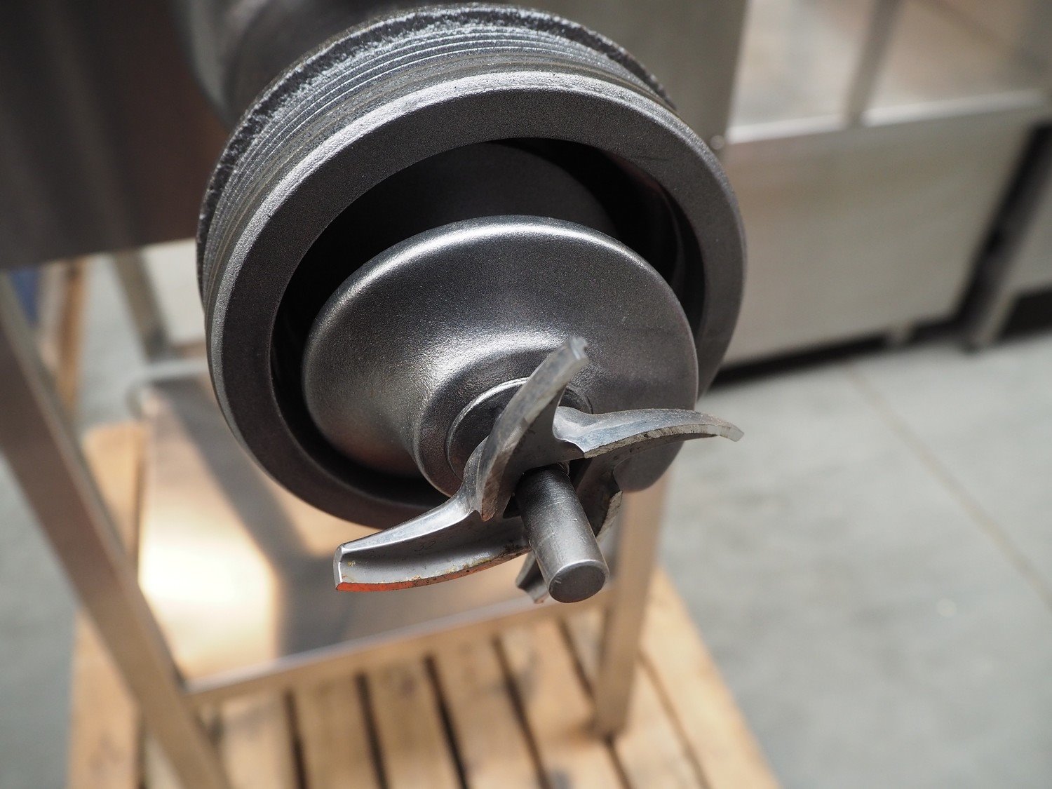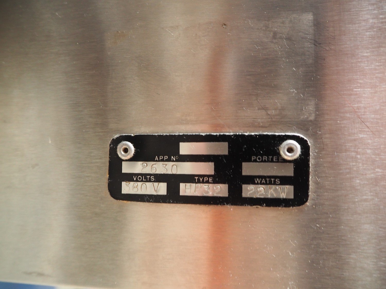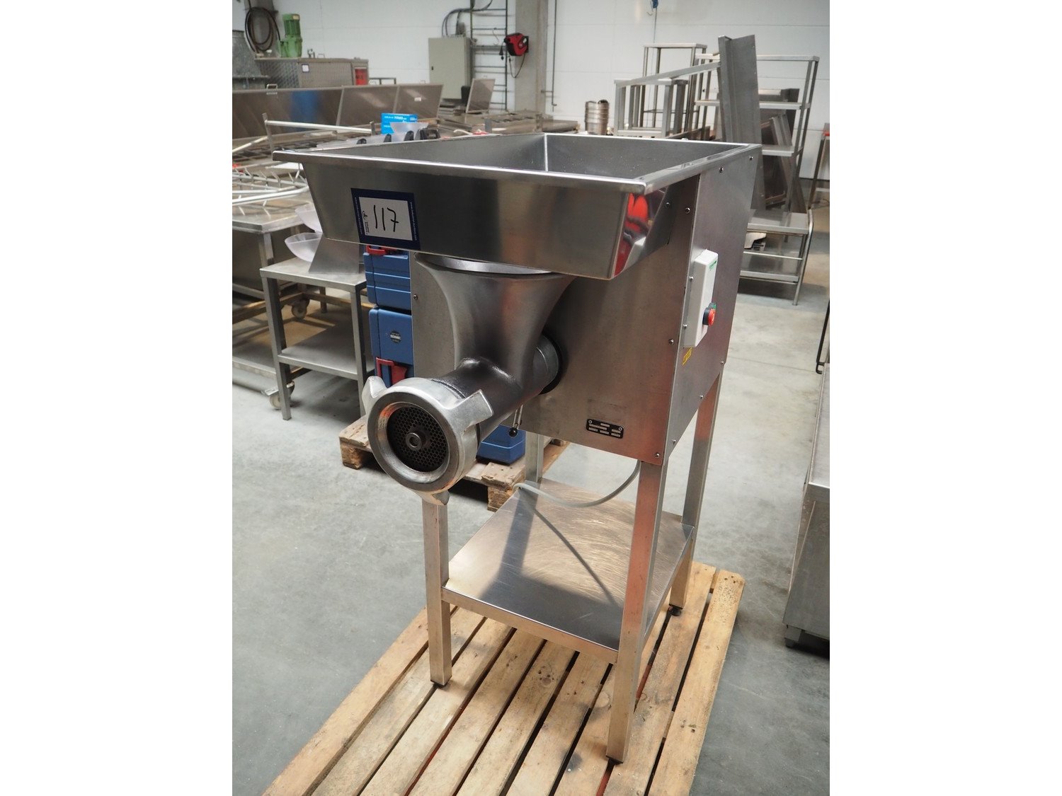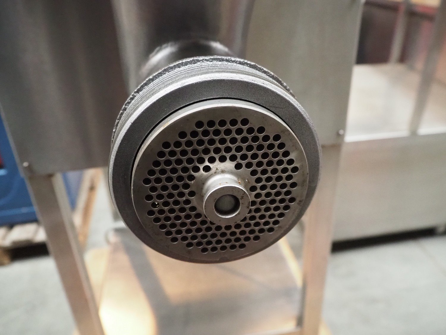 Grinder, type: HP32, number: 2630, 380 V, 2.2 kW, Ø plate: 100 mm, Ø perforations: 4 mm, total dimensions: 900 mm x 550 mm x 1250 mm. Kavel locatie: Beukenhofstraat 77A, 8570 Anzegem, België