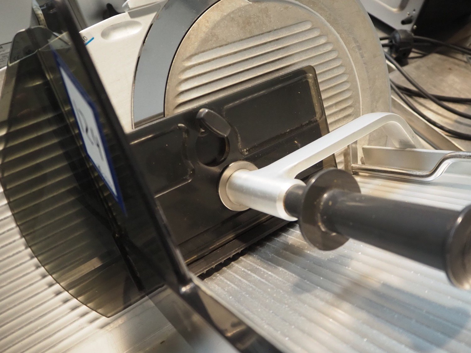 Bizerba slicer, model: SE 12, 230 V, 1 Ph, 50 Hz, 1.79 A, dimensions: 700 mm x 600 mm x 500 mm. Kavel locatie: Beukenhofstraat 77A, 8570 Anzegem, België