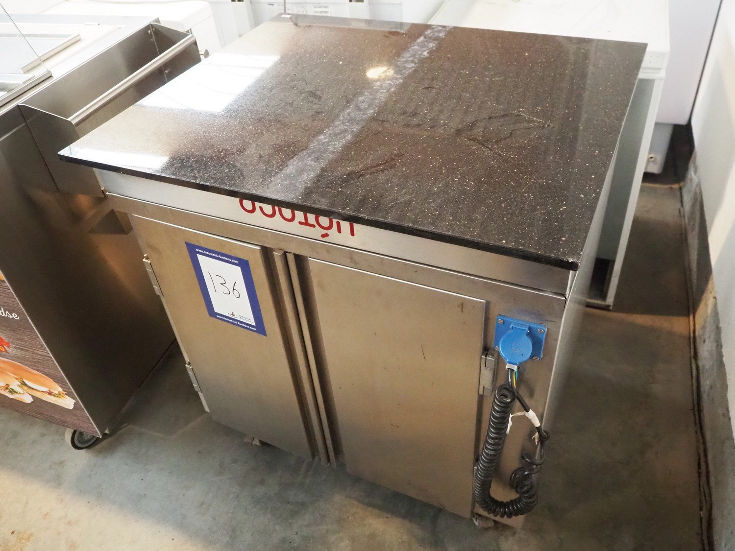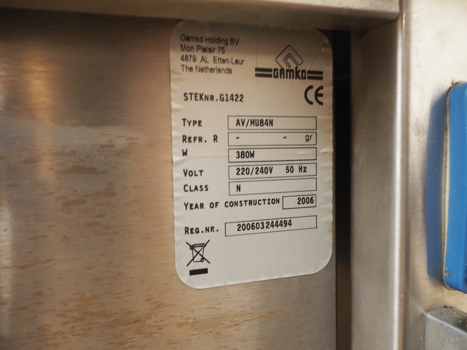 Gamko mobile refrigerated counter, type: AV/MU84N, year of construction: 2006, 220/240 V, 50 Hz, 380 W, top dimensions: 870 mm x 750 mm, total dimensions: 870 mm x 750 mm x 920 mm. Kavel locatie: Beukenhofstraat 77A, 8570 Anzegem, België