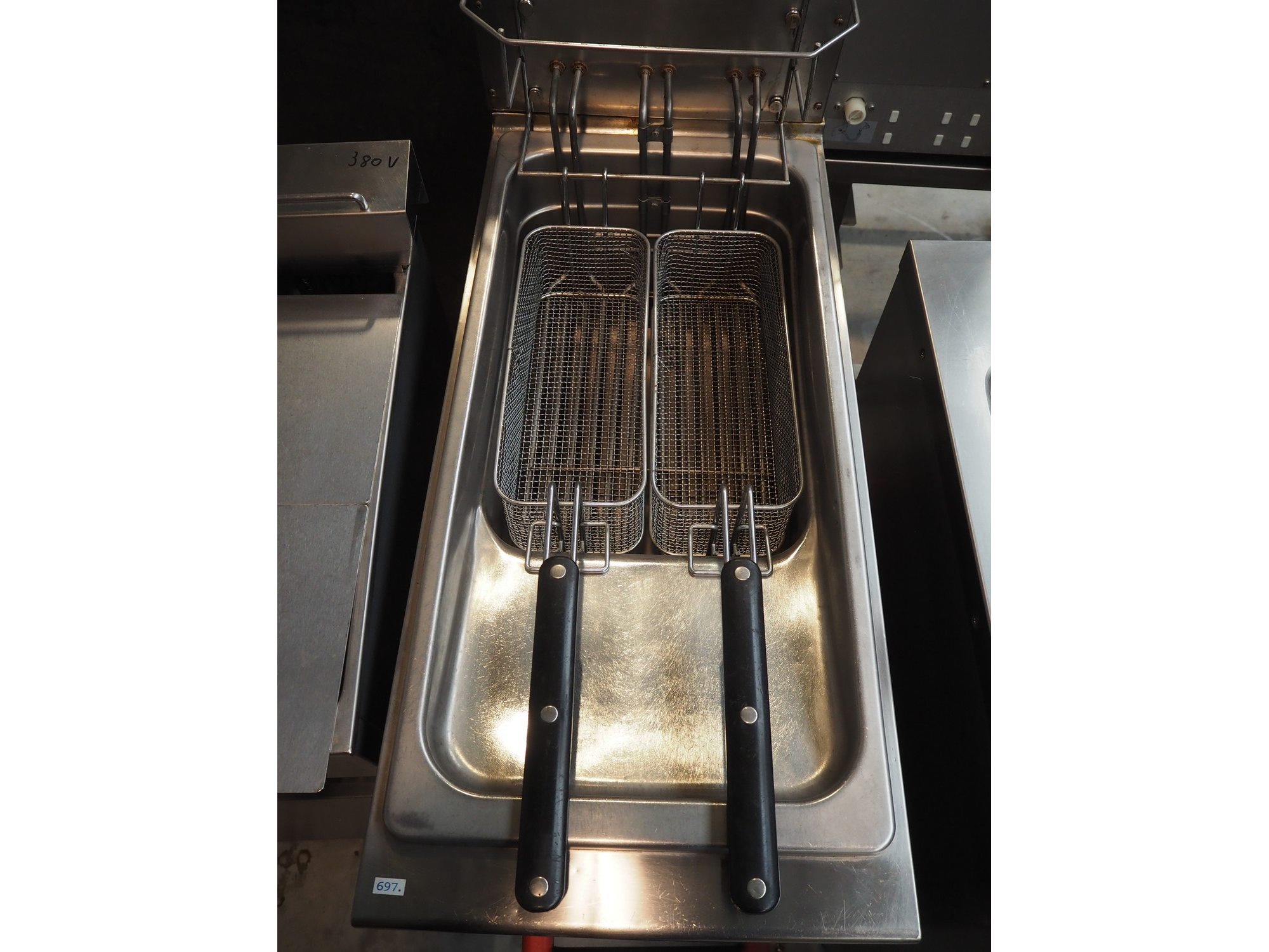 Angelo Po double fryer, model: 70FE1, serial number: 501150001, year of construction: 93, 220 V, 3 Ph, 50 Hz, 37 A, 14.1 kW, dimensions: 920 mm x 400 mm x 1100 mm. Kavel locatie: Beukenhofstraat 77A, 8570 Anzegem, België
