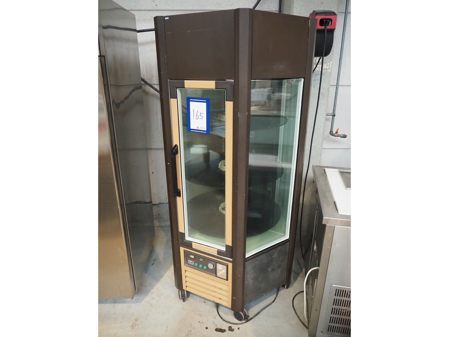 Scaiola mobile refrigerated showcase, 3 floors, floor dimensions: Ø 750 mm, total dimensions: 1050 mm x 1050 mm x 1890 mm. Kavel locatie: Beukenhofstraat 77A, 8570 Anzegem, België