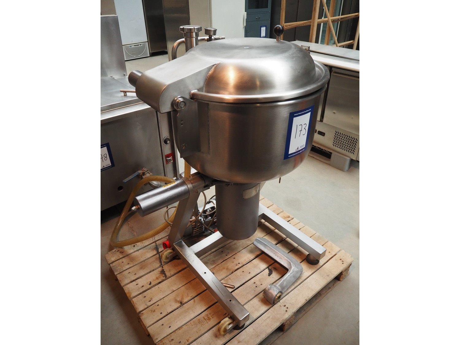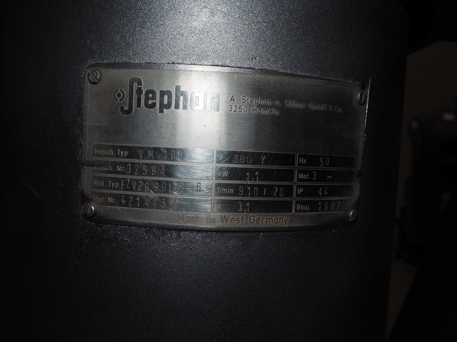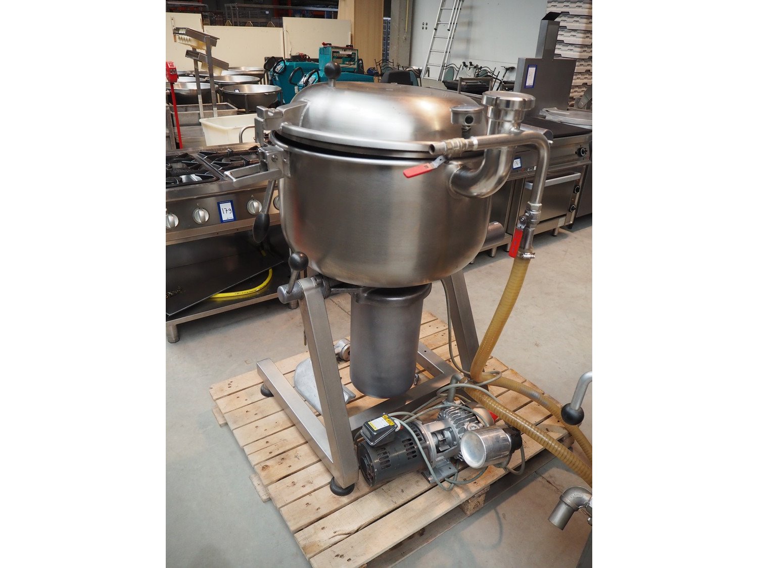 Stephan vacuum mixer, type: VM 100, machine number: 32593, year of construction: 1982, 380 V, 3 Ph, 50 Hz, 3.1 A, inside dimensions: Ø 465 mm x 530 mm, total dimensions: 1100 mm x 950 mm. Kavel locatie: Beukenhofstraat 77A, 8570 Anzegem, België