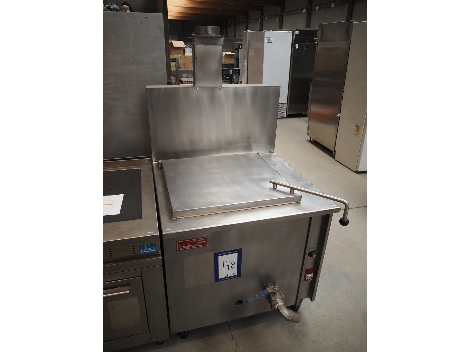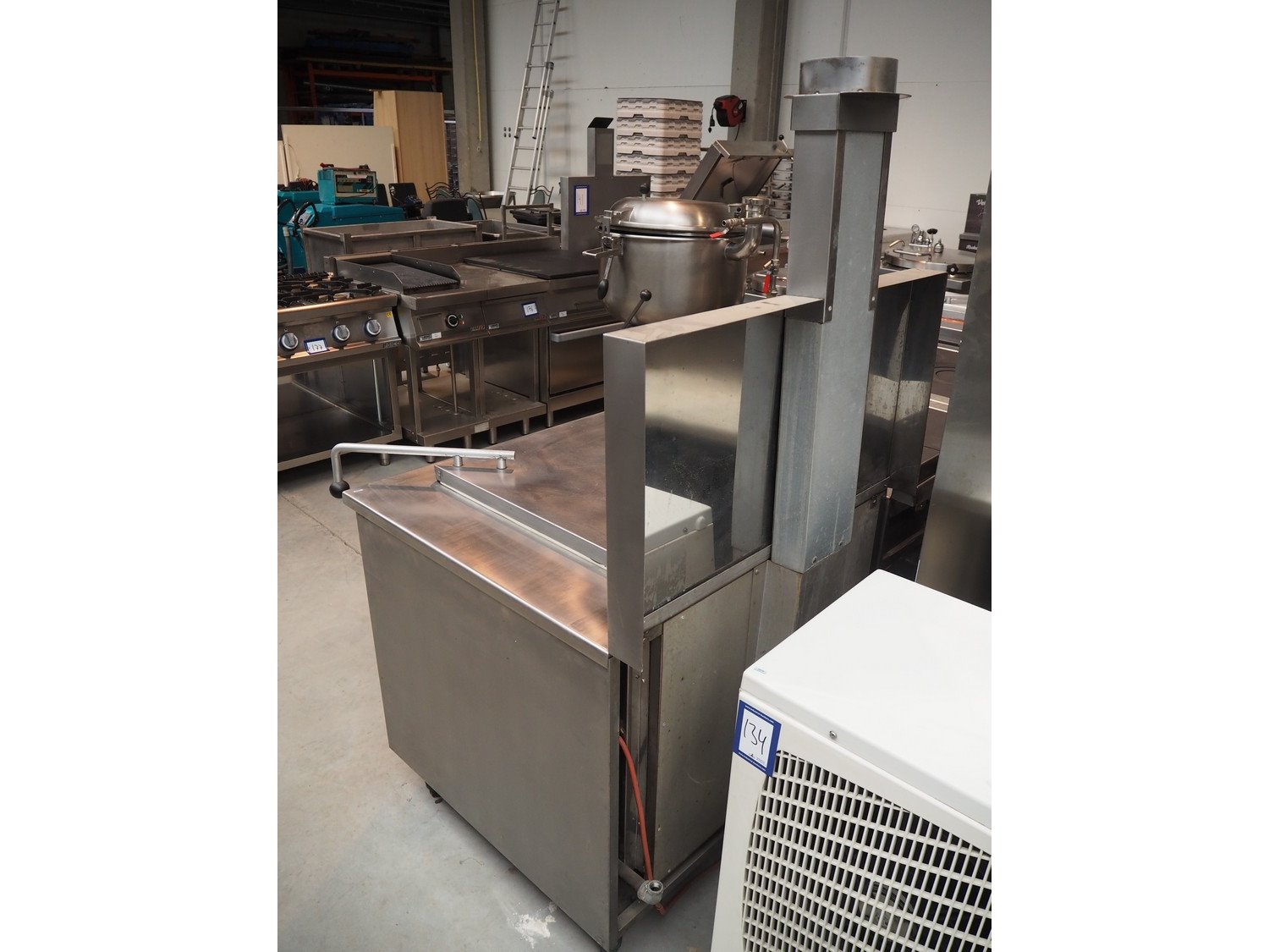 Delrue cooking vessel, number: 20950162, inside dimensions: 500 mm x 500 mm x 430 mm, total dimensions: 800 mm x 1000 mm x 1700 mm. Kavel locatie: Beukenhofstraat 77A, 8570 Anzegem, België