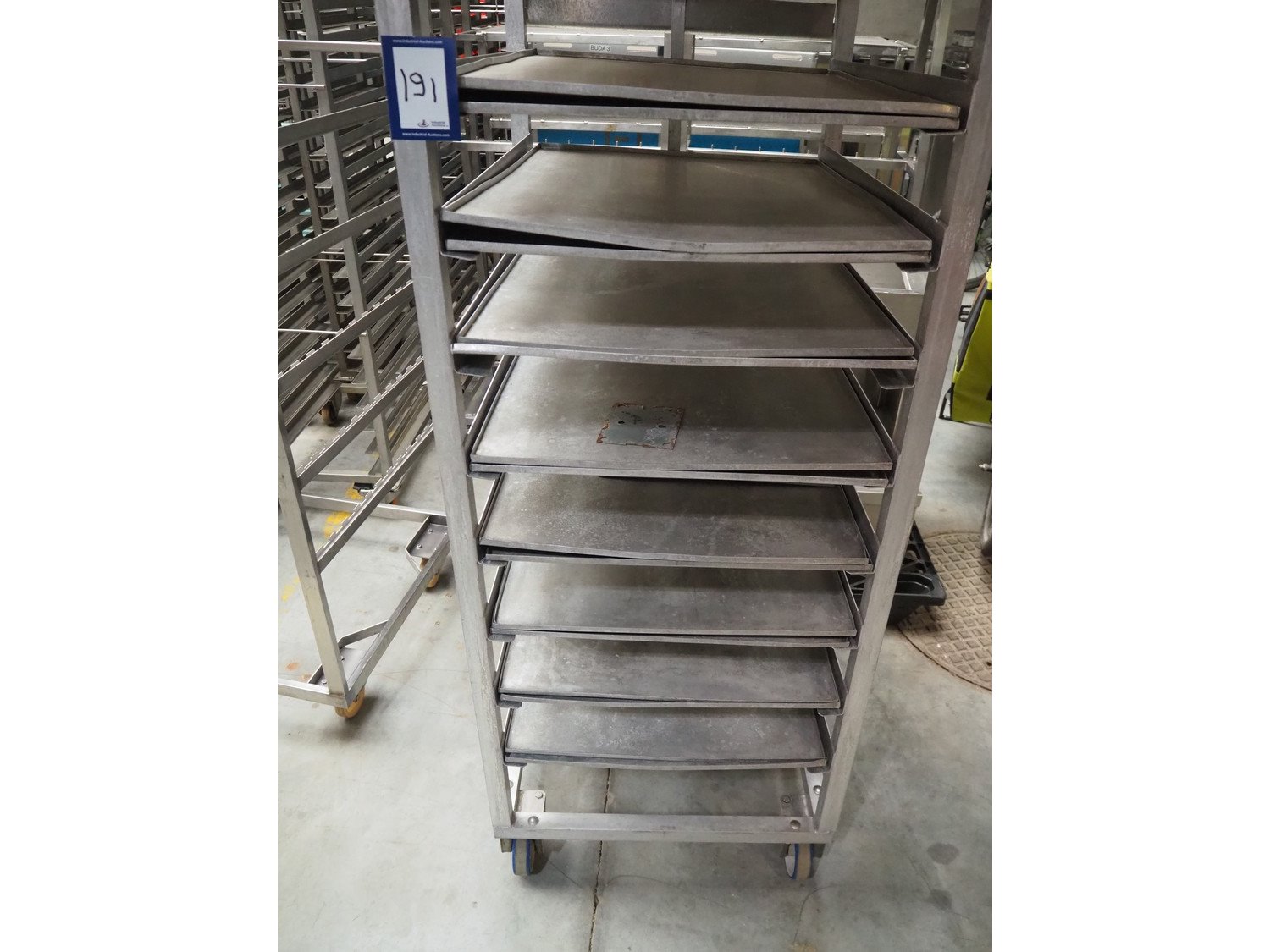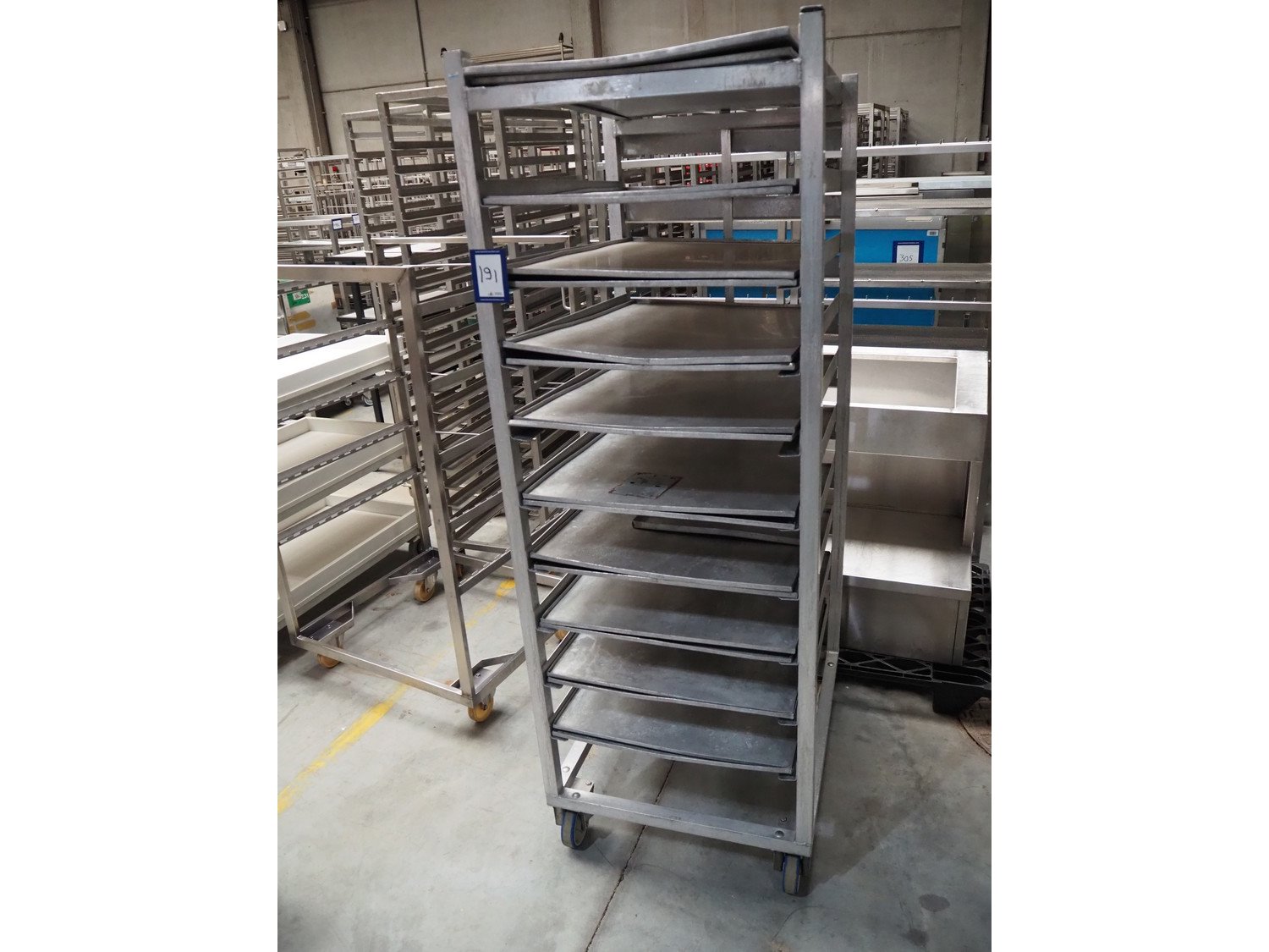 S/s trolley, 10 floors, floor dimensions: (10x) 950 mm x 550 mm, total dimensions: 850 mm x 650 mm x 1850 mm. Kavel locatie: Beukenhofstraat 77A, 8570 Anzegem, België