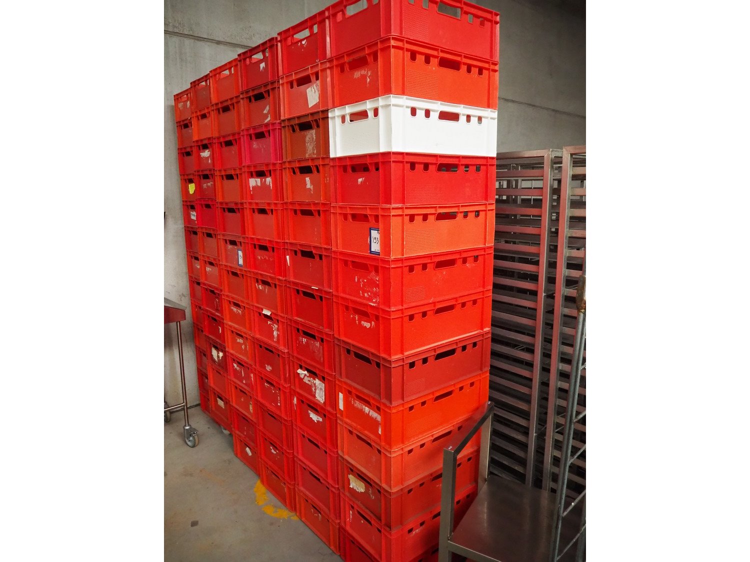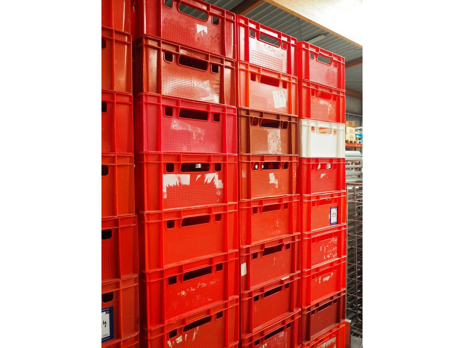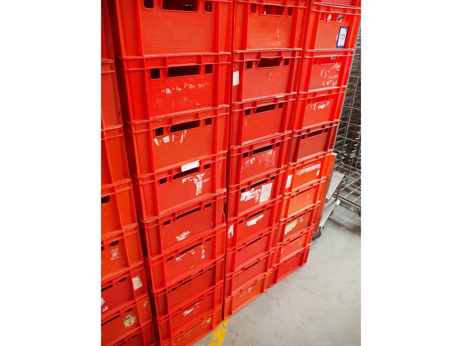 39 plastic E2 crates, dimensions: 600 mm x 400 mm x 200 mm. Kavel locatie: Beukenhofstraat 77A, 8570 Anzegem, België