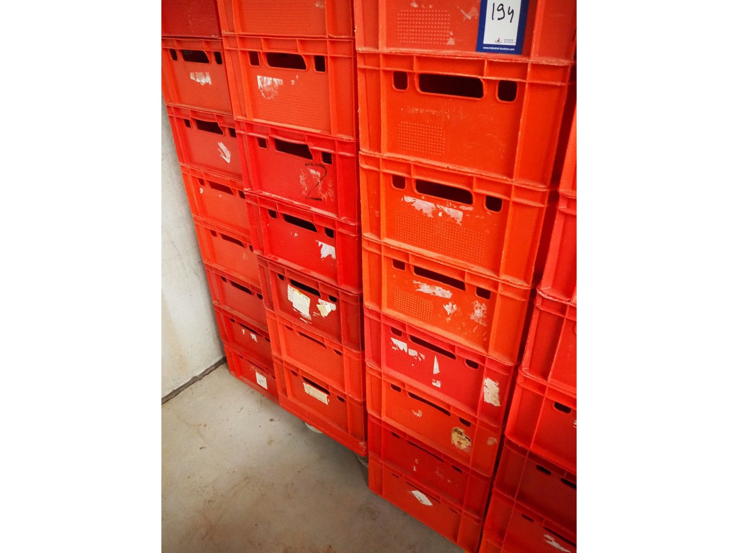 38 plastic E2 crates, dimensions: 600 mm x 400 mm x 200 mm. Kavel locatie: Beukenhofstraat 77A, 8570 Anzegem, België