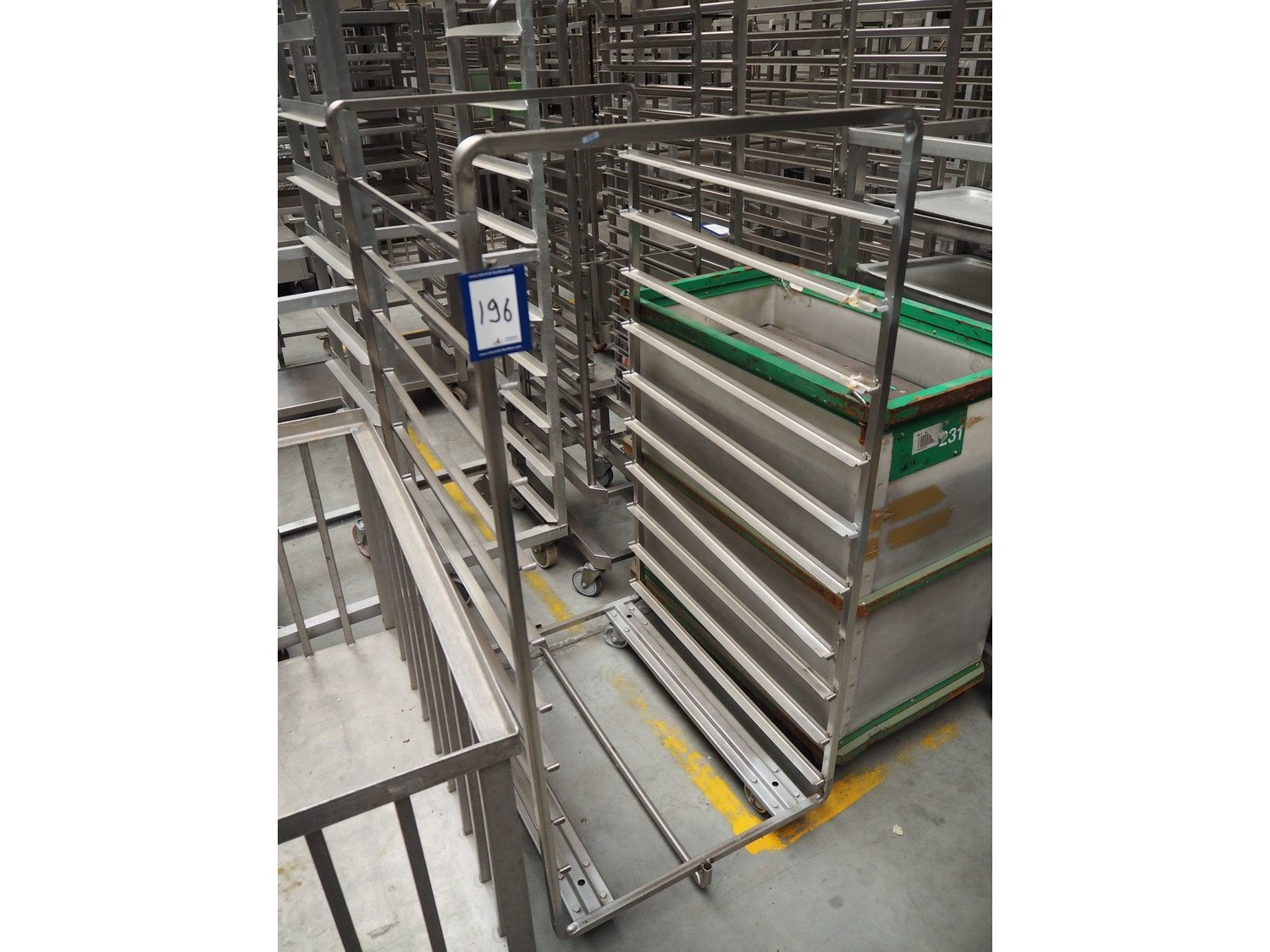S/s trolley, 9 floors, floor dimensions: (9x) 820 mm x 600 mm, total dimensions: 850 mm x 650 mm x 1500 mm. Kavel locatie: Beukenhofstraat 77A, 8570 Anzegem, België