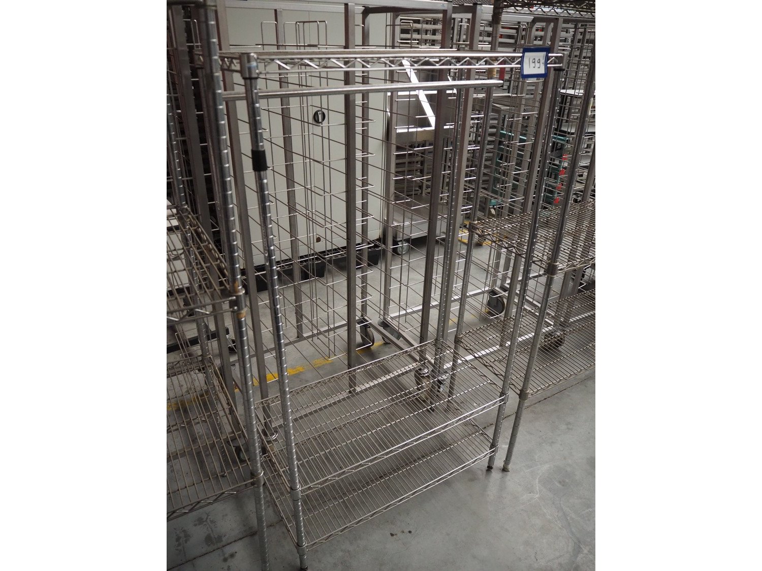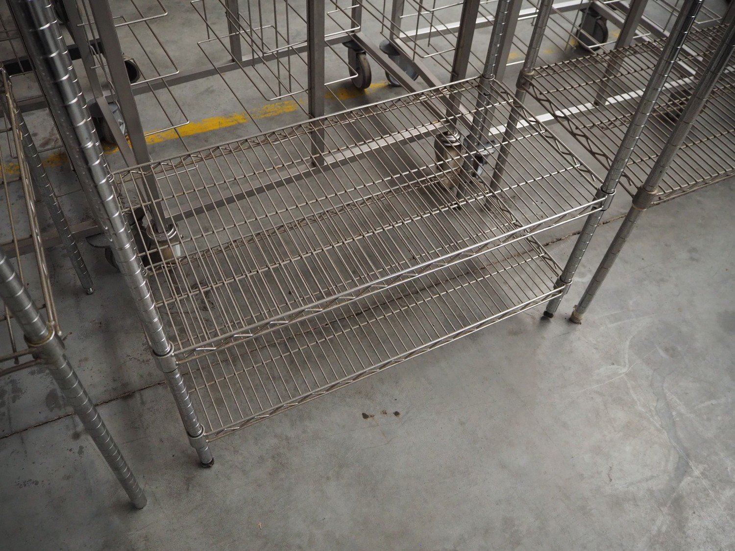 S/s rack, 3 floors, floor dimensions: (3x) 900 mm x 460 mm, total dimensions: 900 mm x 460 mm x 1650 mm. Kavel locatie: Beukenhofstraat 77A, 8570 Anzegem, België