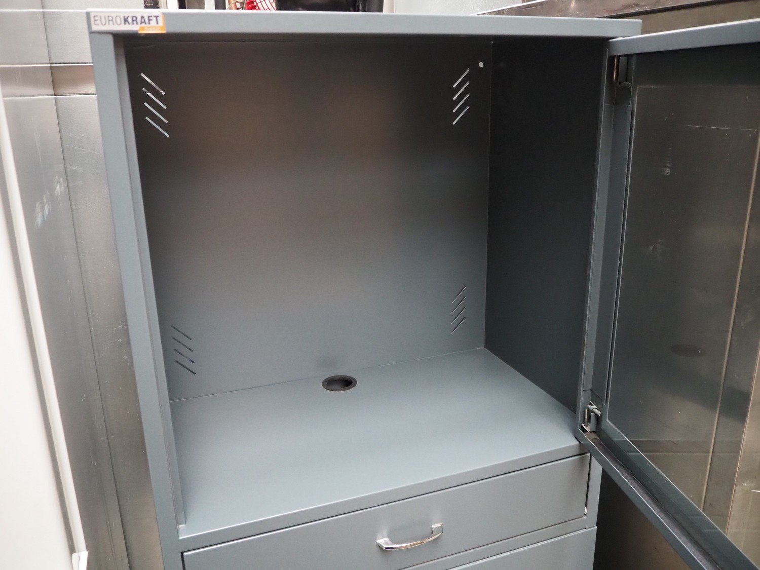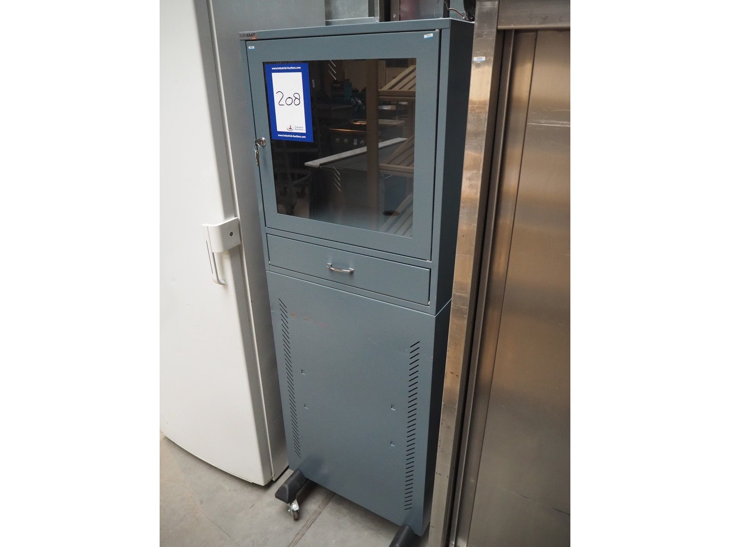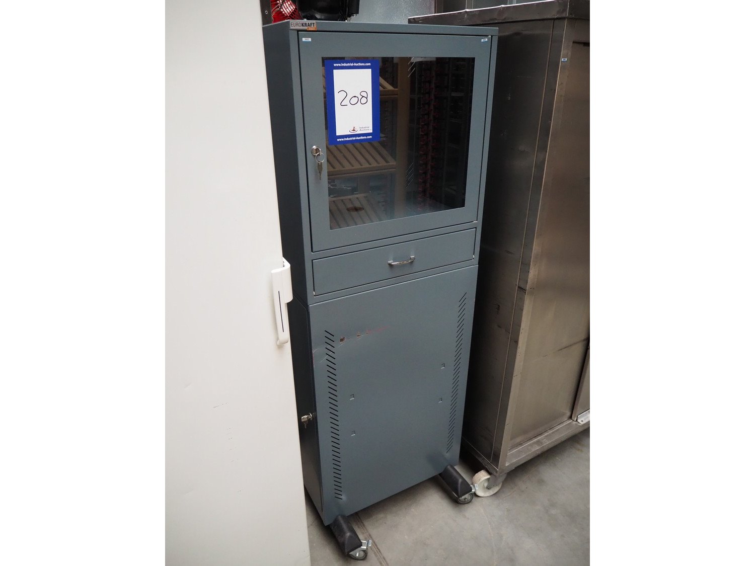 Eurokraft mobile PC cabinet, dimensions: 600 mm x 600 mm x 1730 mm. Kavel locatie: Beukenhofstraat 77A, 8570 Anzegem, België
