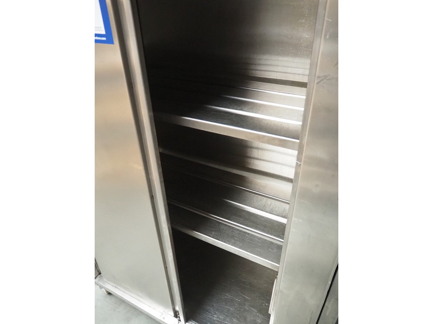S/s mobile heated trolley, 2 floors, floor dimensions: (2x) 1000 mm x 450 mm, total dimensions: 1200 mm x 720 mm x 1800 mm. Kavel locatie: Beukenhofstraat 77A, 8570 Anzegem, België