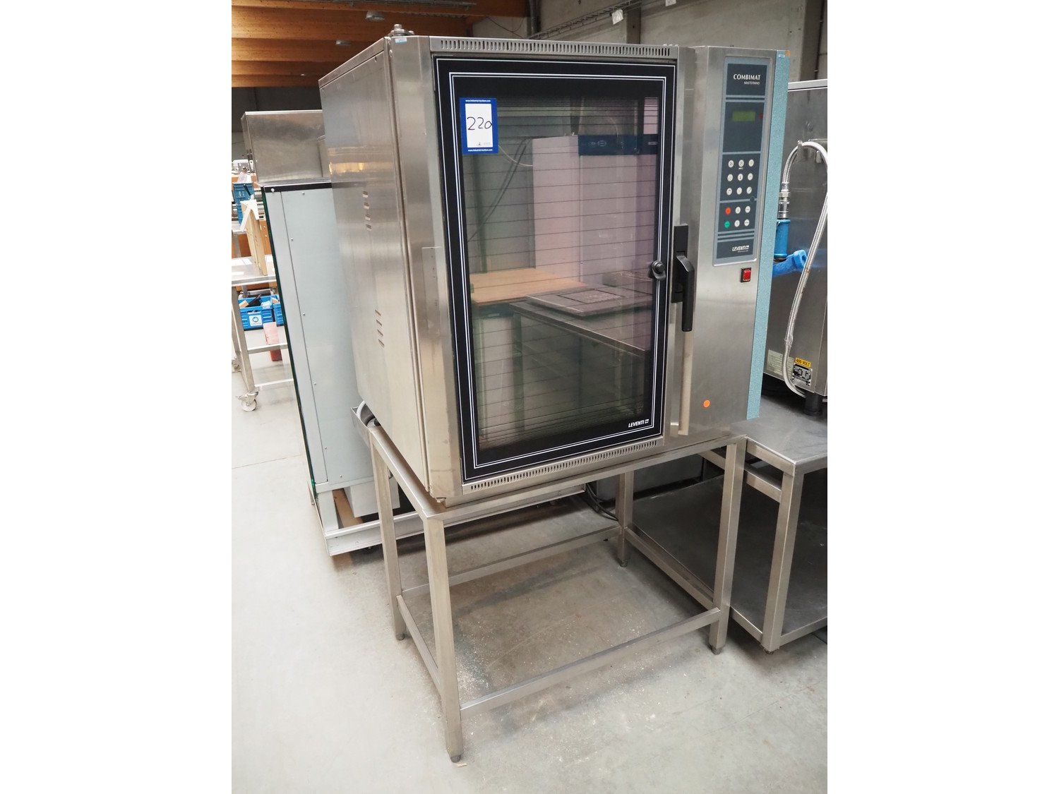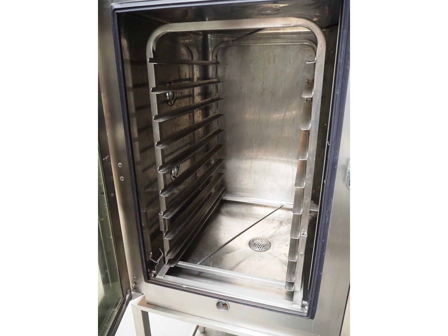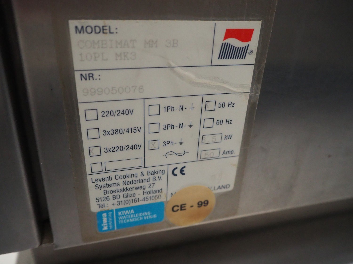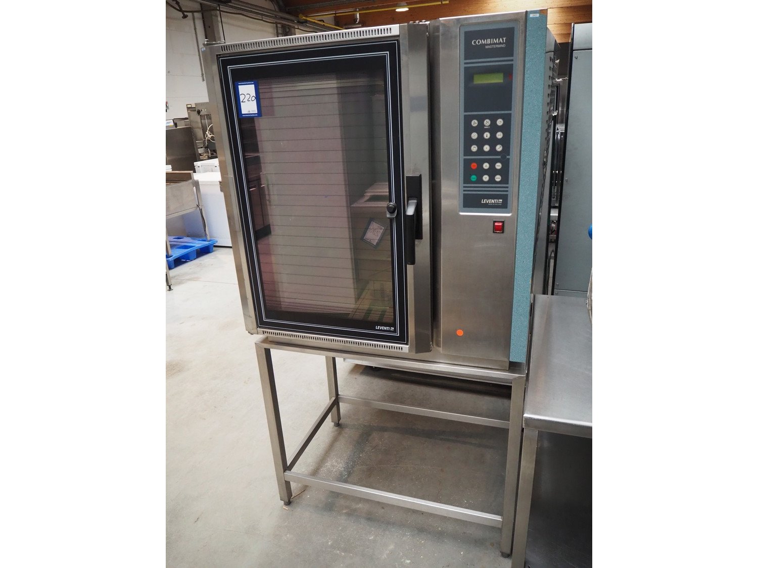 Leventi combi steamer on s/s frame, model: COMBIMAT MM 3B 10PL MK3, number: 999050076, 220/240 V, 3 Ph, 50 A, 18.5 kW, 10 floors, dimensions floors: (10x) 600 mm x 400 mm, total dimensions: 970 mm x 970 mm x 1850 mm. Kavel locatie: Beukenhofstraat 77A, 8570 Anzegem, België