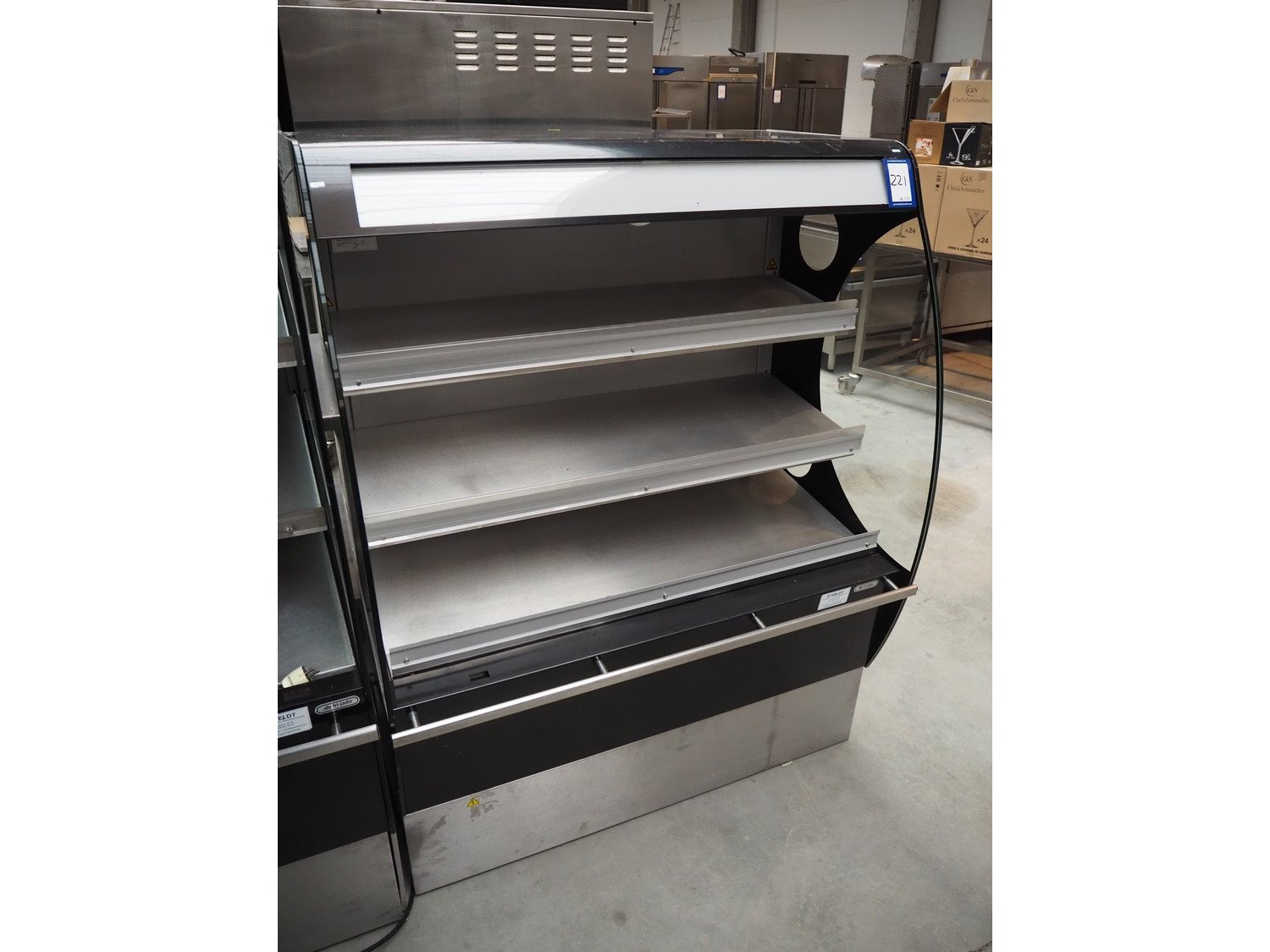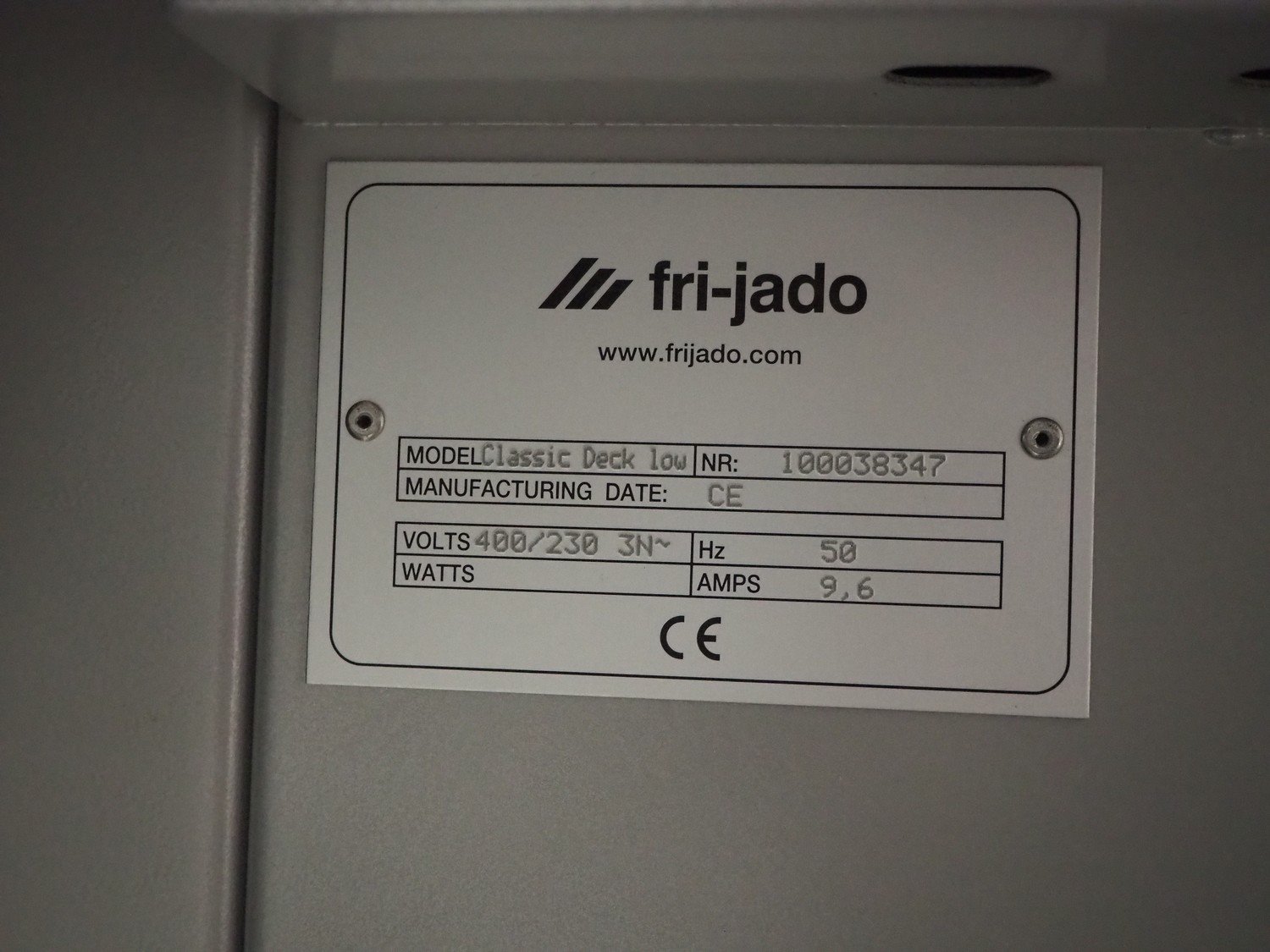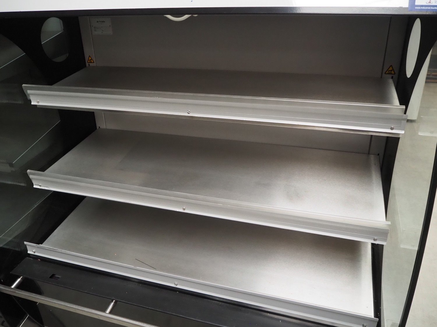 Fri-Jado heated showcase, model: Classic Deck Low, number: 100038347, 230/400 V, 3 Ph, 50 Hz, 9.6 A, 3 floors, total dimensions: 1200 mm x 800 mm x 1550 mm. Kavel locatie: Beukenhofstraat 77A, 8570 Anzegem, België
