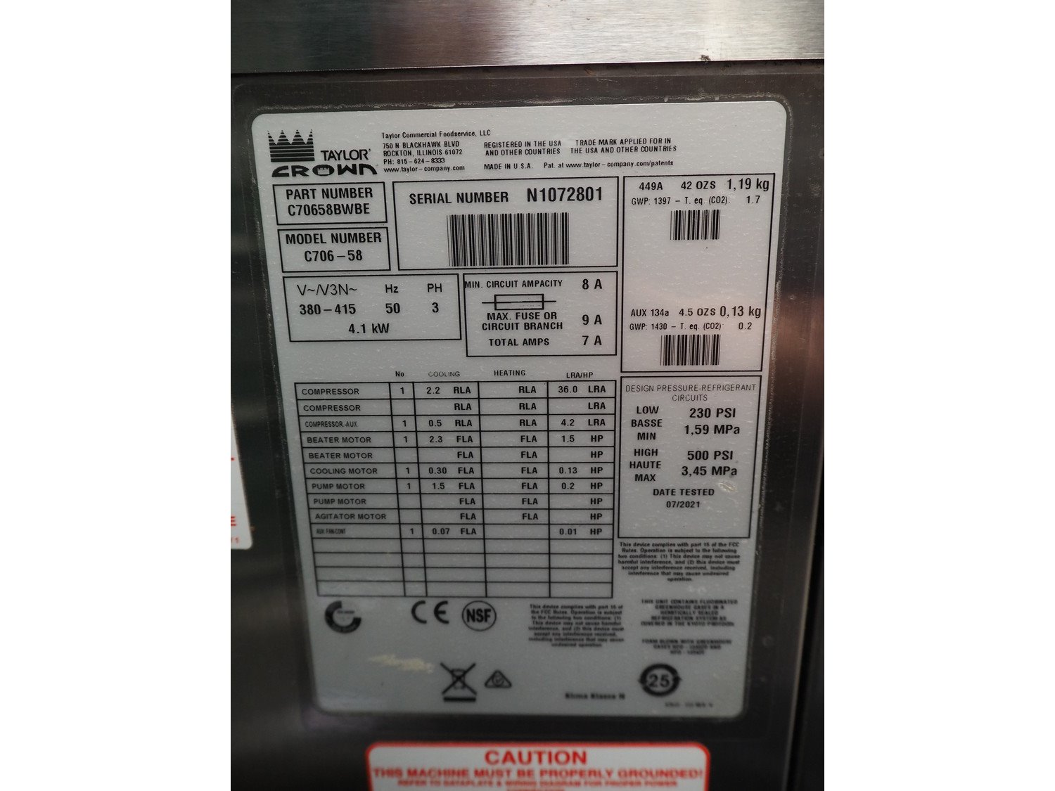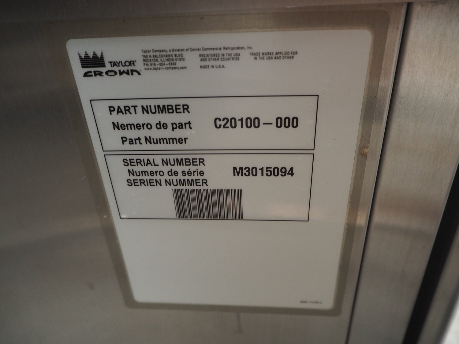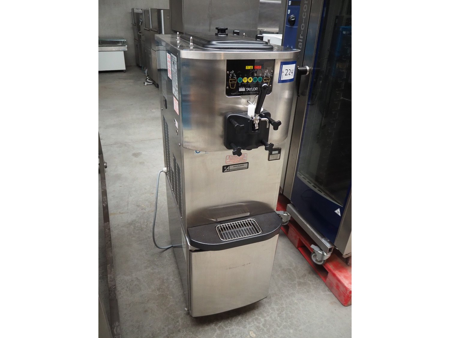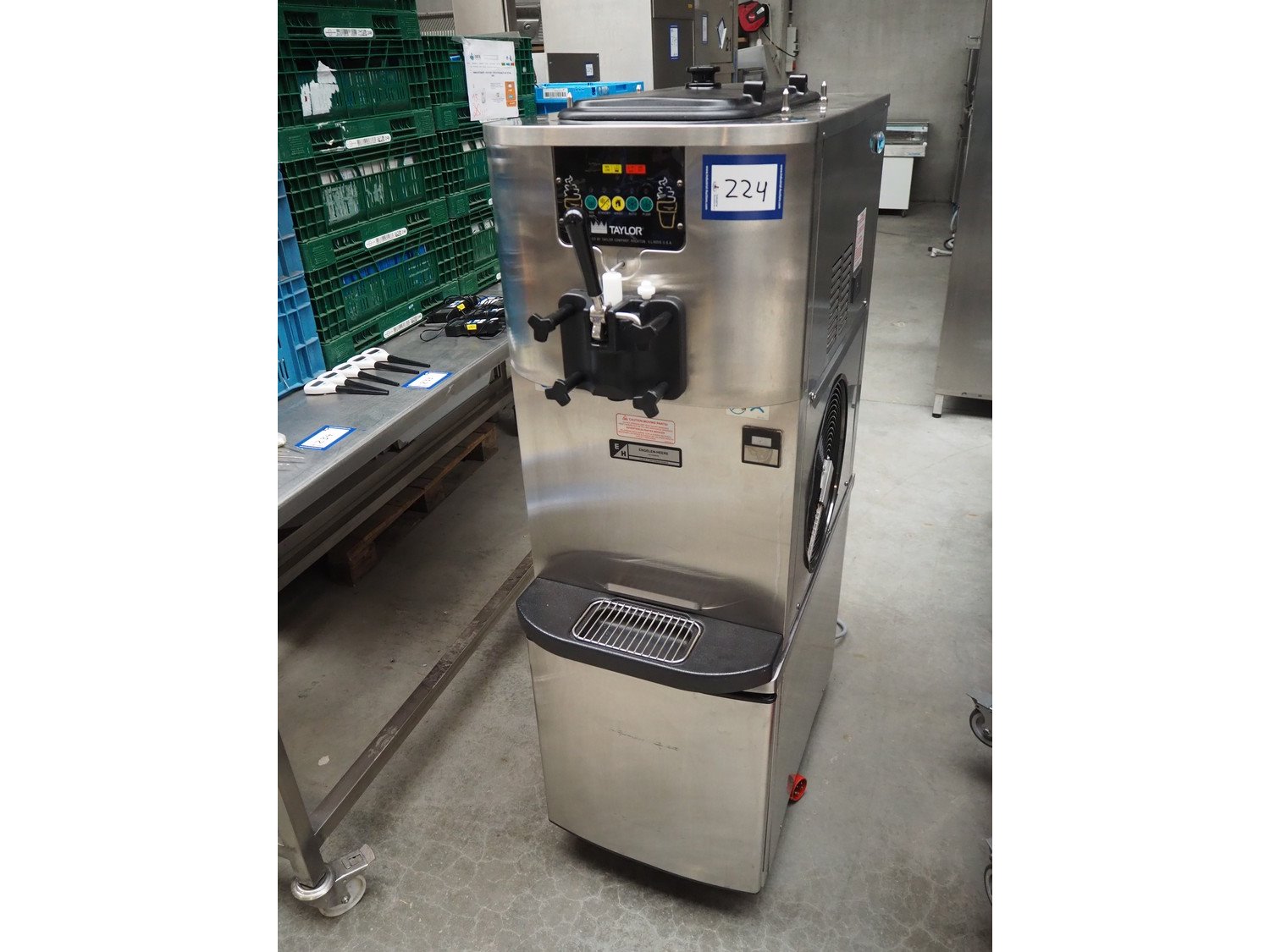 Taylor Crown mobile ice cream machine, model: C706-58, serial number: N1072801, 380/415 V, 3 Ph, 50 Hz, 4.1 kW, dimensions: 870 mm x 500 mm x 1550 mm. Including crate with parts. Kavel locatie: Beukenhofstraat 77A, 8570 Anzegem, België