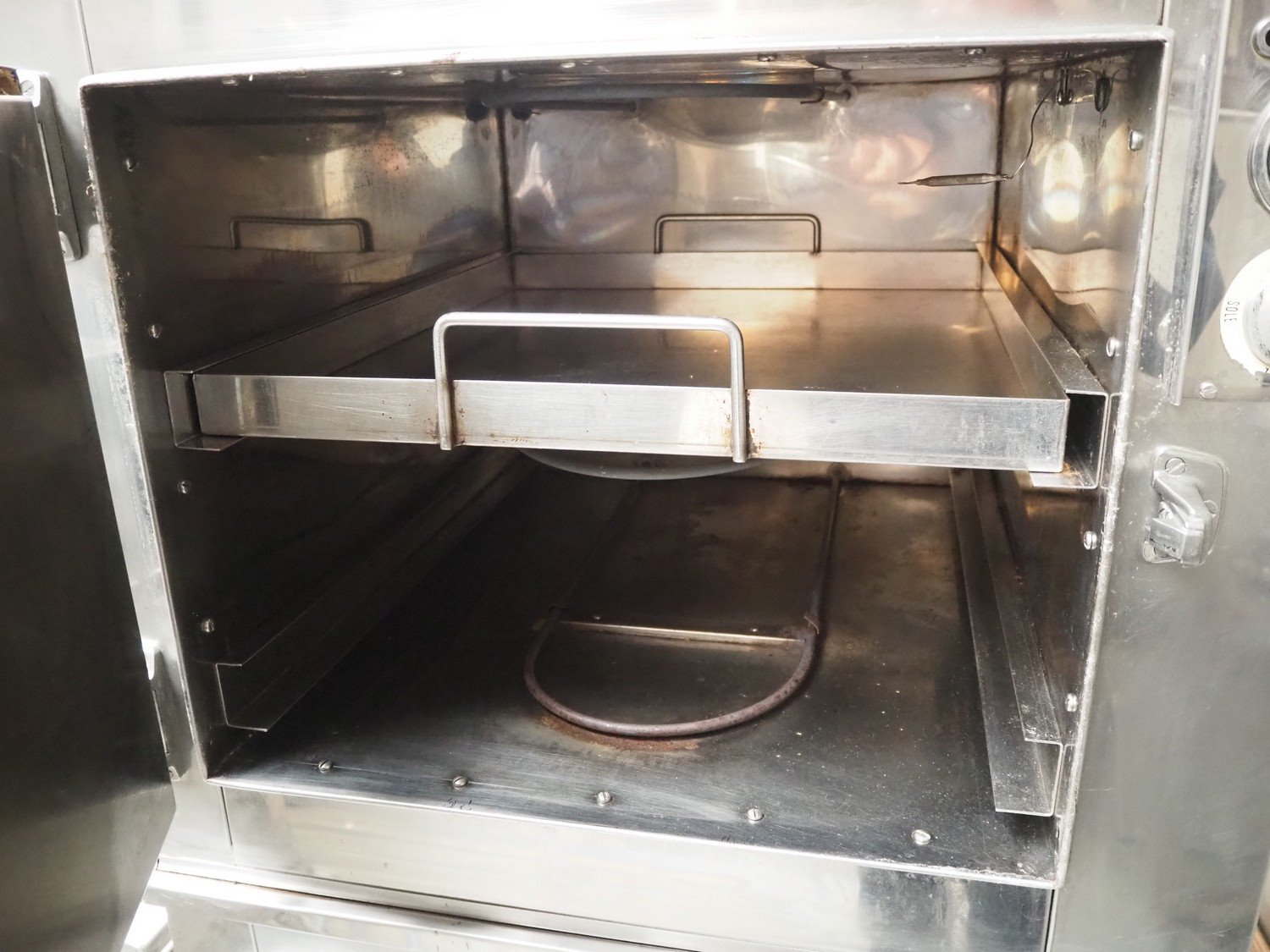 Delrue double oven, number: 7502 832, 4 floors, dimensions floors: (4x) 650 mm x 450 mm, total dimensions: 820 mm x 750 mm x 1680 mm. Kavel locatie: Beukenhofstraat 77A, 8570 Anzegem, België