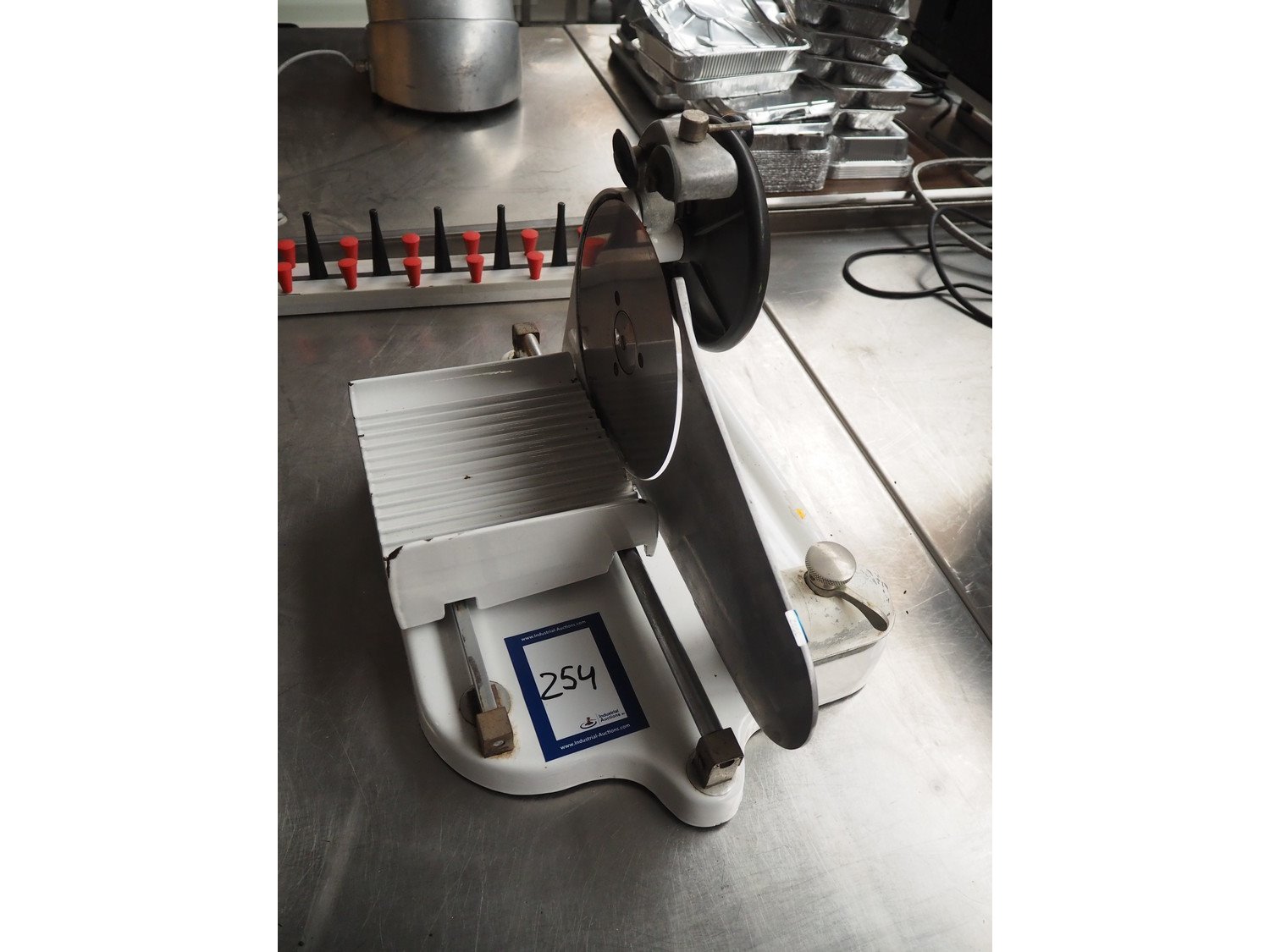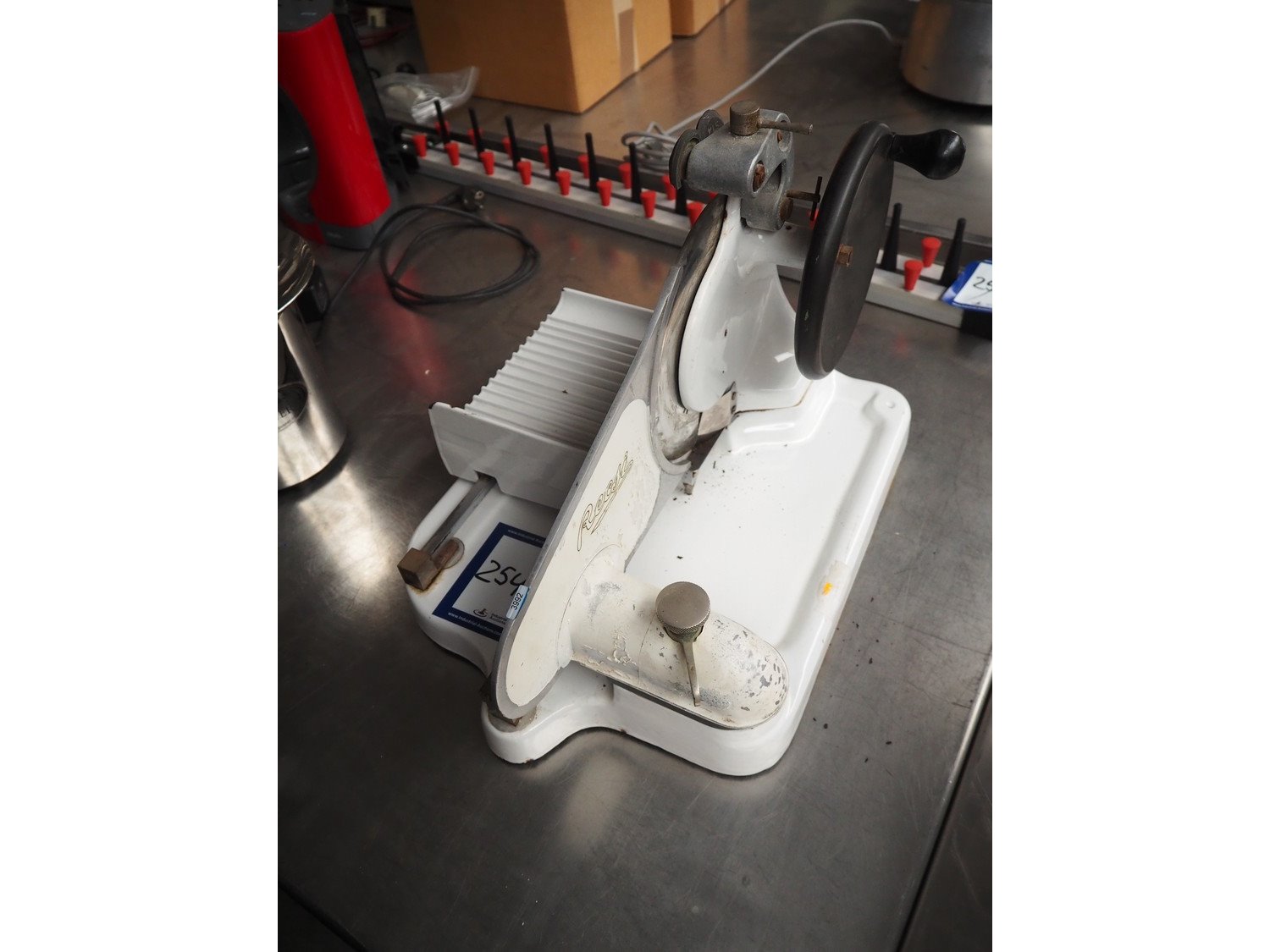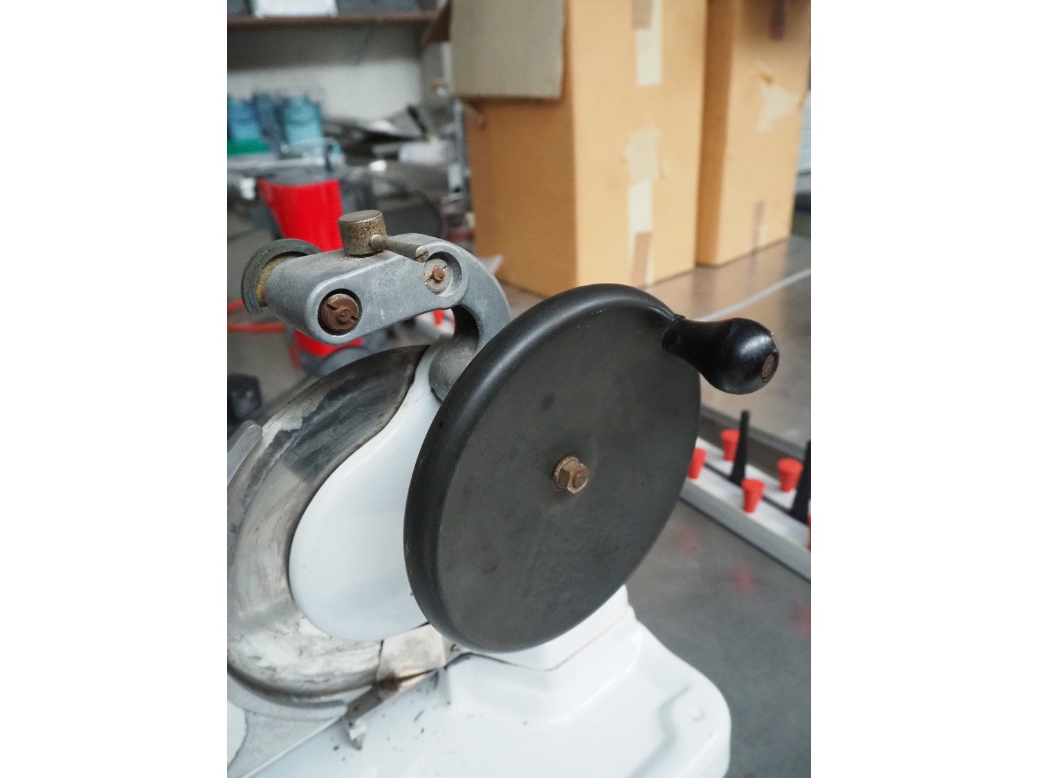 Recsi slicer, diameter knife: 215 mm, total dimensions: 550 mm x 360 mm x 360 mm. Kavel locatie: Beukenhofstraat 77A, 8570 Anzegem, België