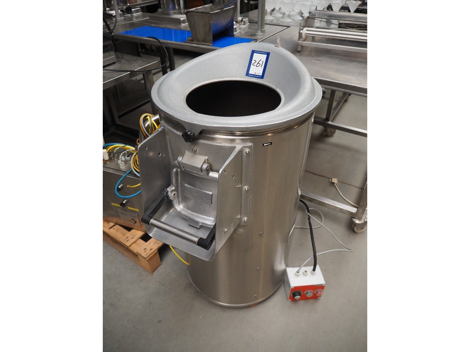 Dito sama peeler, type: T25E, number: 27007 0426 001, 230/400 V, 3 Ph, 50/60 Hz, 2.4/4.2 A, Ø input: 320 mm, total dimensions: 800 mm 570 mm 1120 mm. Kavel locatie: Beukenhofstraat 77A, 8570 Anzegem, België