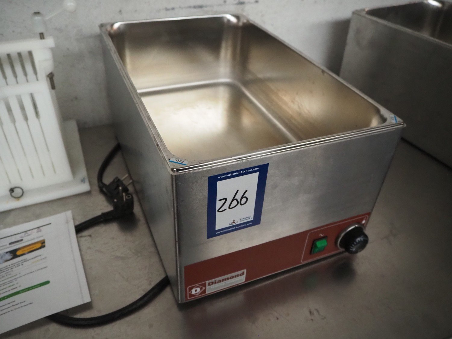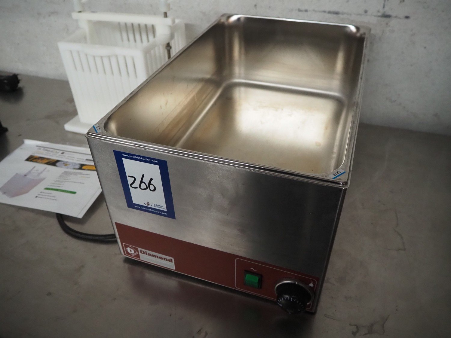 Diamond au bain-marie, model: BM1/X, 220-240 V, 50 Hz, 1500 W, inside dimensions: 300 mm x 500 mm x 160 mm, total dimensions: 560 mm x 330 mm x 250 mm. Kavel locatie: Beukenhofstraat 77A, 8570 Anzegem, België