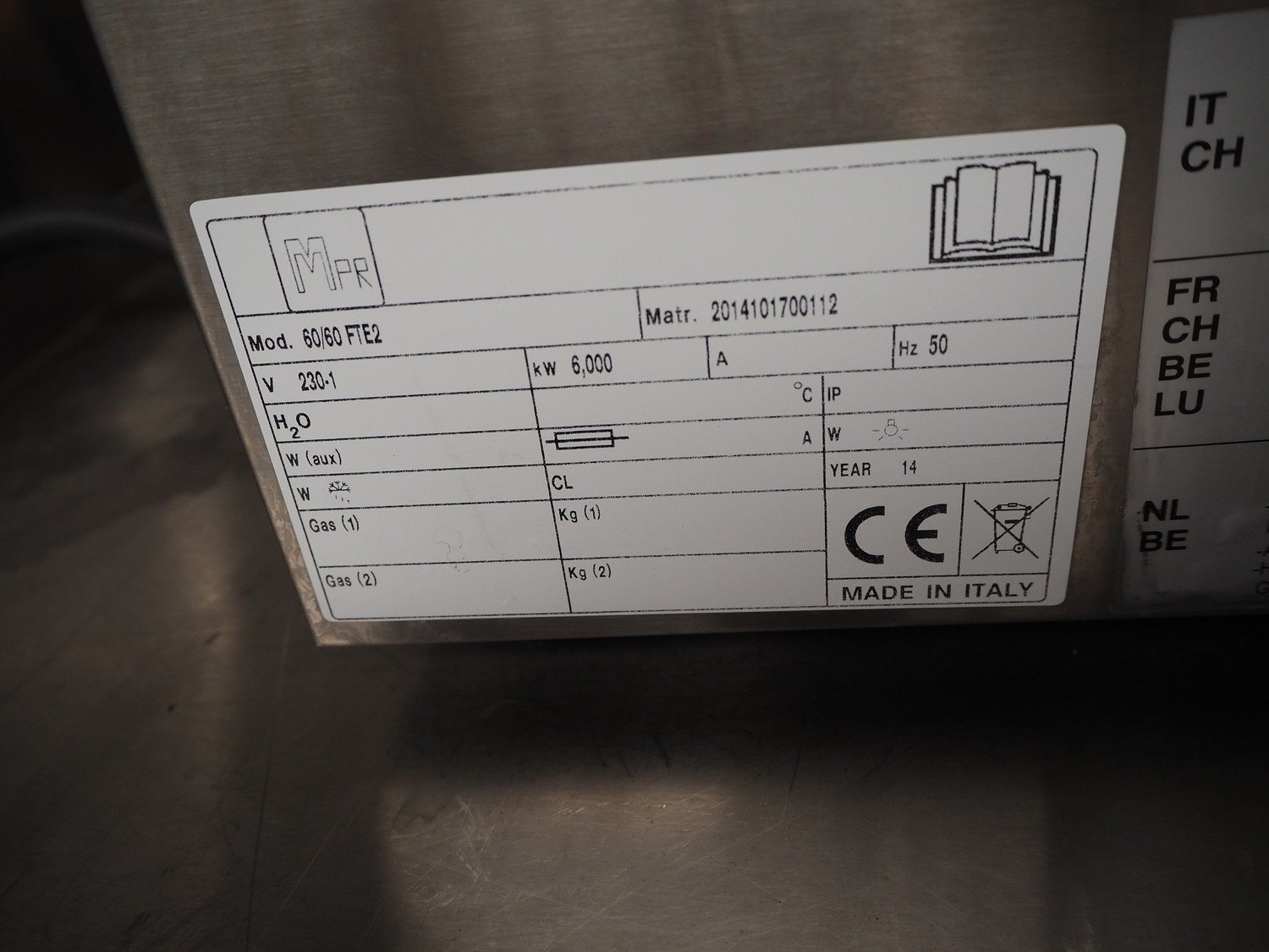 Diamond/MPR grill, model: 60/60 FTE2, number: 2014101700112, year of construction: 2014, 230 V, 1 Ph, 50 Hz, 6 kW, grill dimensions: 595 mm x 470 mm, total dimensions: 630 mm x 600 mm x 420 mm. Kavel locatie: Beukenhofstraat 77A, 8570 Anzegem, België