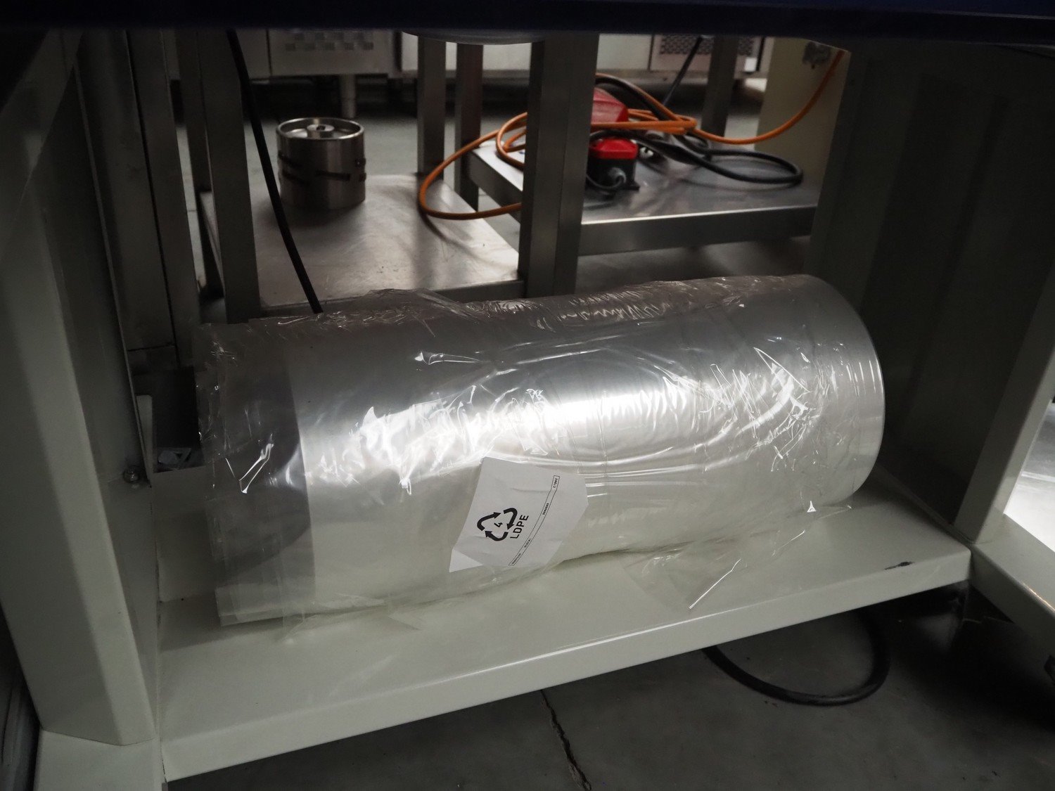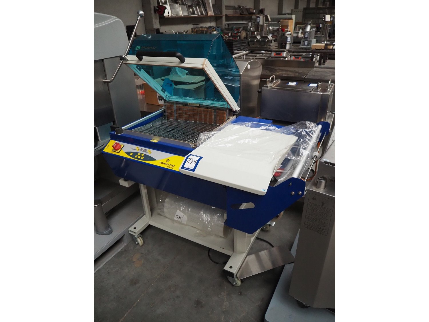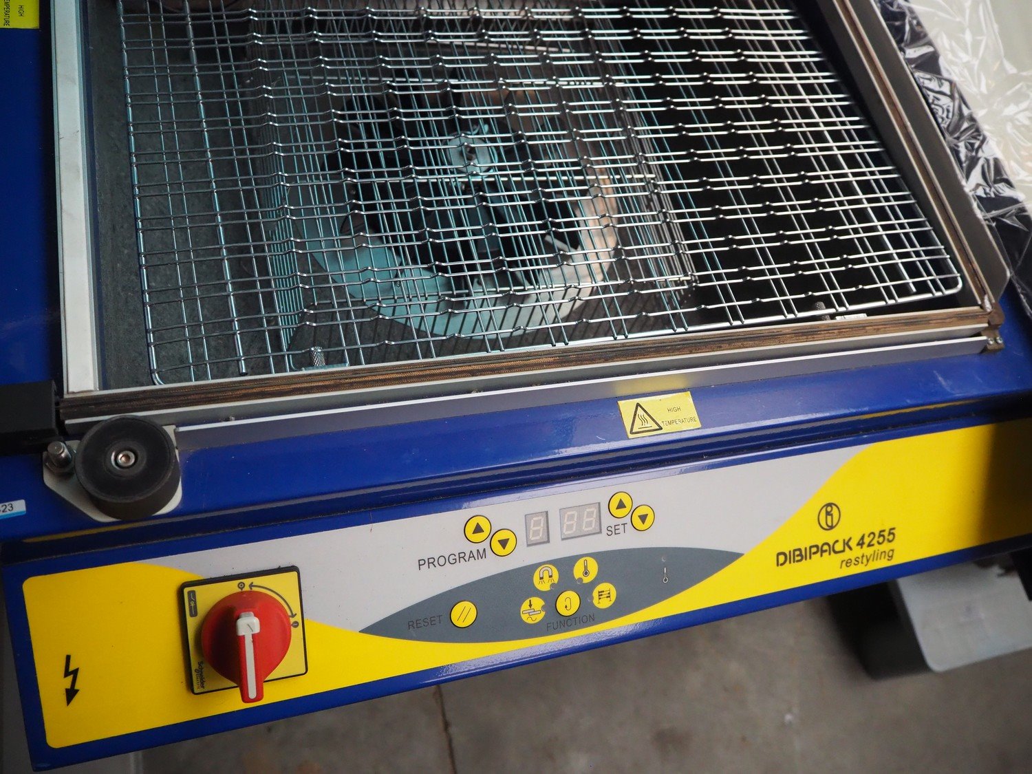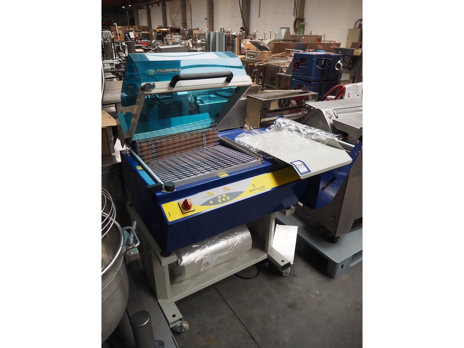 Italdibipack S.p.A. mobile shrink wrapper, model: Dibipack 4255EVX restyling, serial number: 022634, year of construction 2021, 230 V, 50/60 Hz, 3.5 kW, weight: 90 Kg, film width: 515 mm, seal length: 570 mm x 440 mm, total dimensions: 800 mm x 1300 mm x 1500 mm. Including 2 extra film rolls. Kavel locatie: Beukenhofstraat 77A, 8570 Anzegem, België
