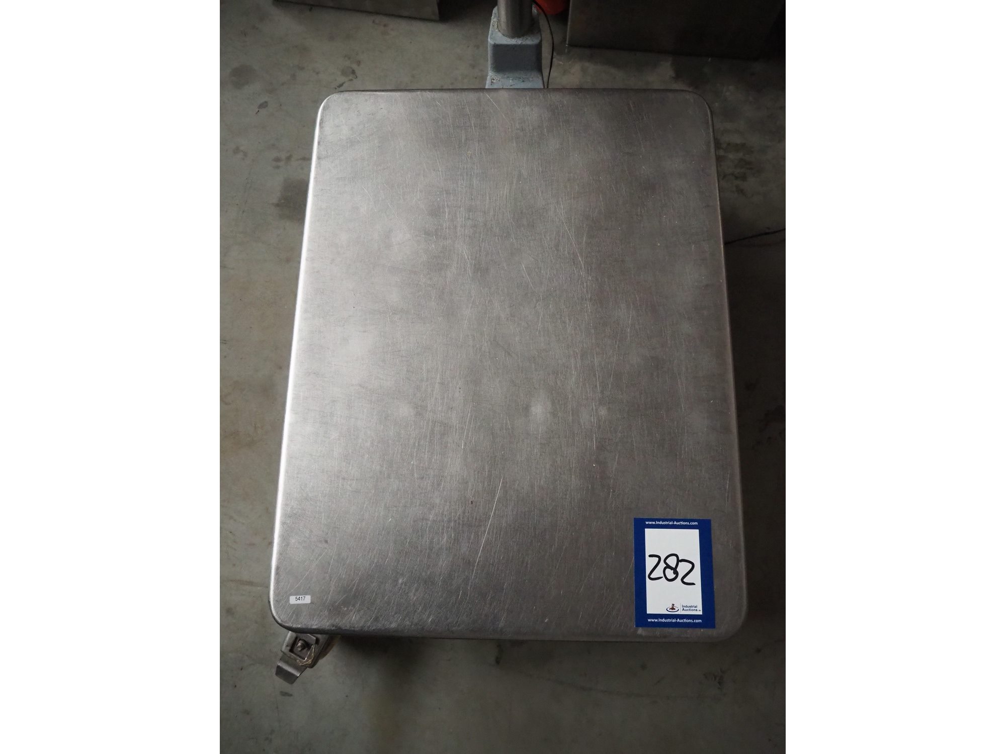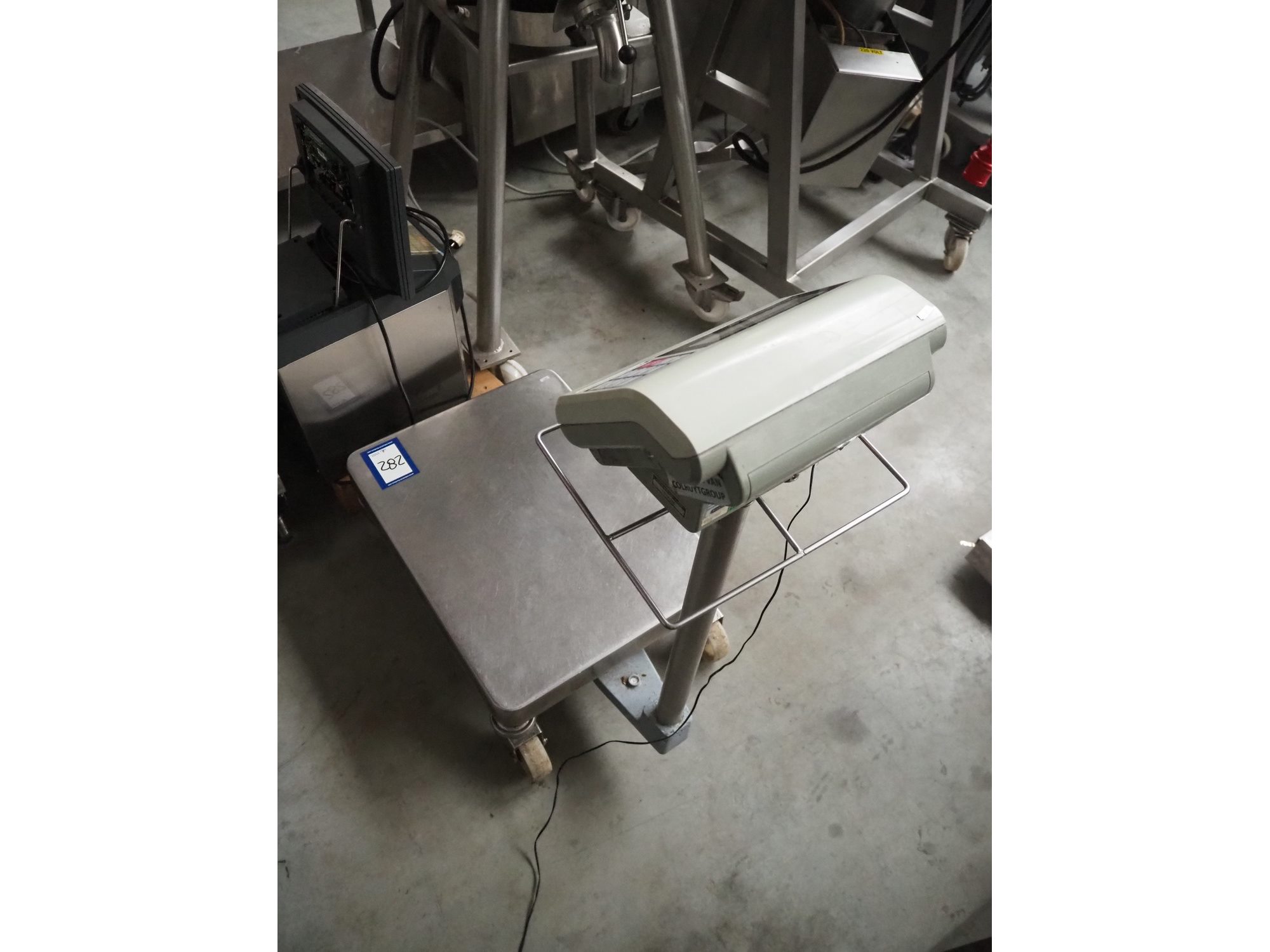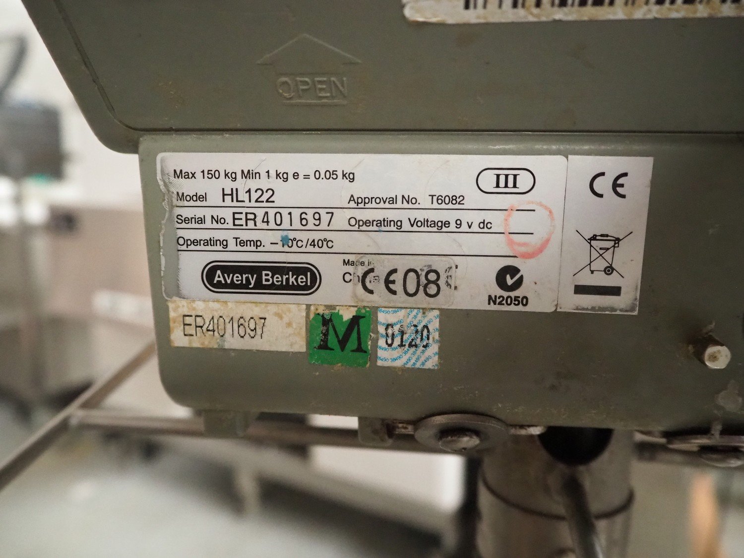 Avery Berkel mobile weighing scale, model: HL122, serial number: ER401697, year of construction: 2008, maximum weight: 150 kg, minimum weight: 1 kg, e=0.05 kg, 9 V, operating temp: -10°C/40°C, dimensions scale: 600 mm x 460 mm, total dimensions: 850 mm x 460 mm x 1000 mm. Kavel locatie: Beukenhofstraat 77A, 8570 Anzegem, België