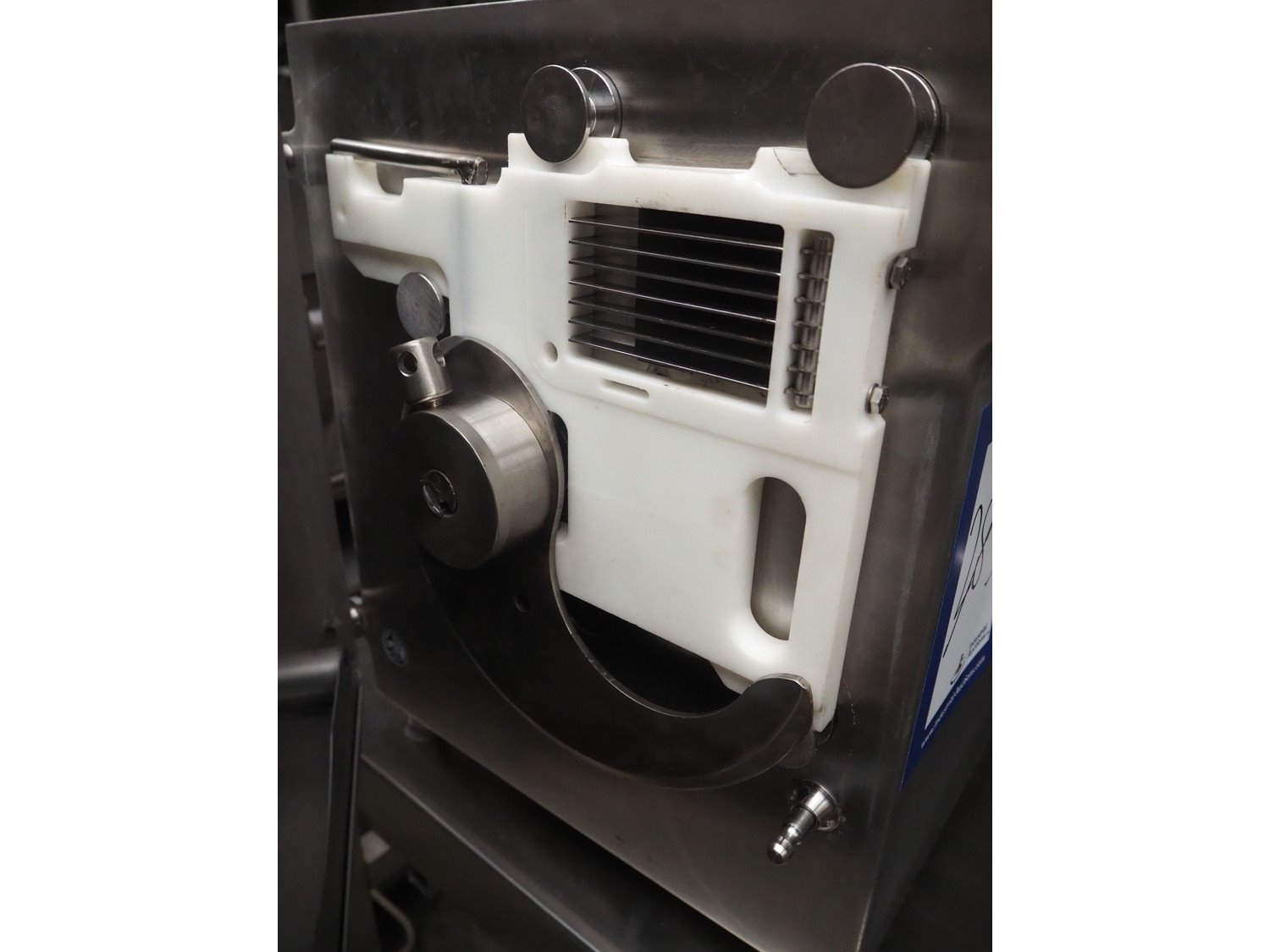 Dadaux strip cutter, model: PRECICUT 2 D, number: PVBX 034, 400 V, 50 Hz, chamber dimensions: 70 mm x 70 mm x 170 mm, distance between knives: 7 mm, total dimensions: 680 mm x 500 mm x 640 mm. Kavel locatie: Beukenhofstraat 77A, 8570 Anzegem, België