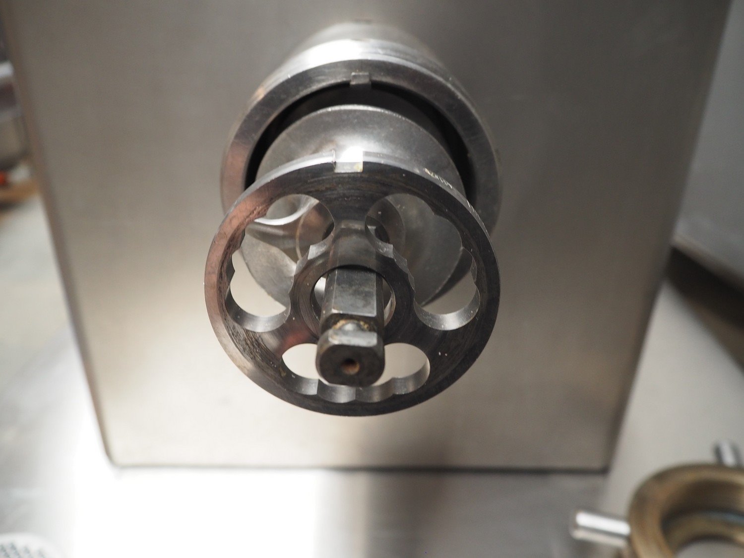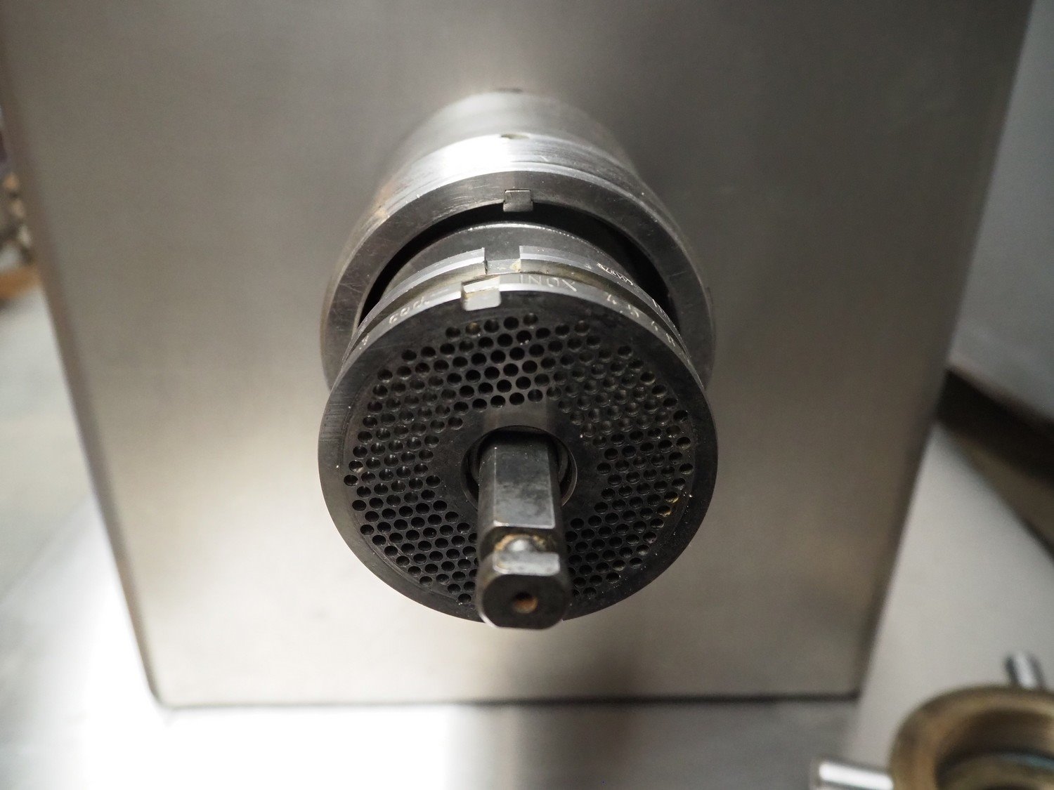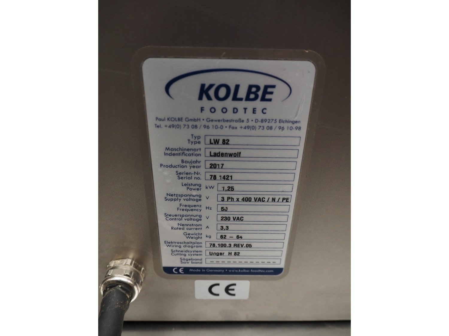 Kolbe grinder table model, type: LW 82, serial number: 78 1421, year of construction: 2017, 400 V, 3 Ph, 50 Hz, 3.3 A, 1.25 kW, weight: 64 kg, Ø perforations: 3 mm, Ø plate: 80 mm, total dimensions: 480 mm x 440 mm x 600 mm. Kavel locatie: Beukenhofstraat 77A, 8570 Anzegem, België