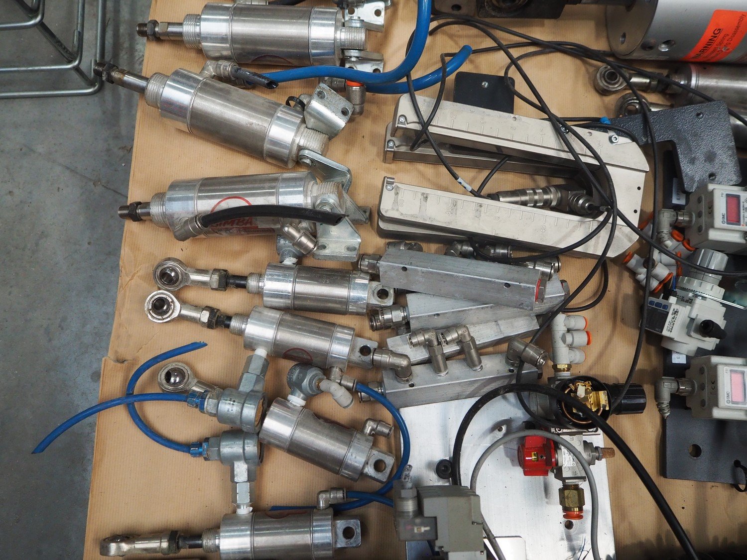 21x gas springs, 2x Illinois Pneumatics, model: 16SAL-1-CMB-NS, 2x Clippard Minimatic, 17x Bimba Stainless. Kavel locatie: Beukenhofstraat 77A, 8570 Anzegem, België