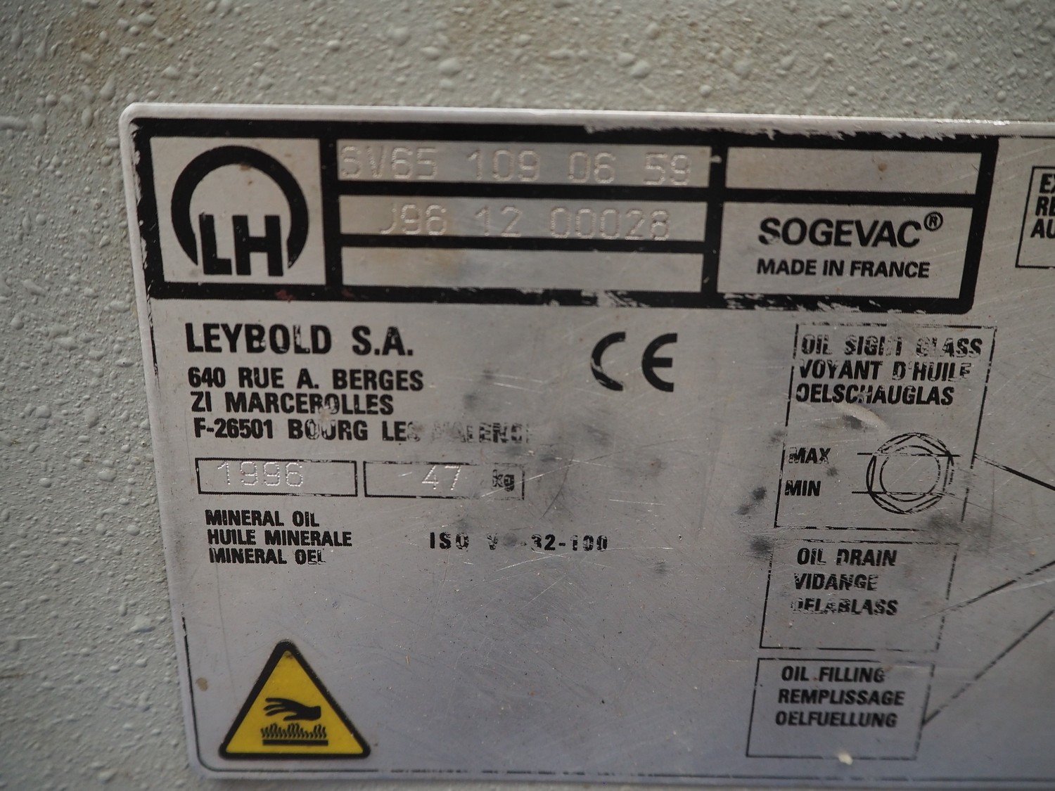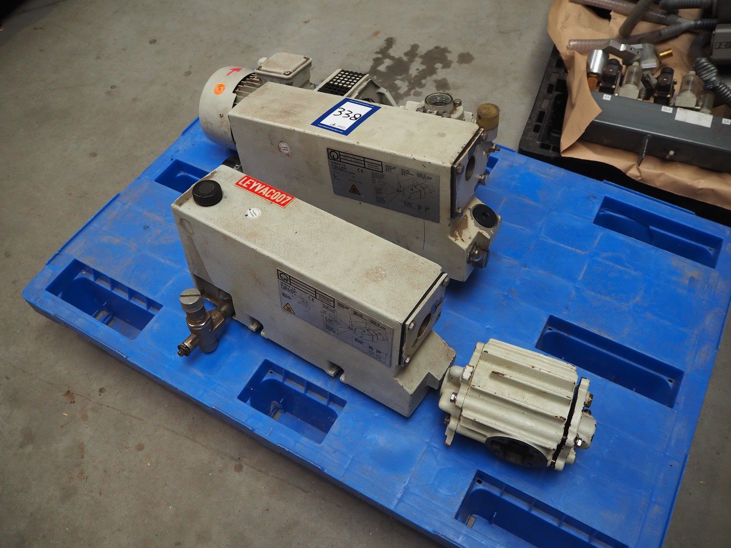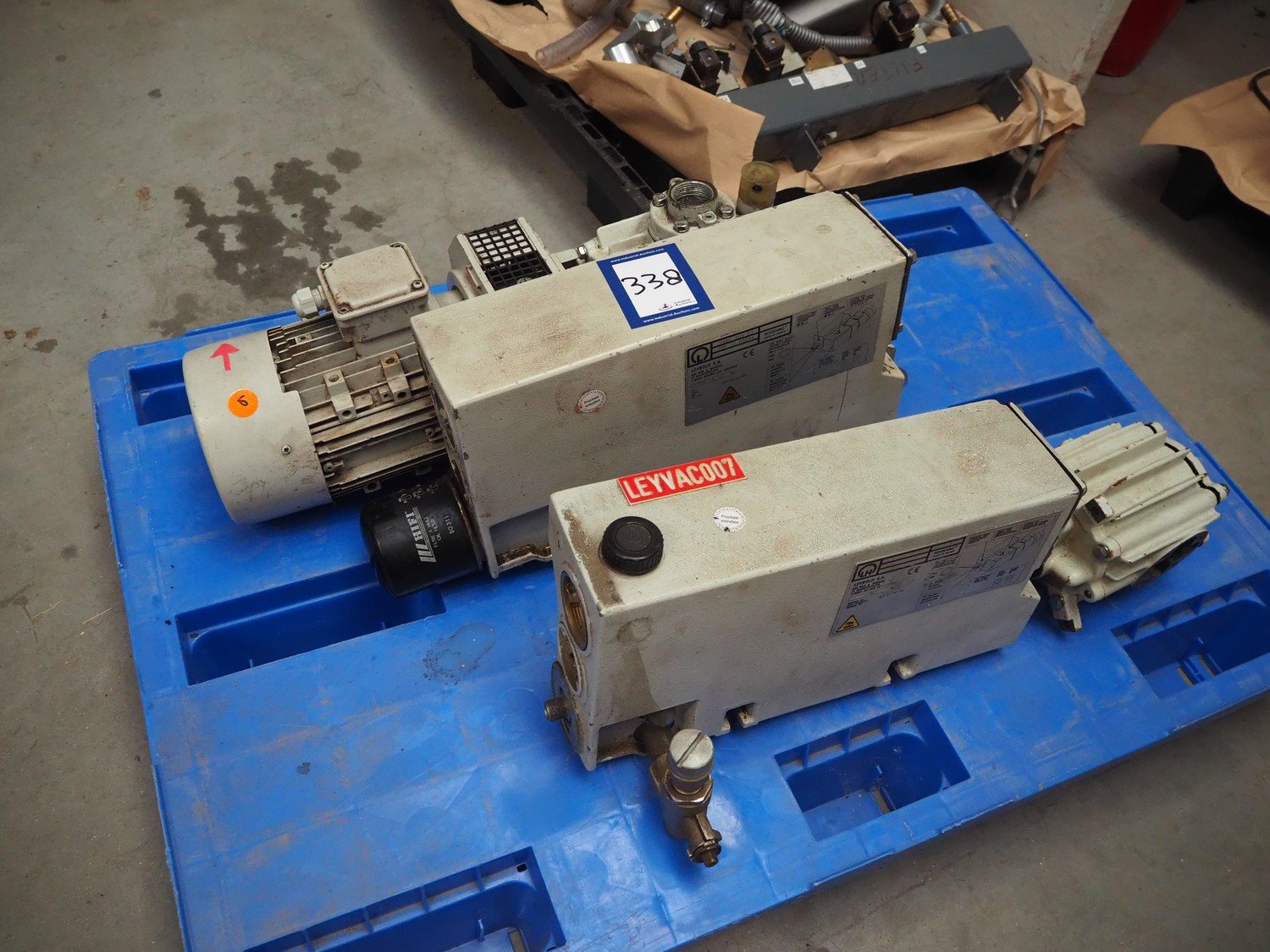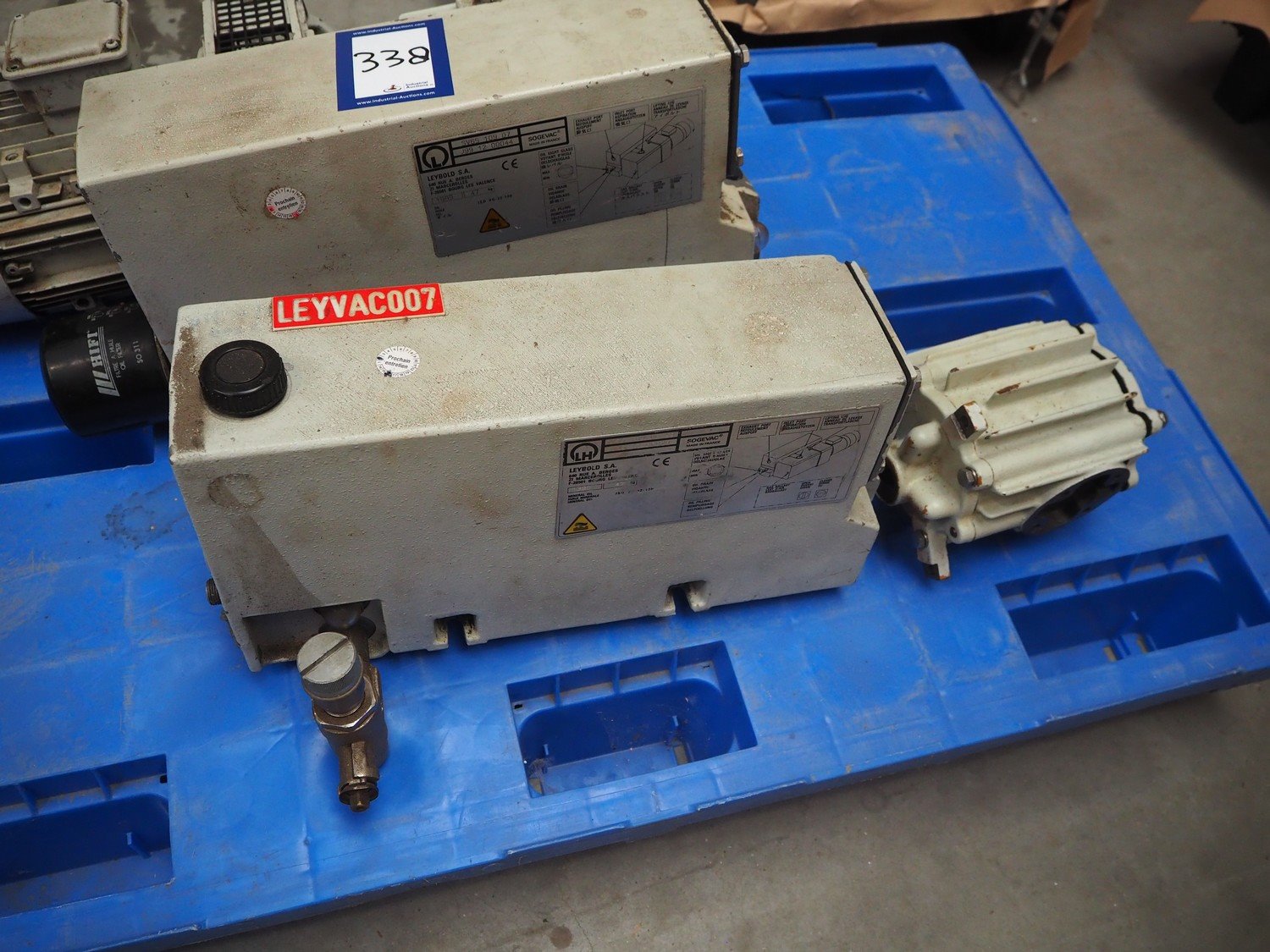 2 Leybold S.A. vacuum pumps, type: SV65 109 07, serial number: J99 12 00044, year of construction: 1999, weight: 47 kg, dimensions: 680 mm x 300 mm x 310 mm. 1 incomplete. Kavel locatie: Beukenhofstraat 77A, 8570 Anzegem, België