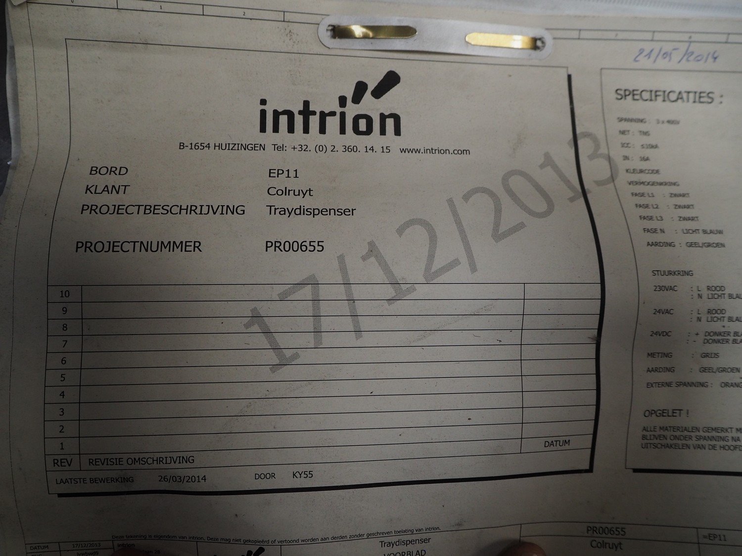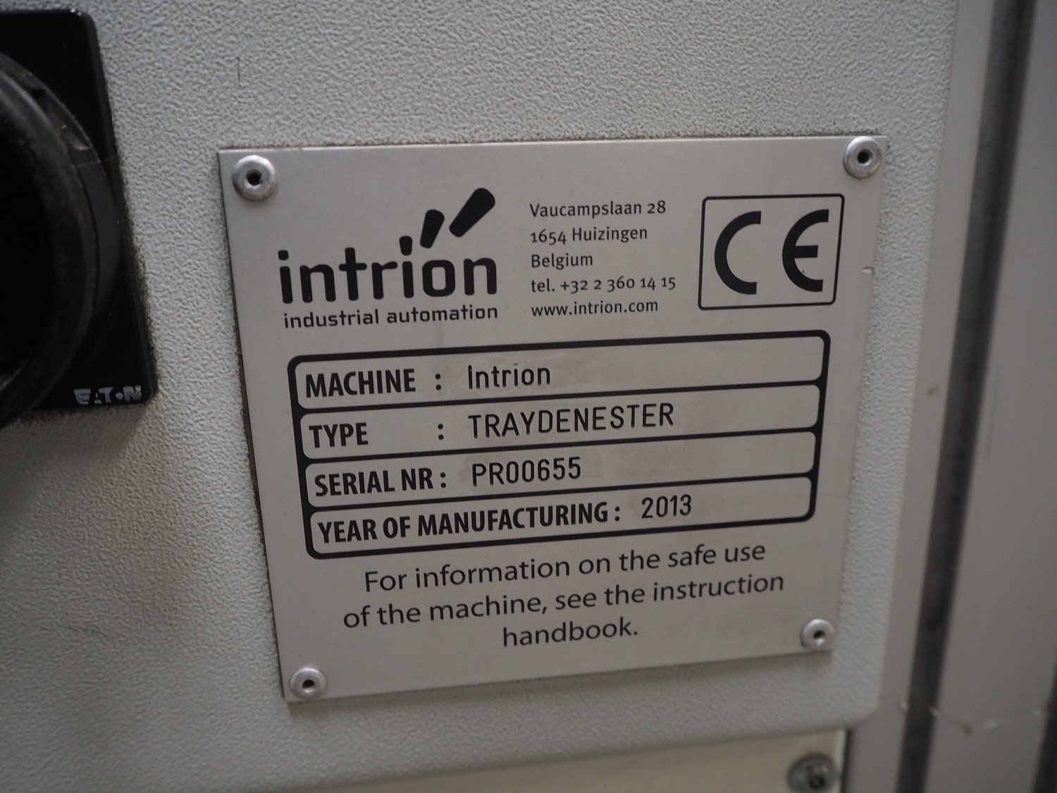 Intrion tray denester, serial number: PR00655, year of construction: 2013, clearance: 245 mm x 160 mm, total dimensions: 2250 mm x 1250 mm x 1760 mm. Kavel locatie: Beukenhofstraat 77A, 8570 Anzegem, België