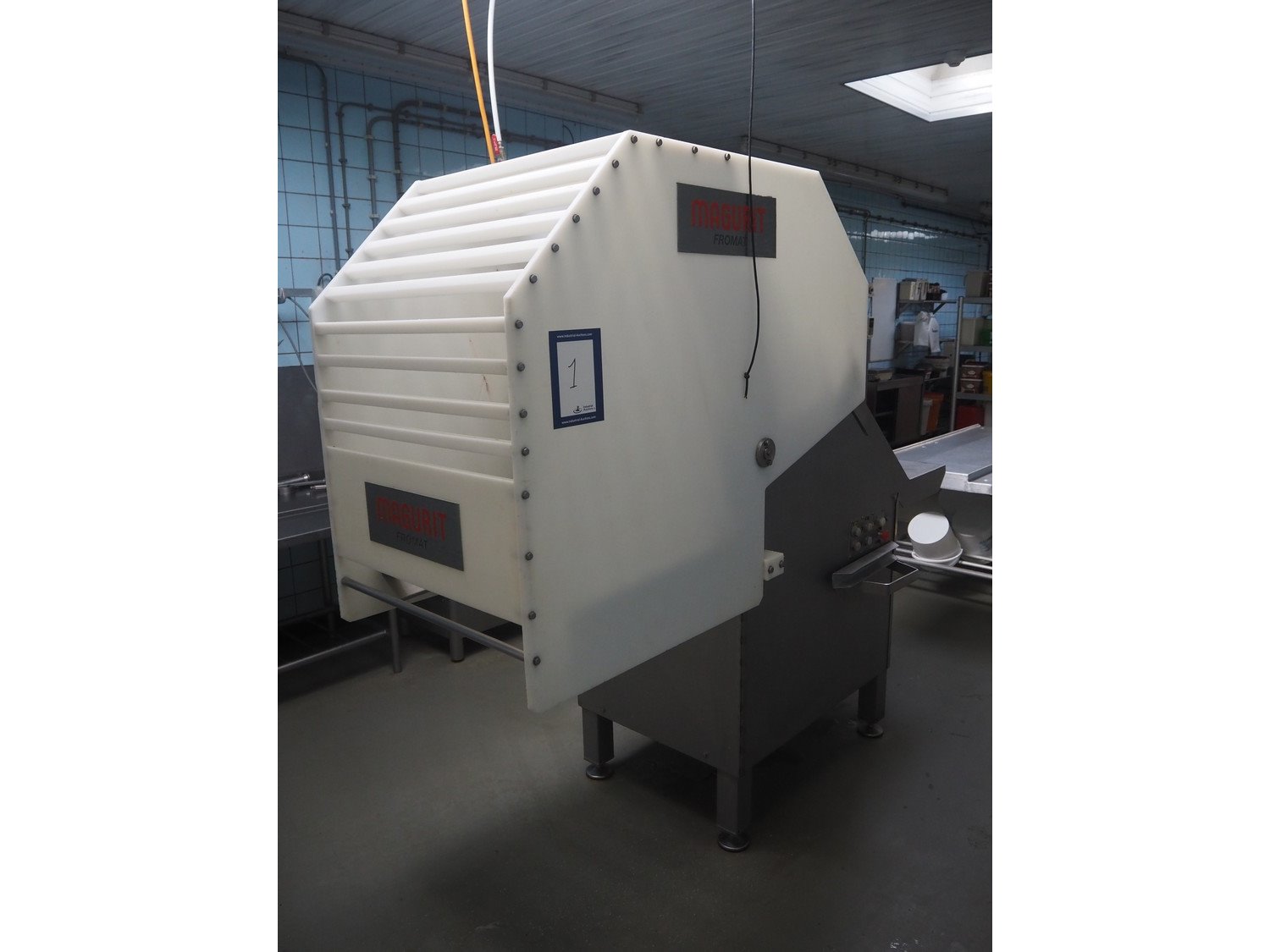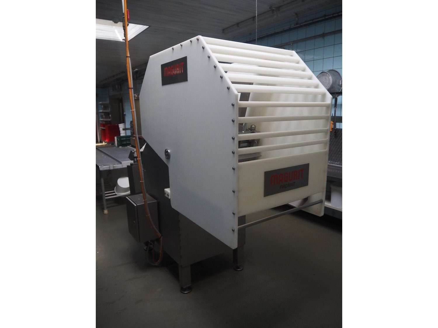 Magurit frozen block cutter, maximum block size: 500 mm x 500 mm x 400 mm, total dimensions: 2500 mm x 1000 mm x 2000 mm. Kavel locatie: Ieperstraat 14, 8980 Zonnebeke, België