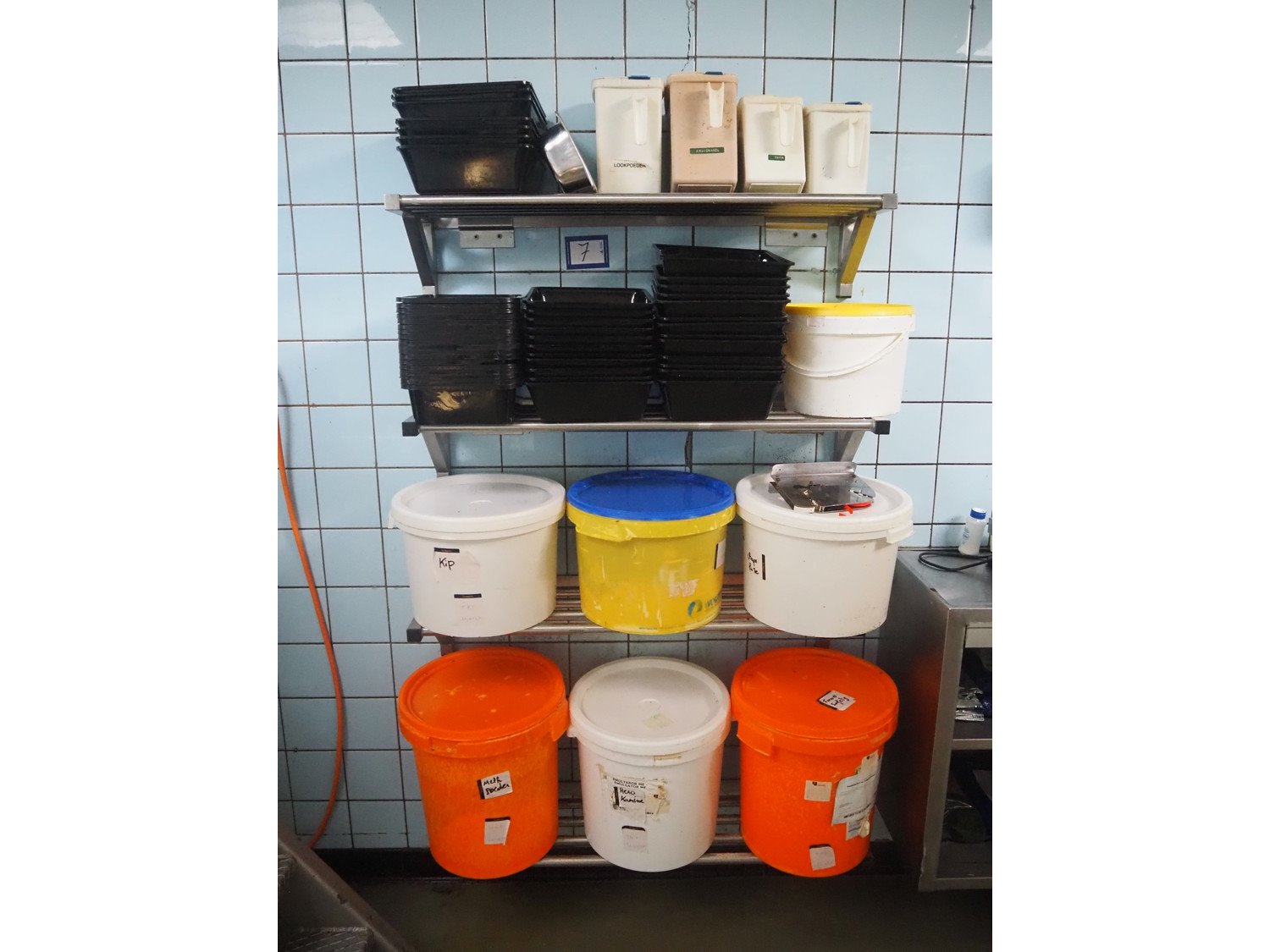 4 s/s wall mounted racks, dimensions: (4x) 1000 mm x 300 mm x 200 mm. Without content. Kavel locatie: Ieperstraat 14, 8980 Zonnebeke, België