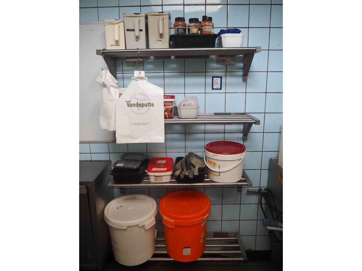 4 s/s wall mounted racks, dimensions: (4x) 1000 mm x 300 mm x 200 mm. Without content. Kavel locatie: Ieperstraat 14, 8980 Zonnebeke, België