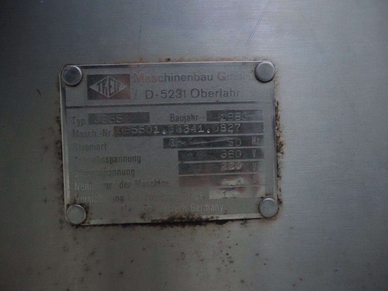 Treif Maschinenbau GmbH dicer, type: 0855, machine number: 085501.36341.0827, year of construction: 1986, 380/220 V, 50 Hz, chamber dimensions: 85 mm x 85 mm, total dimensions: 1200 mm x 750 mm x 1000 mm. Kavel locatie: Ieperstraat 14, 8980 Zonnebeke, België