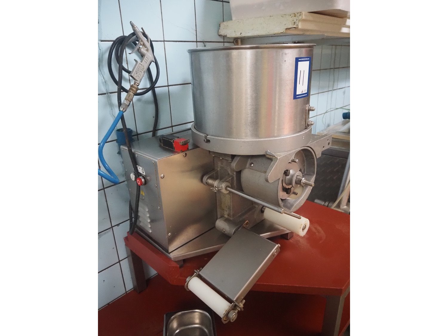 La Minerva hamburger forming machine, type: C/E651, serial number: 00E0080, 230 V, 3 Ph, 50 Hz, 2.8 A, 1.1 kW, total dimensions: 600 mm x 500 mm x 650 mm. Incomplete. Kavel locatie: Ieperstraat 14, 8980 Zonnebeke, België