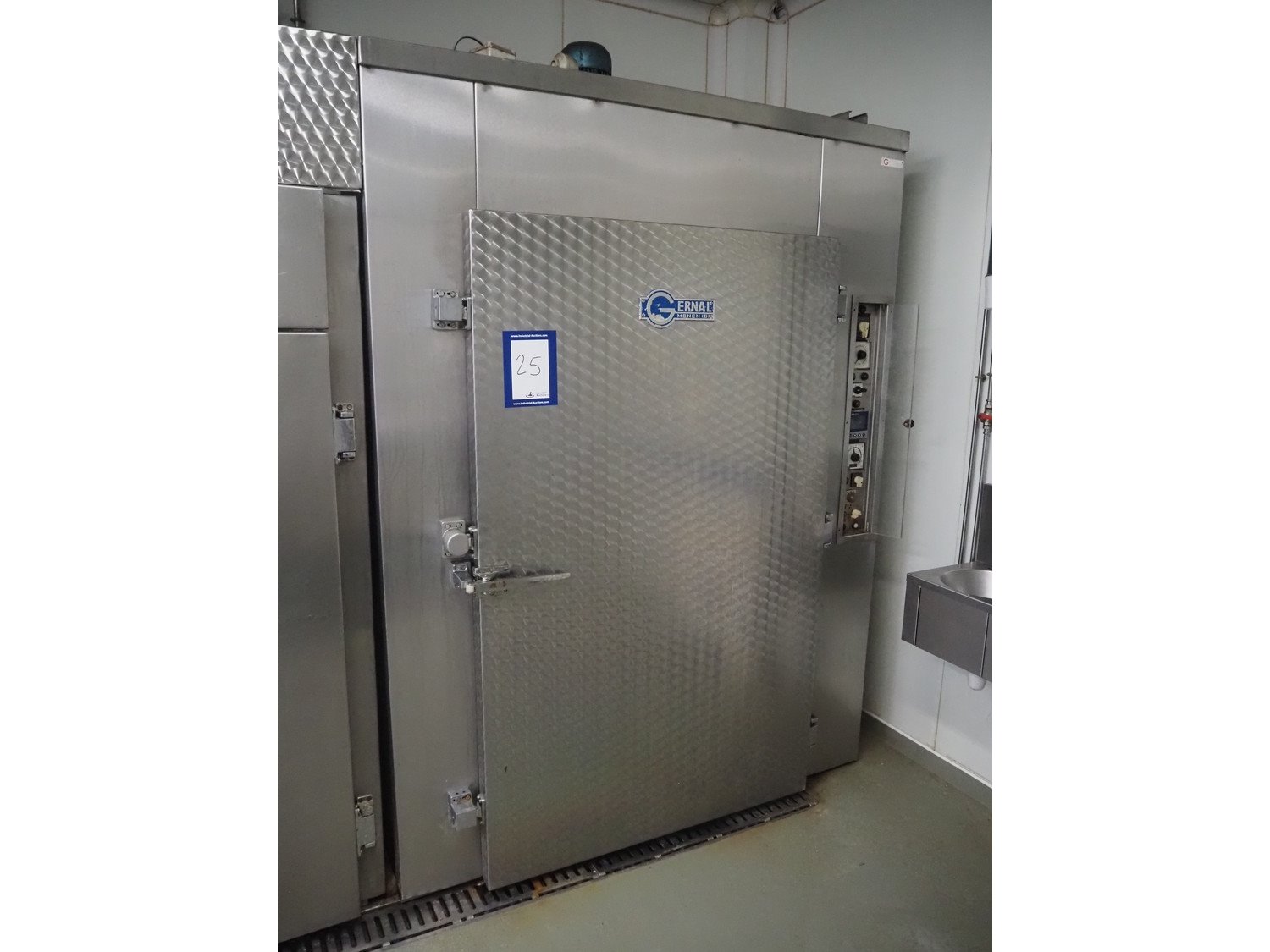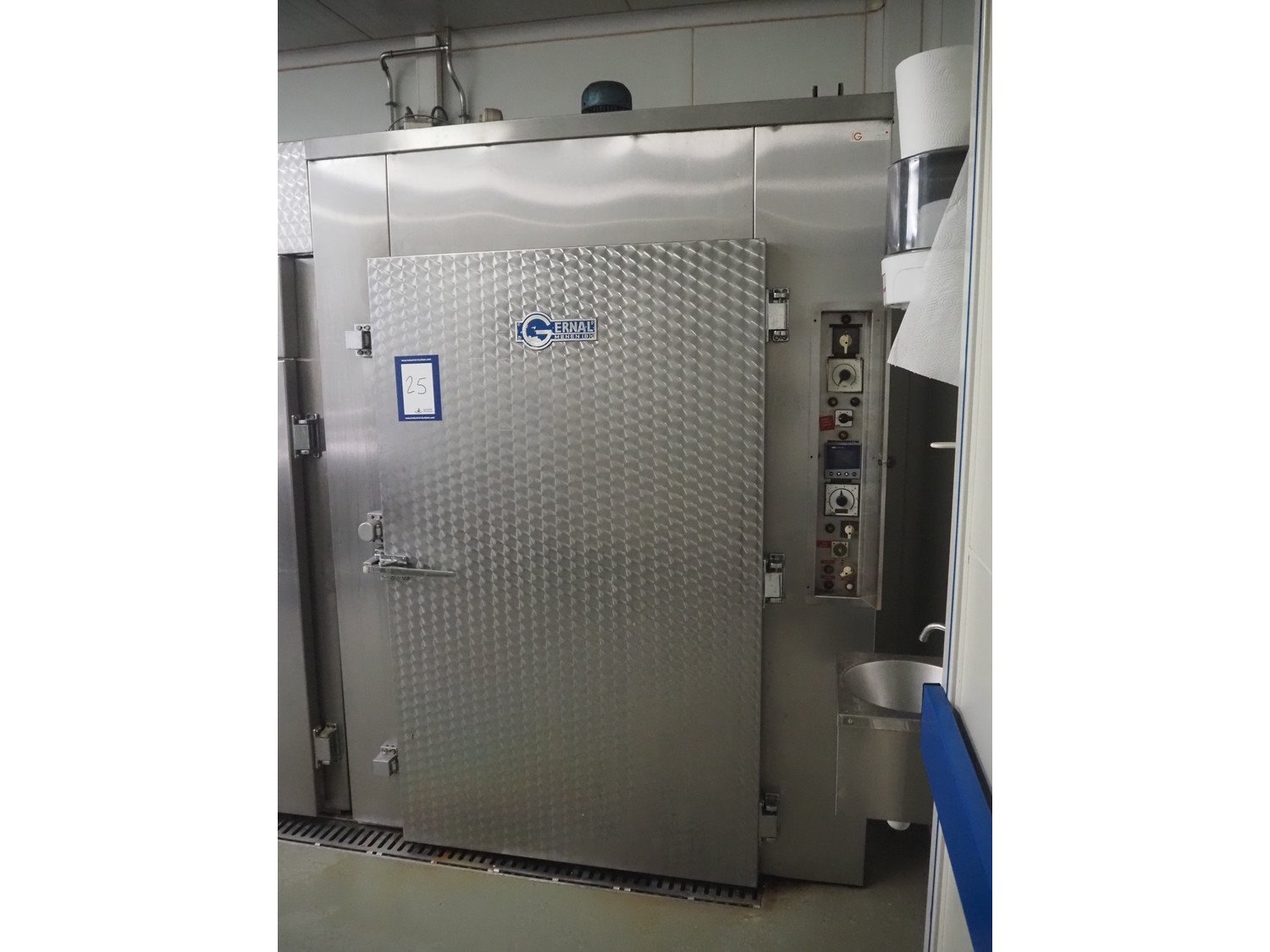 Gernal cooking chamber with shower, s/s trolley, 5 floors, dimensions: 1000 mm x 900 mm x 1500 mm, total dimensions: 1700 mm x 1250 mm x 2270 mm. Kavel locatie: Ieperstraat 14, 8980 Zonnebeke, België