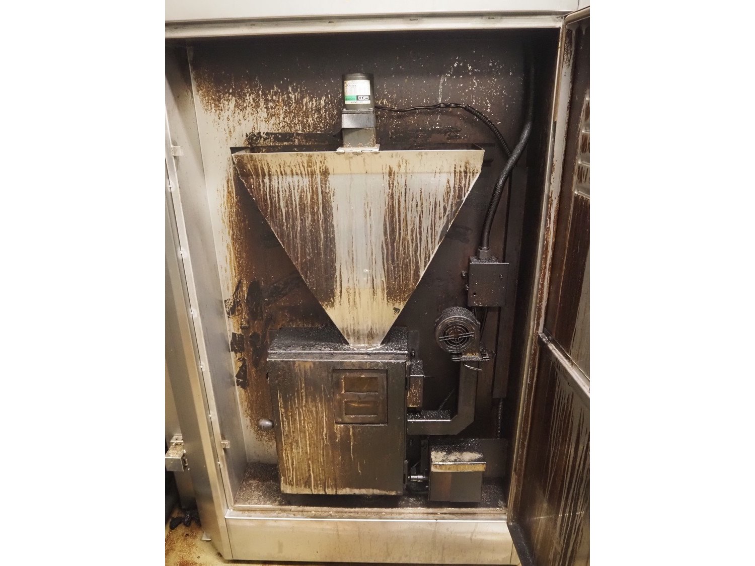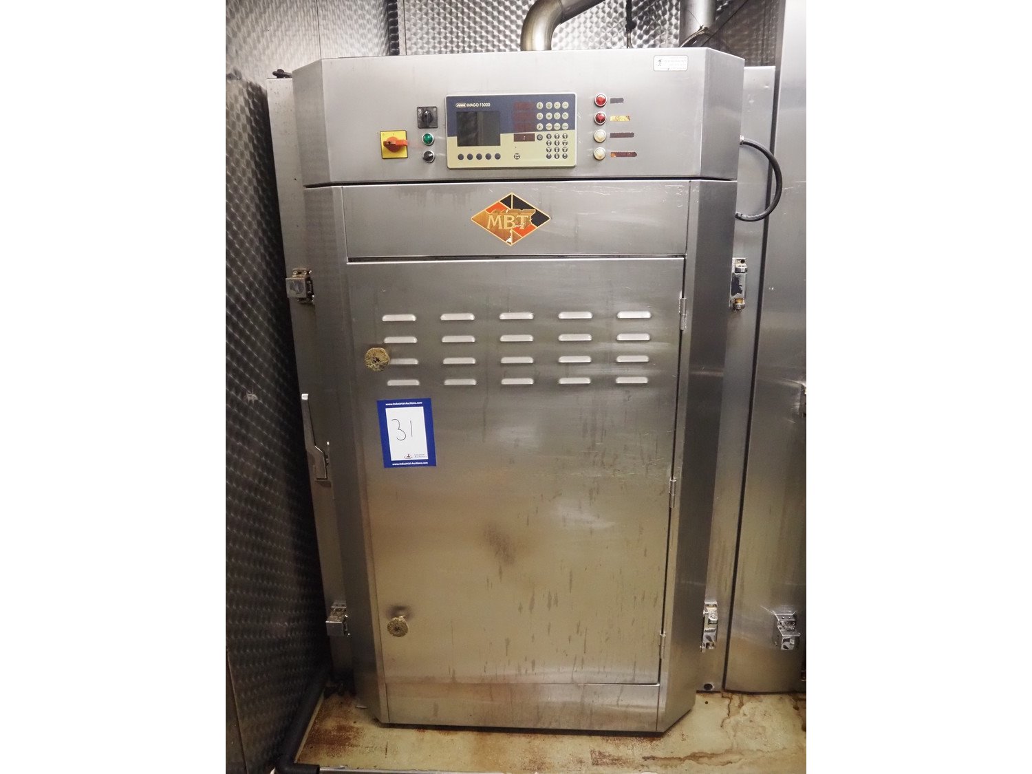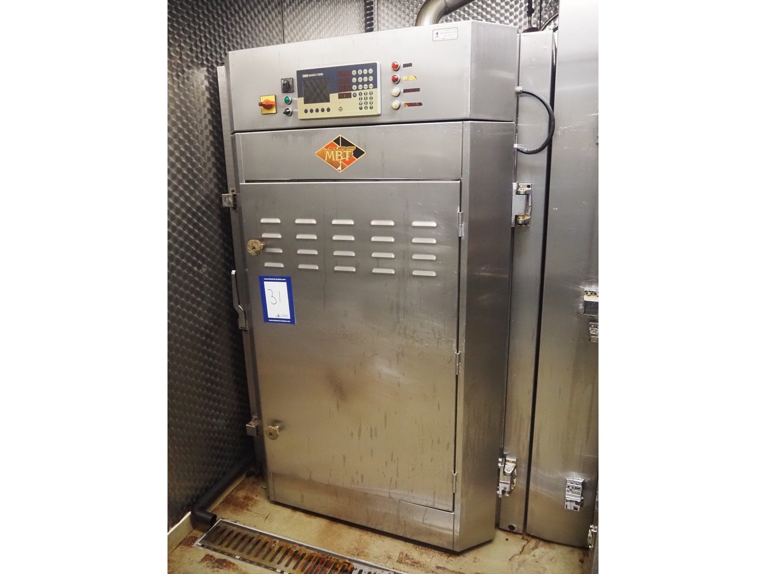 MBT smoking chamber for 1 smoke trolley, integrated smoke generator for wood chips, dimensions: 1300 mm x 1300 mm x 1980 mm. Kavel locatie: Ieperstraat 14, 8980 Zonnebeke, België