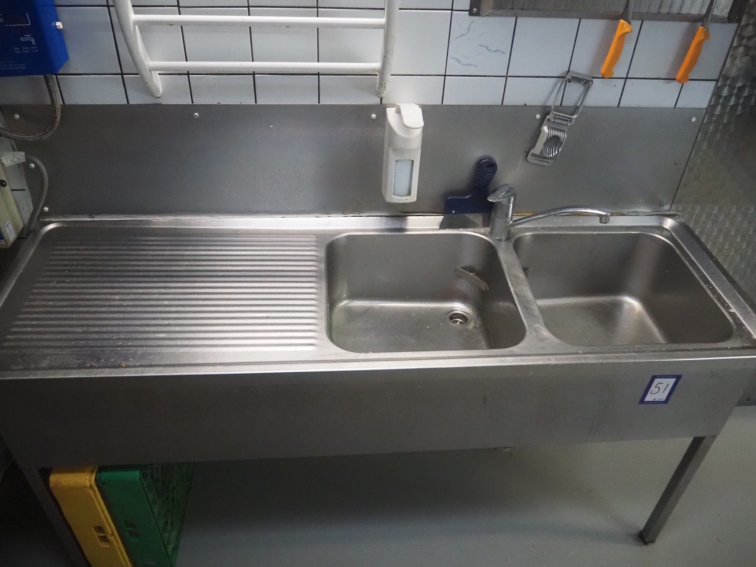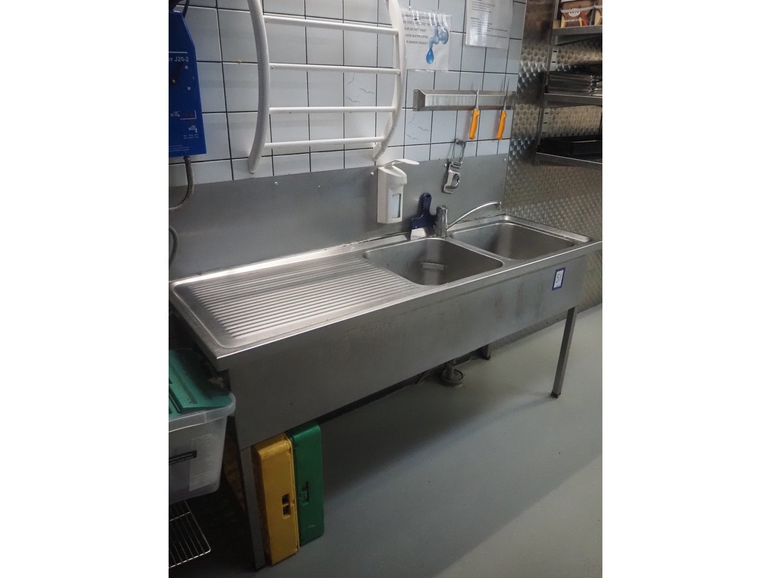 S/s sink, dimensions: 1800 mm x 600 mm x 900 mm. Kavel locatie: Ieperstraat 14, 8980 Zonnebeke, België