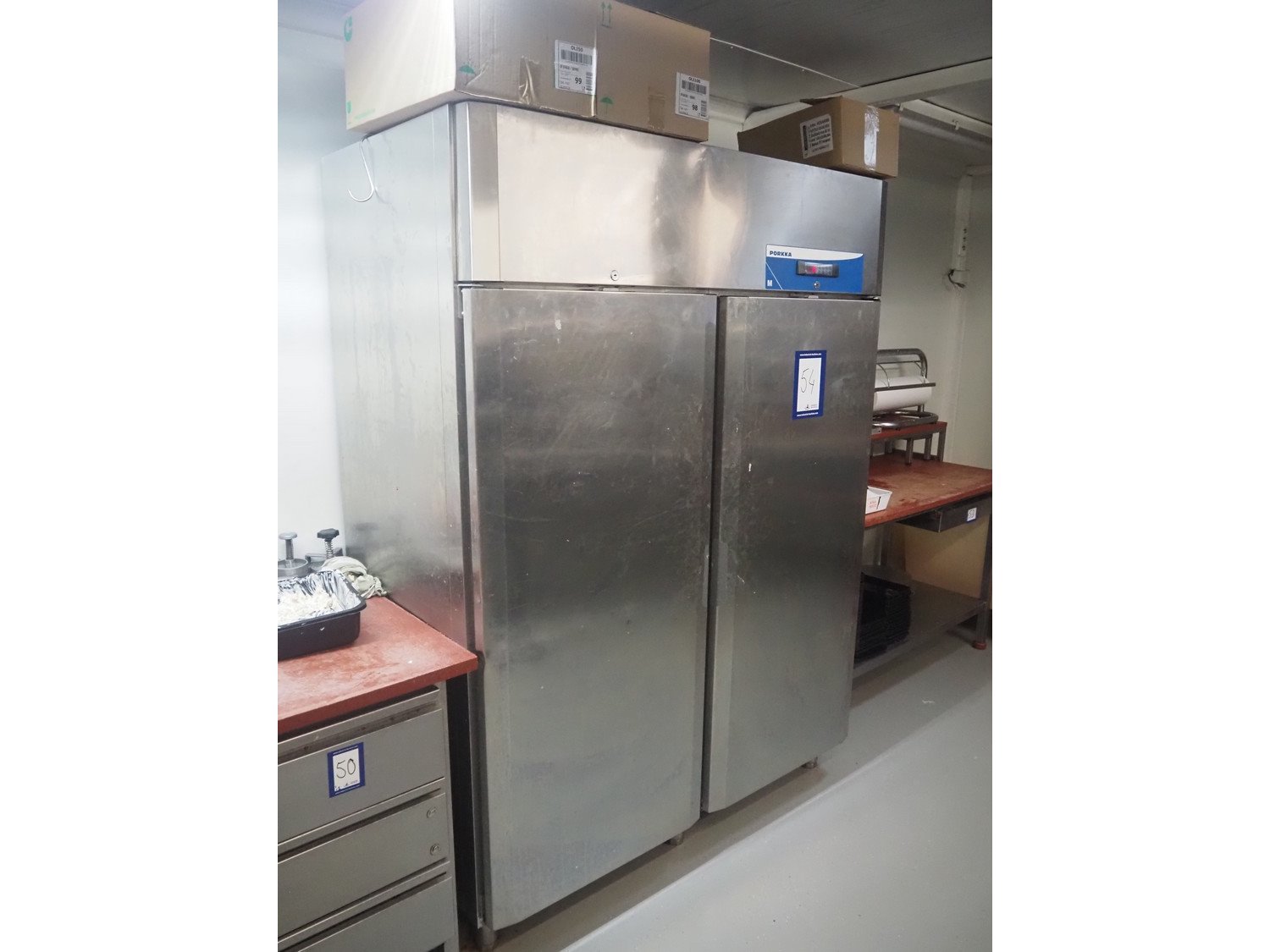 Porkka refrigerator, dimensions: 1450 mm x 800 mm x 2010 mm. Without content. Kavel locatie: Ieperstraat 14, 8980 Zonnebeke, België