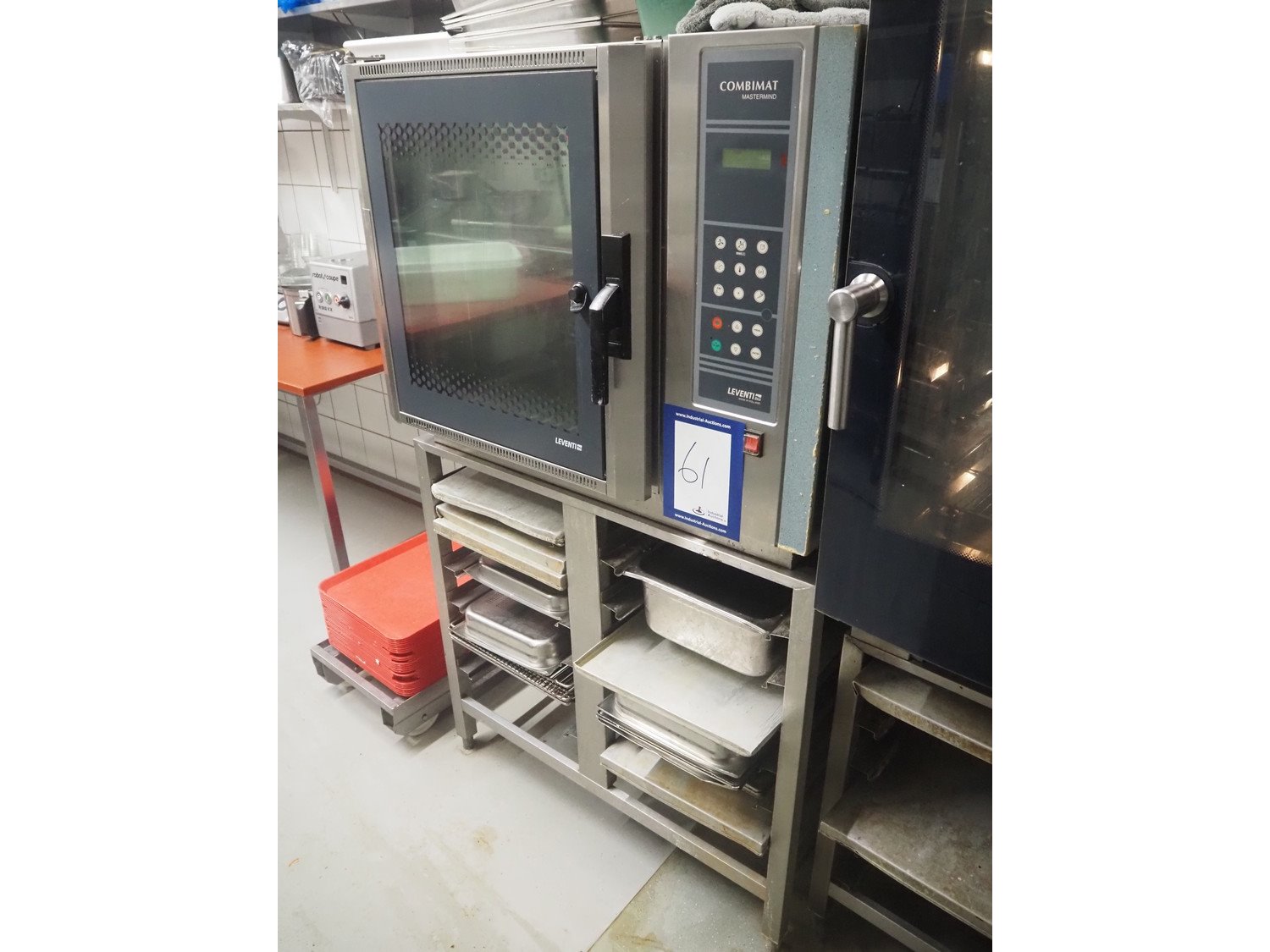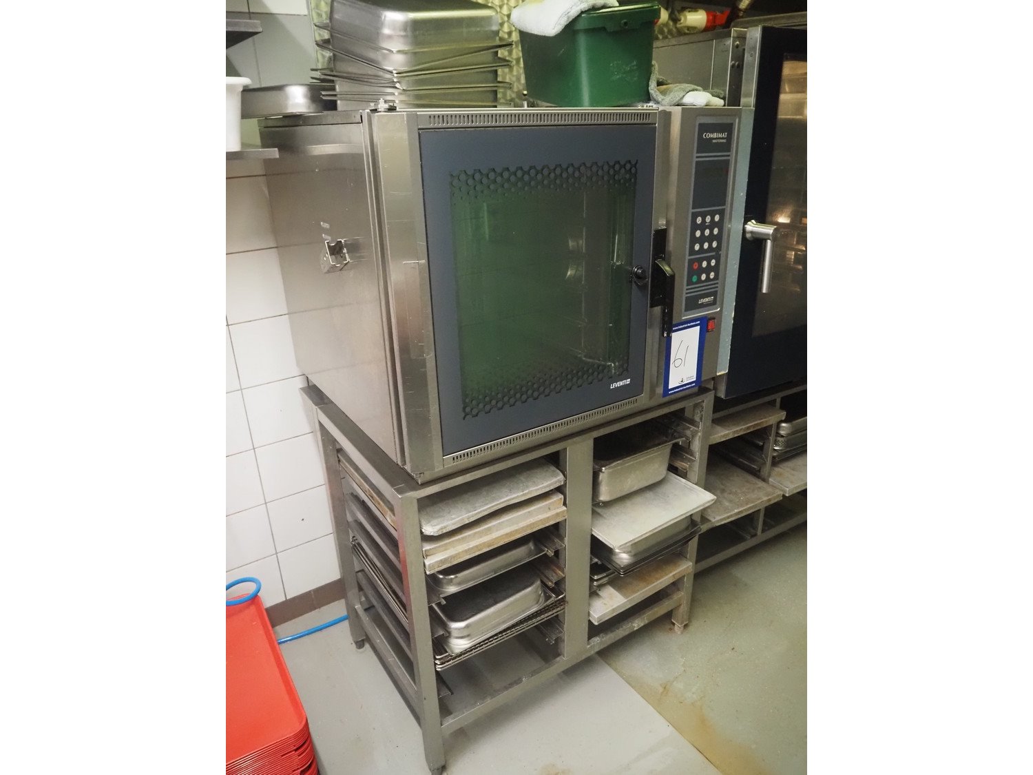 Leventi combi steamer, 6 floors, dimensions each floor: 550 mm x 380 mm, total dimensions: 970 mm x 830 mm x 1650 mm. Kavel locatie: Ieperstraat 14, 8980 Zonnebeke, België
