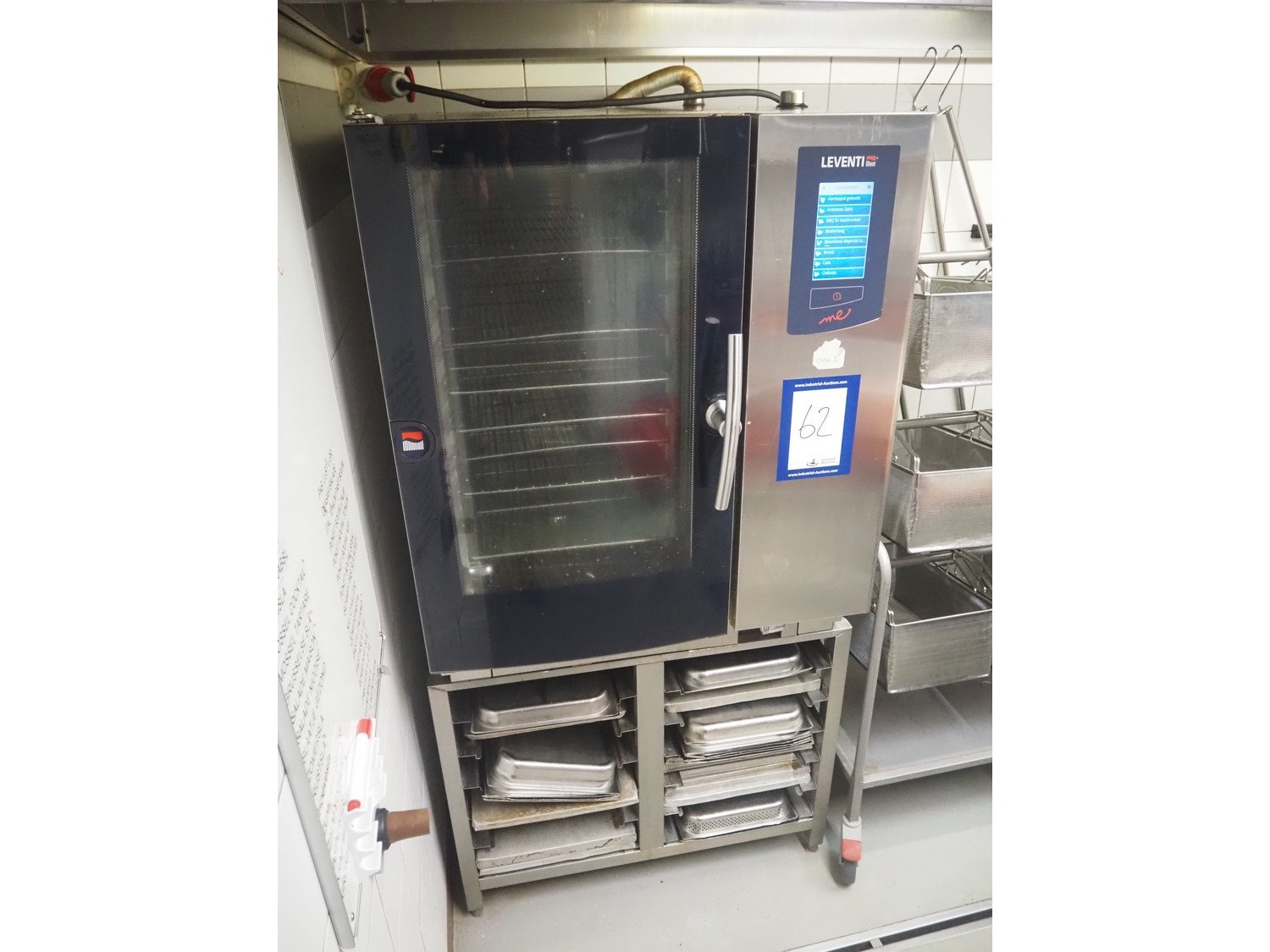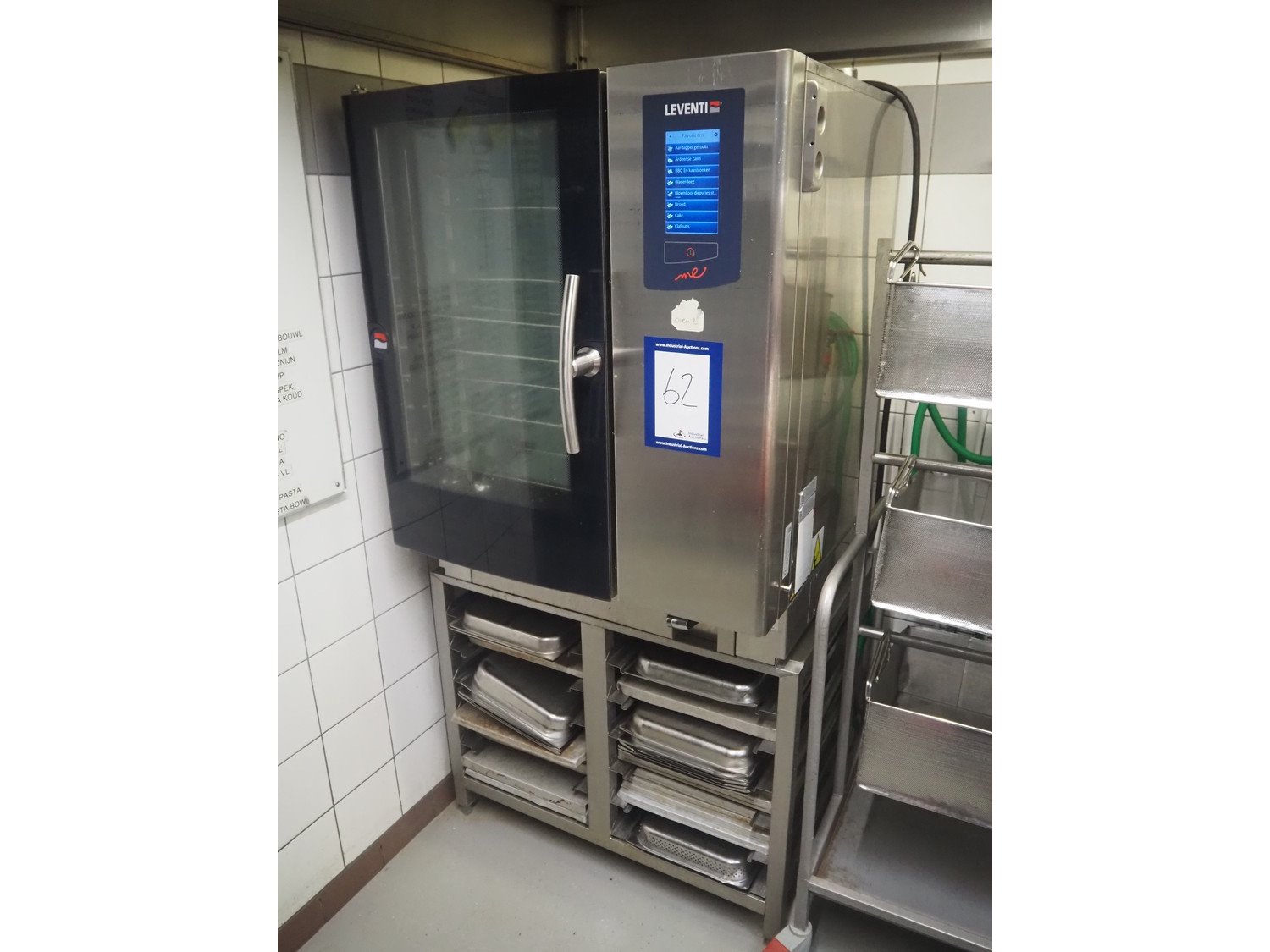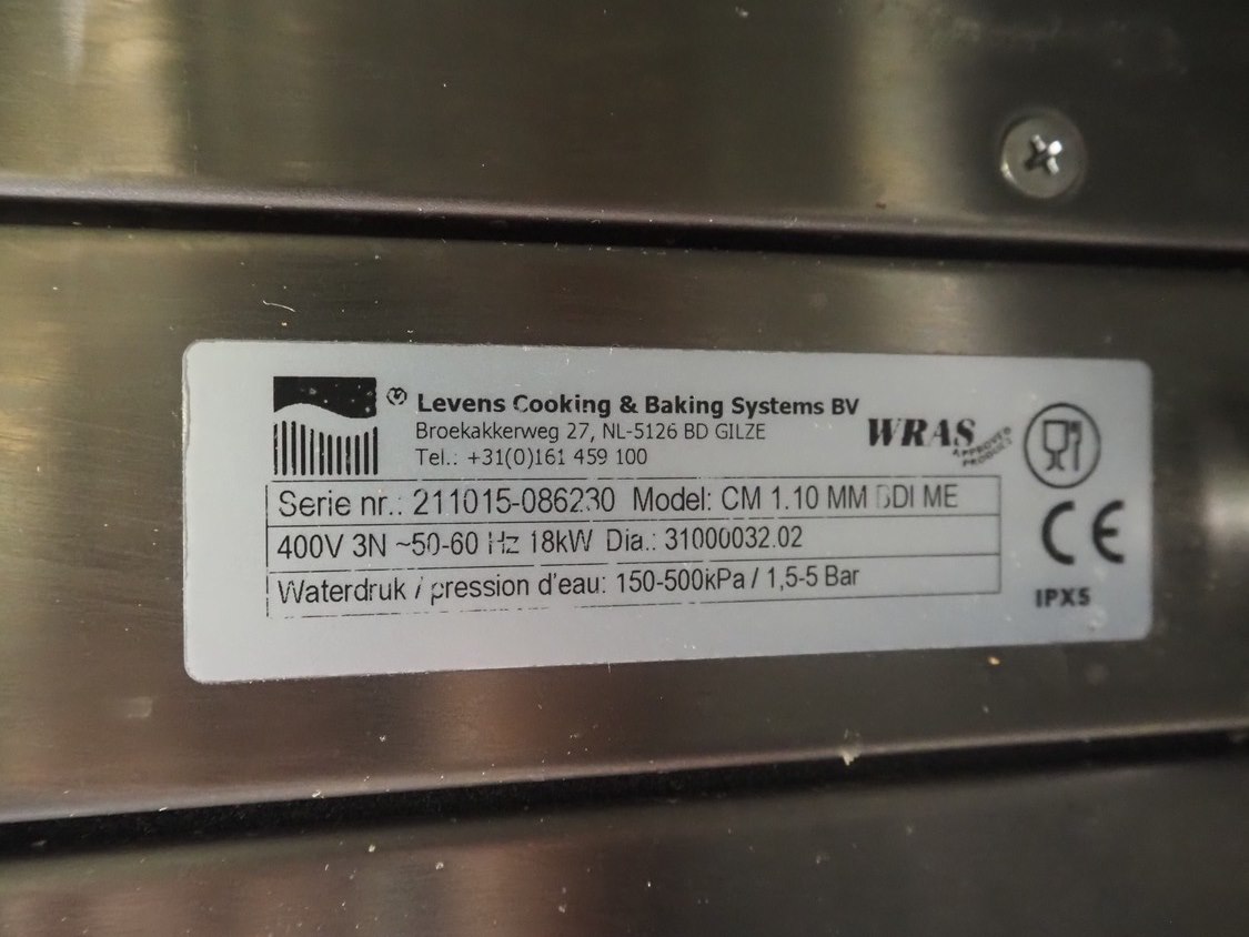 Leventi combi steamer, model: CM 1.10 MM DDI ME, serial number: 211015-086230, 400 V, 3 Ph, 50-60 Hz, 18 kW, 10 floors, dimensions each floor: 600 mm x 380 mm, total dimensions: 900 mm x 800 mm x 1850 mm. Kavel locatie: Ieperstraat 14, 8980 Zonnebeke, België