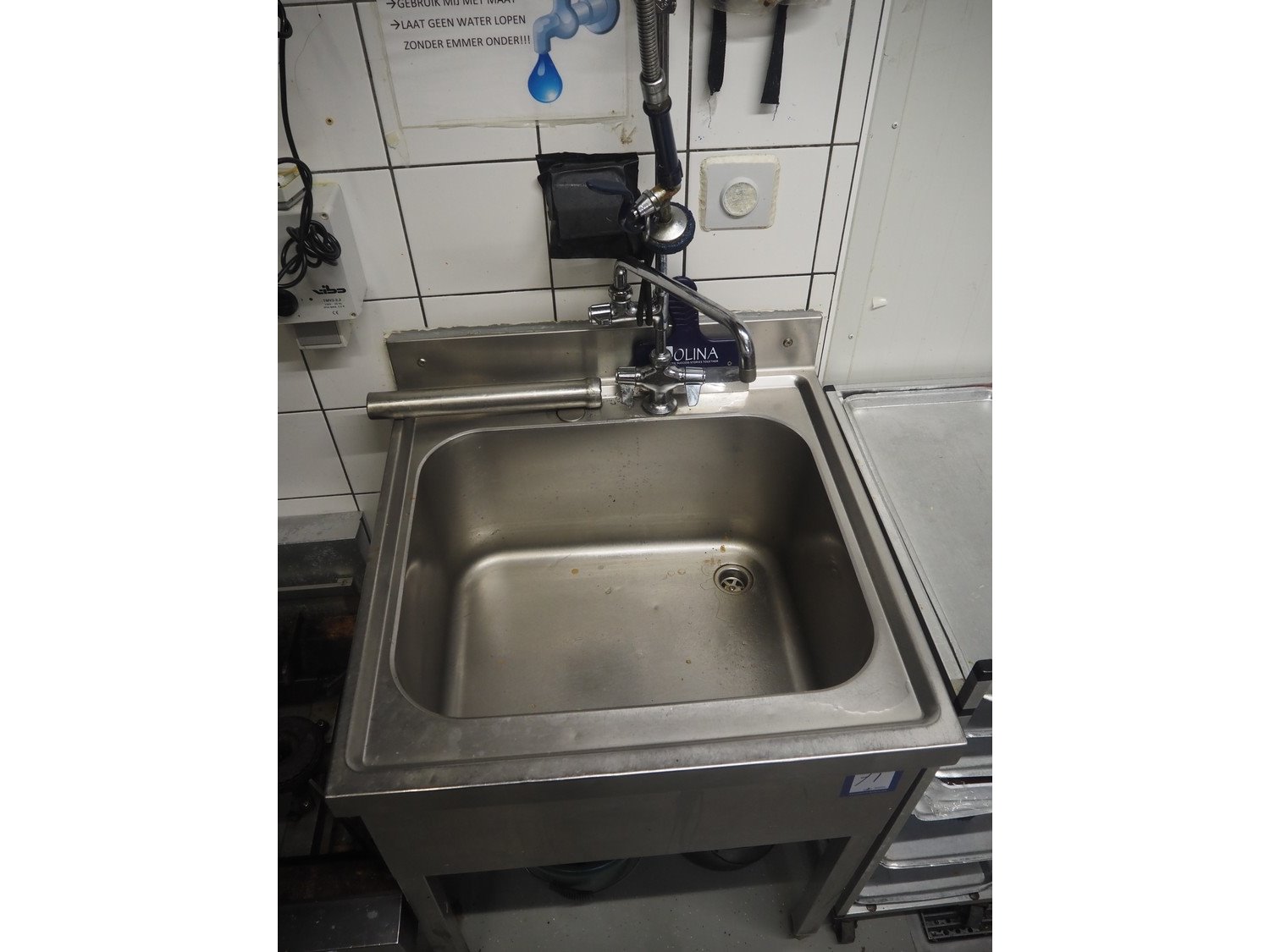 S/s sink, dimensions: 700 mm x 700 mm x 930 mm. Kavel locatie: Ieperstraat 14, 8980 Zonnebeke, België