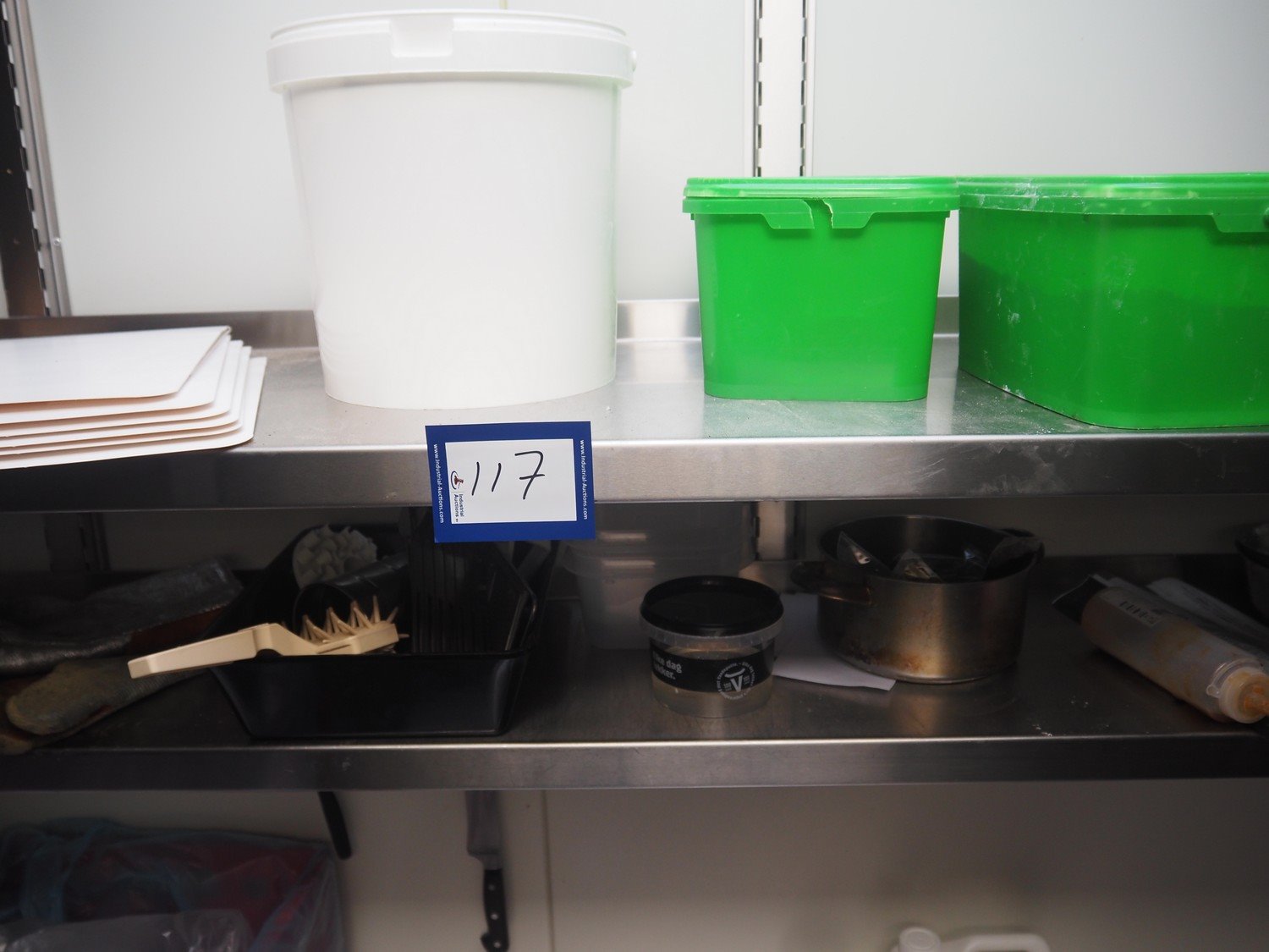 S/s wall mounted rack, dimensions: 1800 mm x 350 mm x 500 mm. Without content. Kavel locatie: Ieperstraat 14, 8980 Zonnebeke, België
