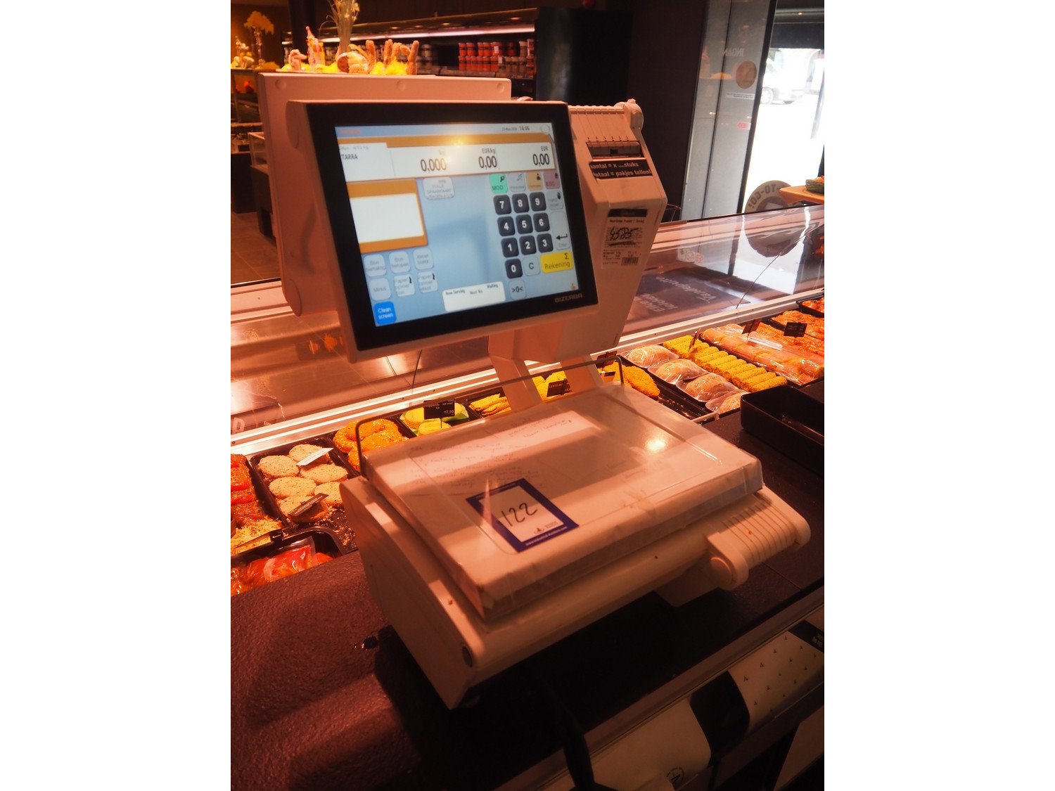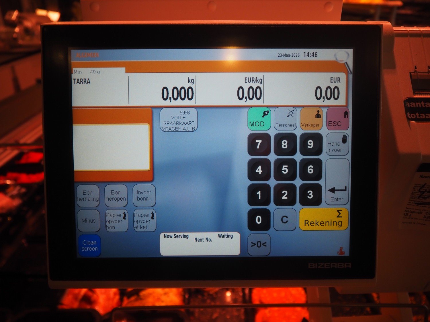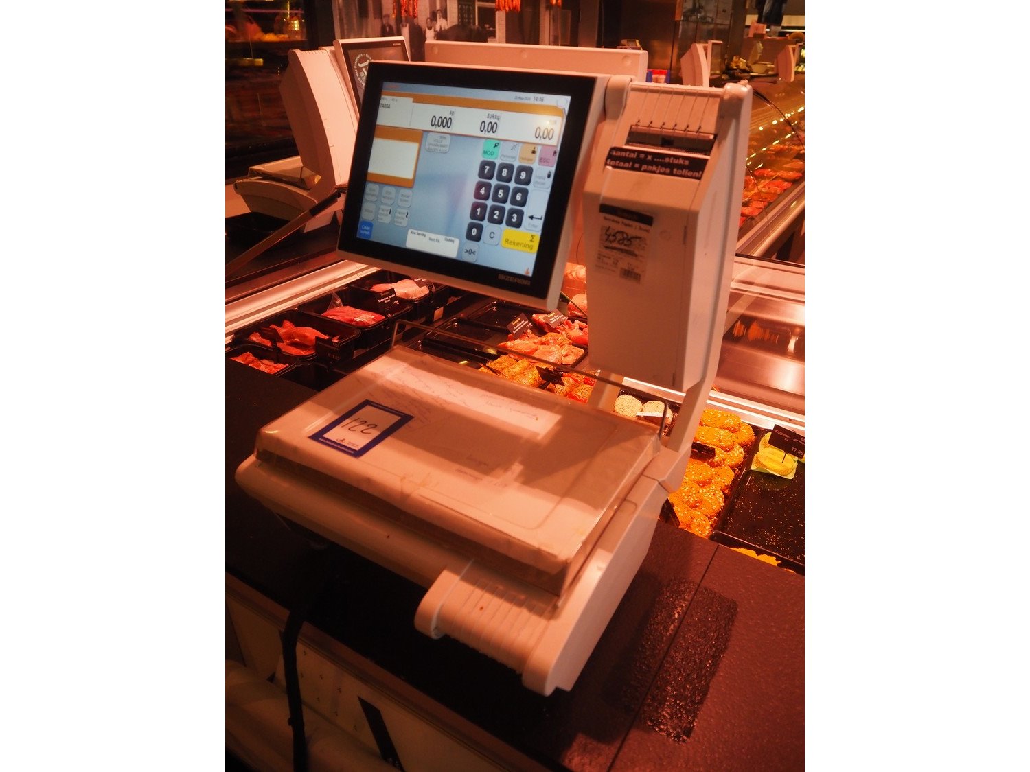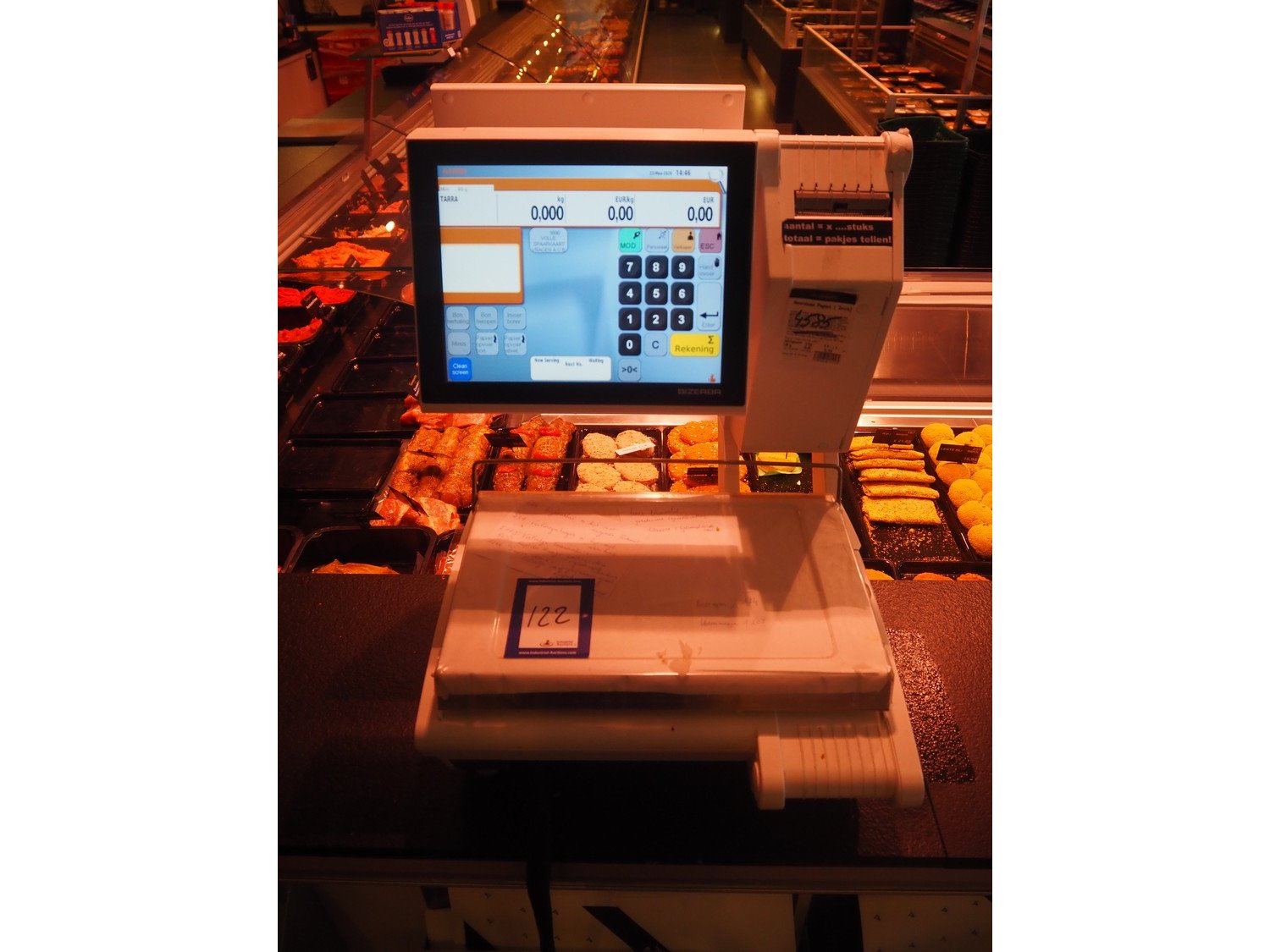 Bizerba weighing scale with label printer, type: KH II 800, serial number: 11613923, maximum weight: 6/15 kg, minimum weight: 40 g, e= 2/5 g, T= -6/15 kg, dimensions: 500 mm x 450 mm x 550 mm. Kavel locatie: Ieperstraat 14, 8980 Zonnebeke, België