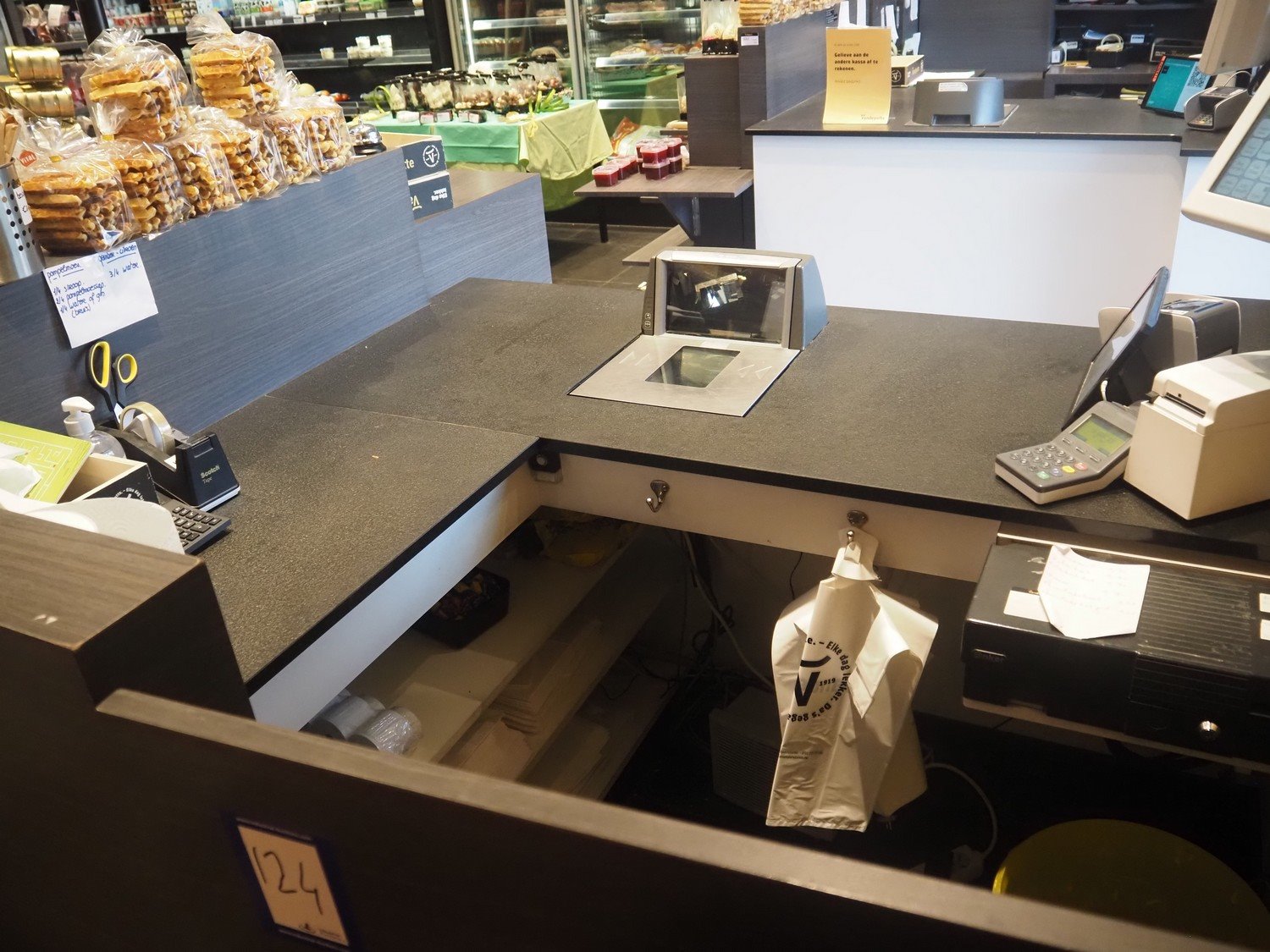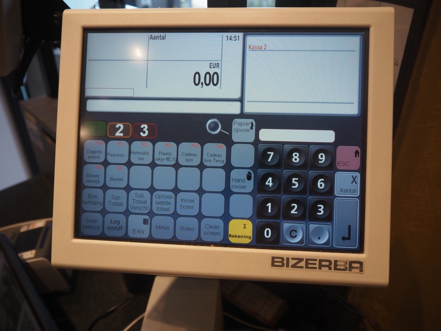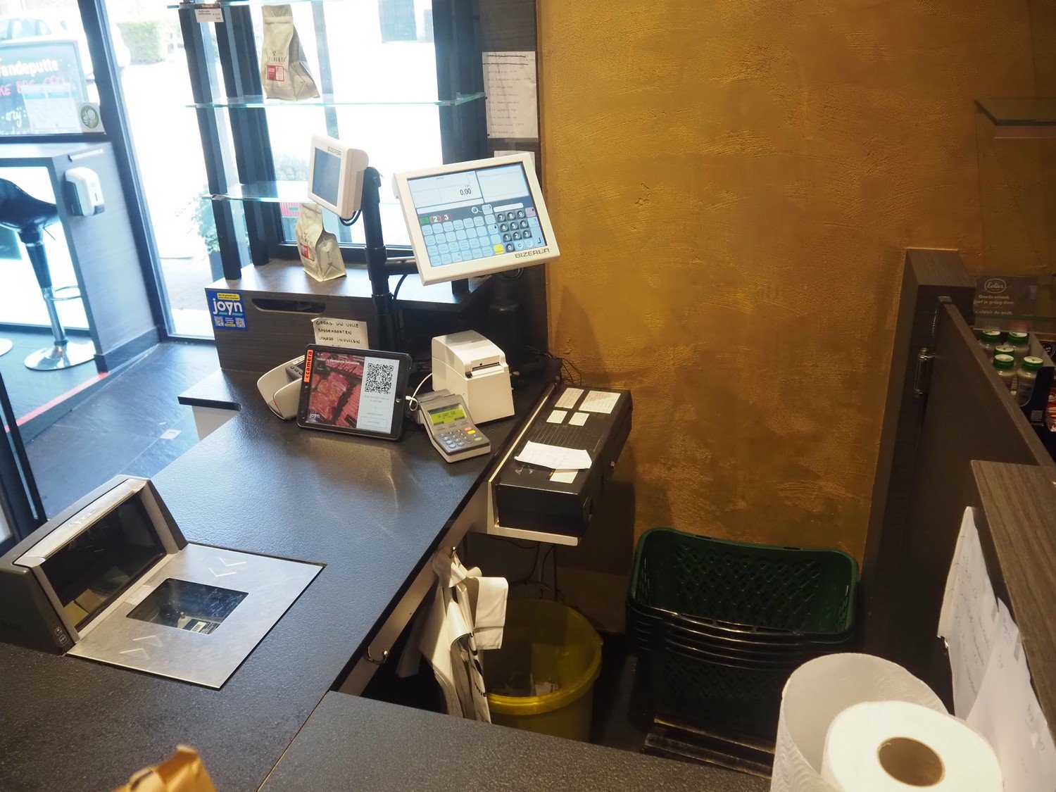 Bizerba cash register, dimensions: 1750 mm x 1700 mm x 1650 mm. Kavel locatie: Ieperstraat 14, 8980 Zonnebeke, België