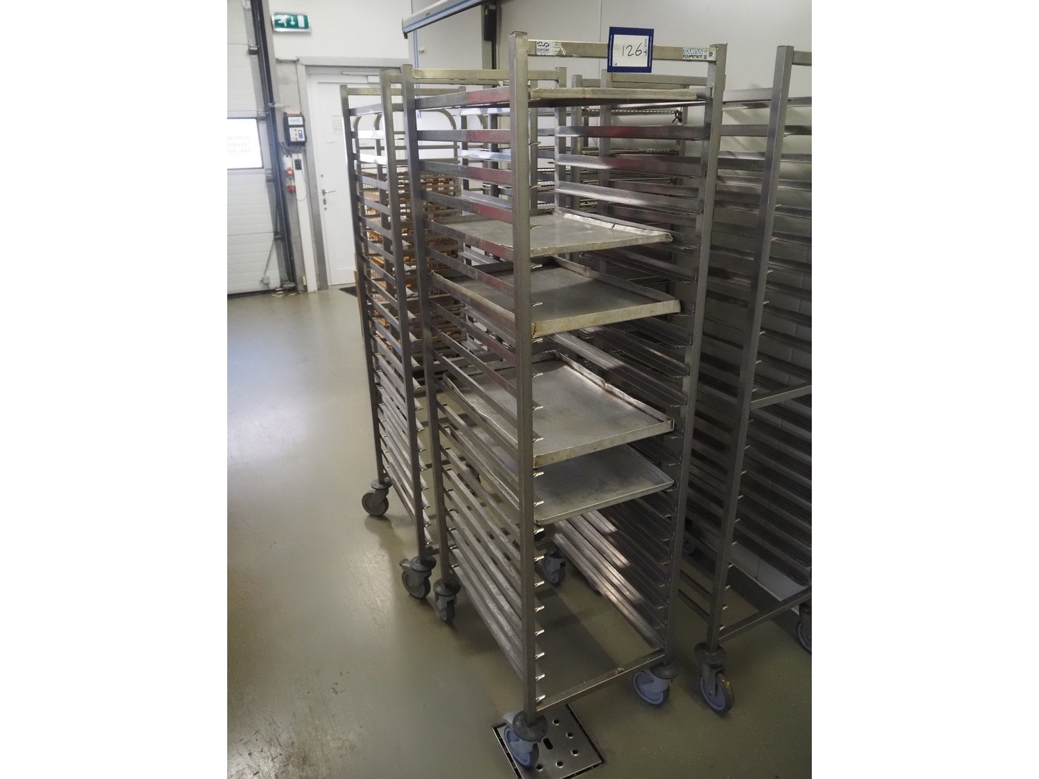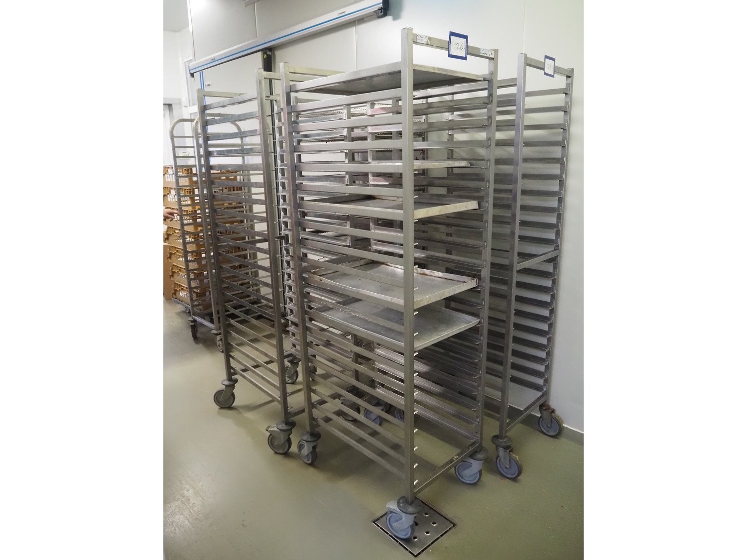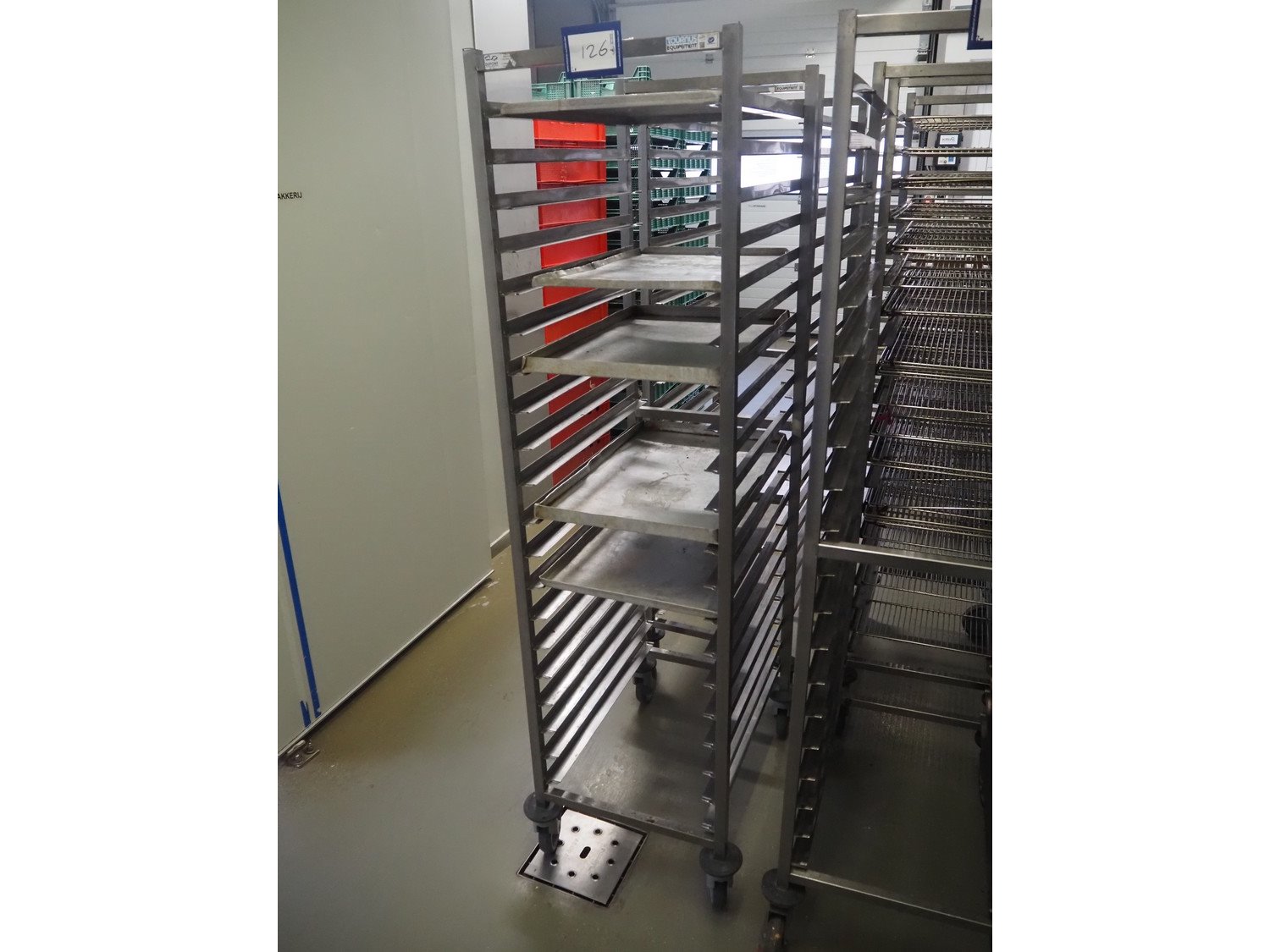 2 s/s trolleys, 20 floors each, dimensions: (2x) 650 mm x 460 mm x 1780 mm. Kavel locatie: Ieperstraat 14, 8980 Zonnebeke, België